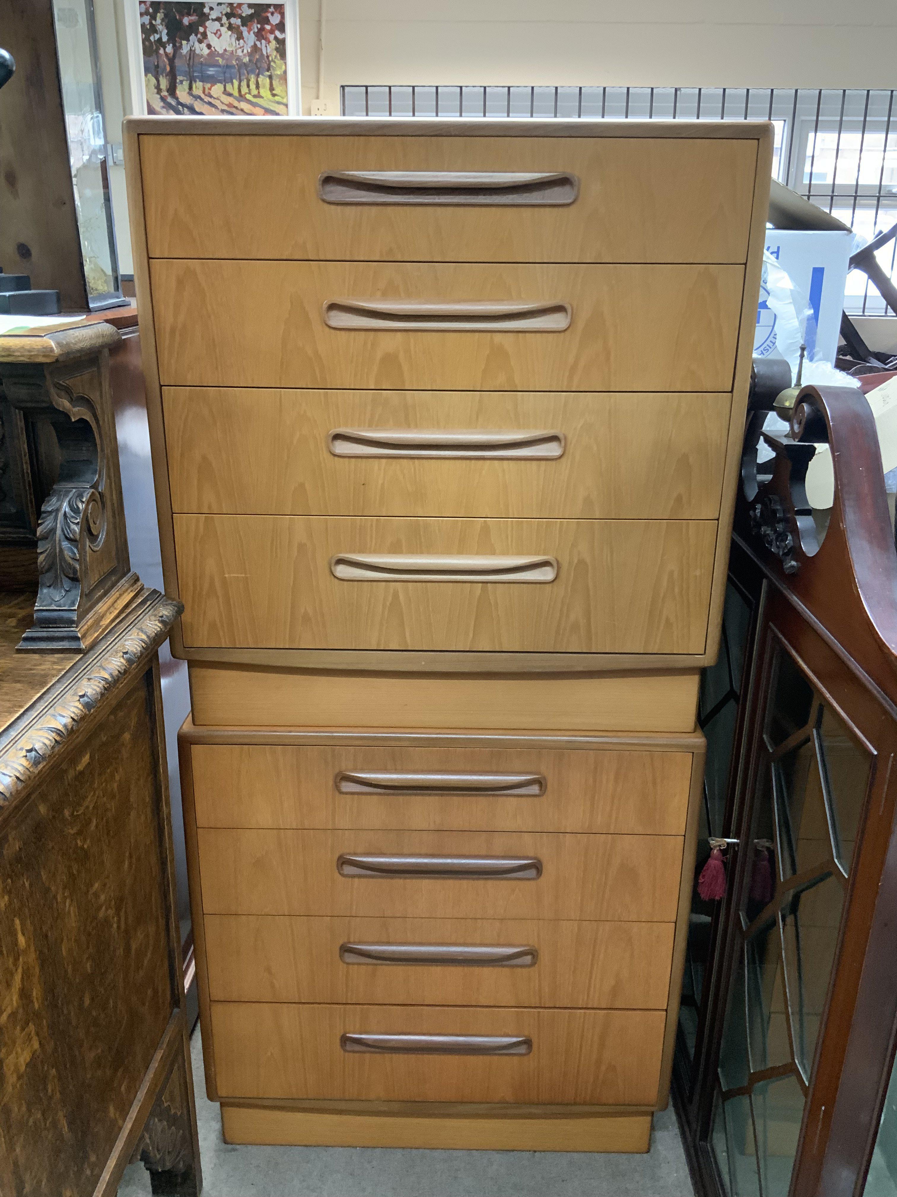 A matching pair of 4 drawer G-Plan fresco chests. 72cm x 76cm x 44cm