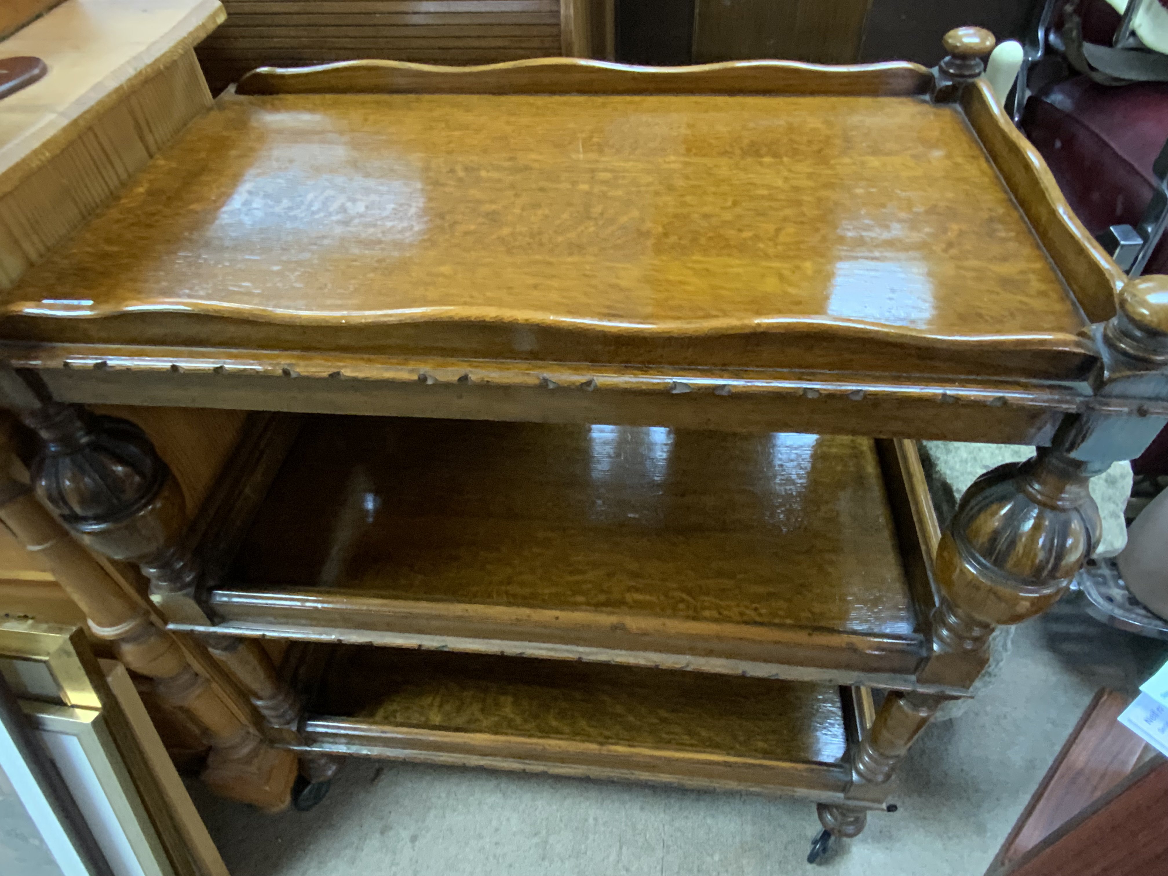 A 1930s 3 tier oak serving trolleyCondition Report