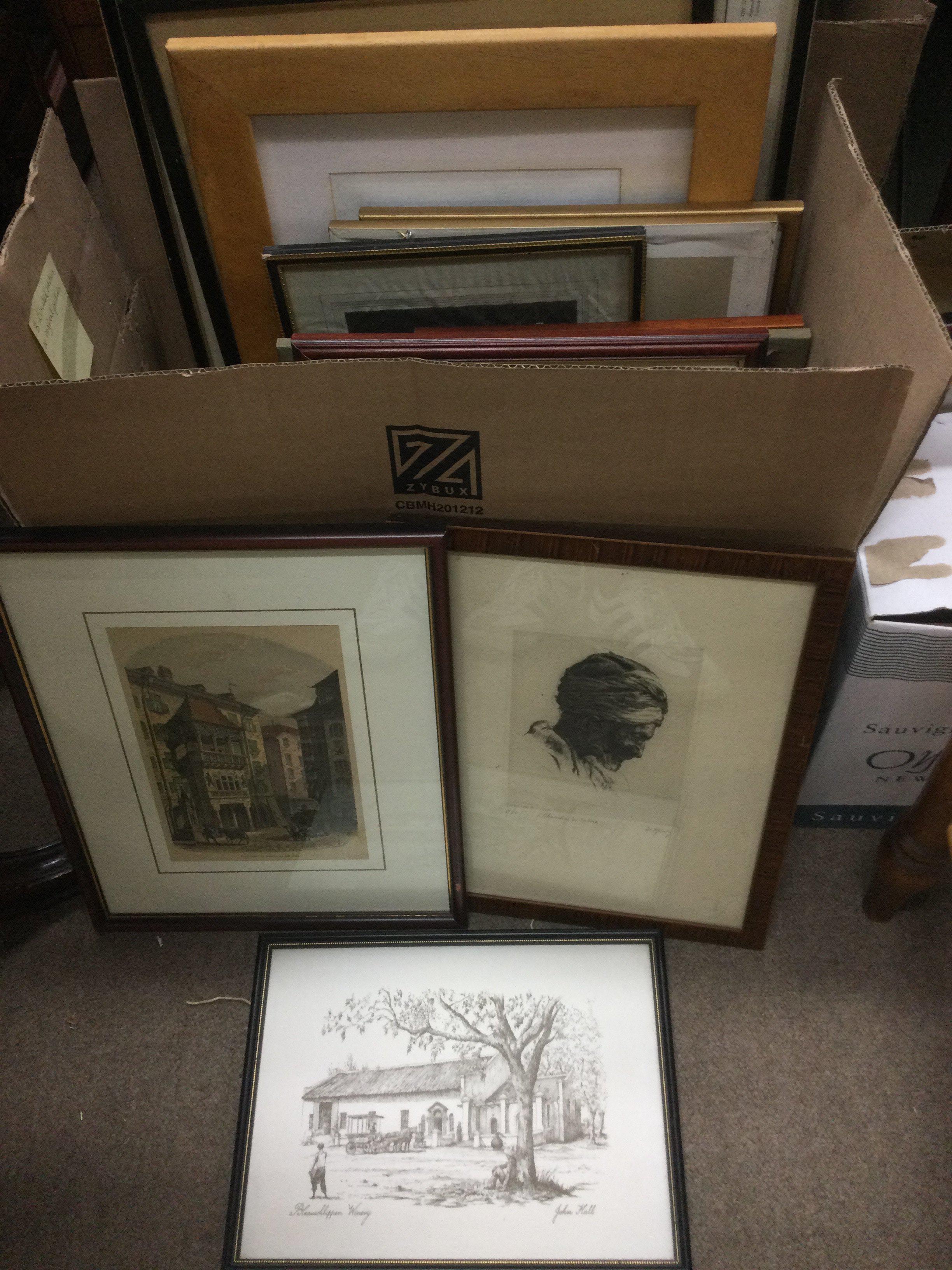 Four boxes of pictures and prints, various subjects. Shipping category D.