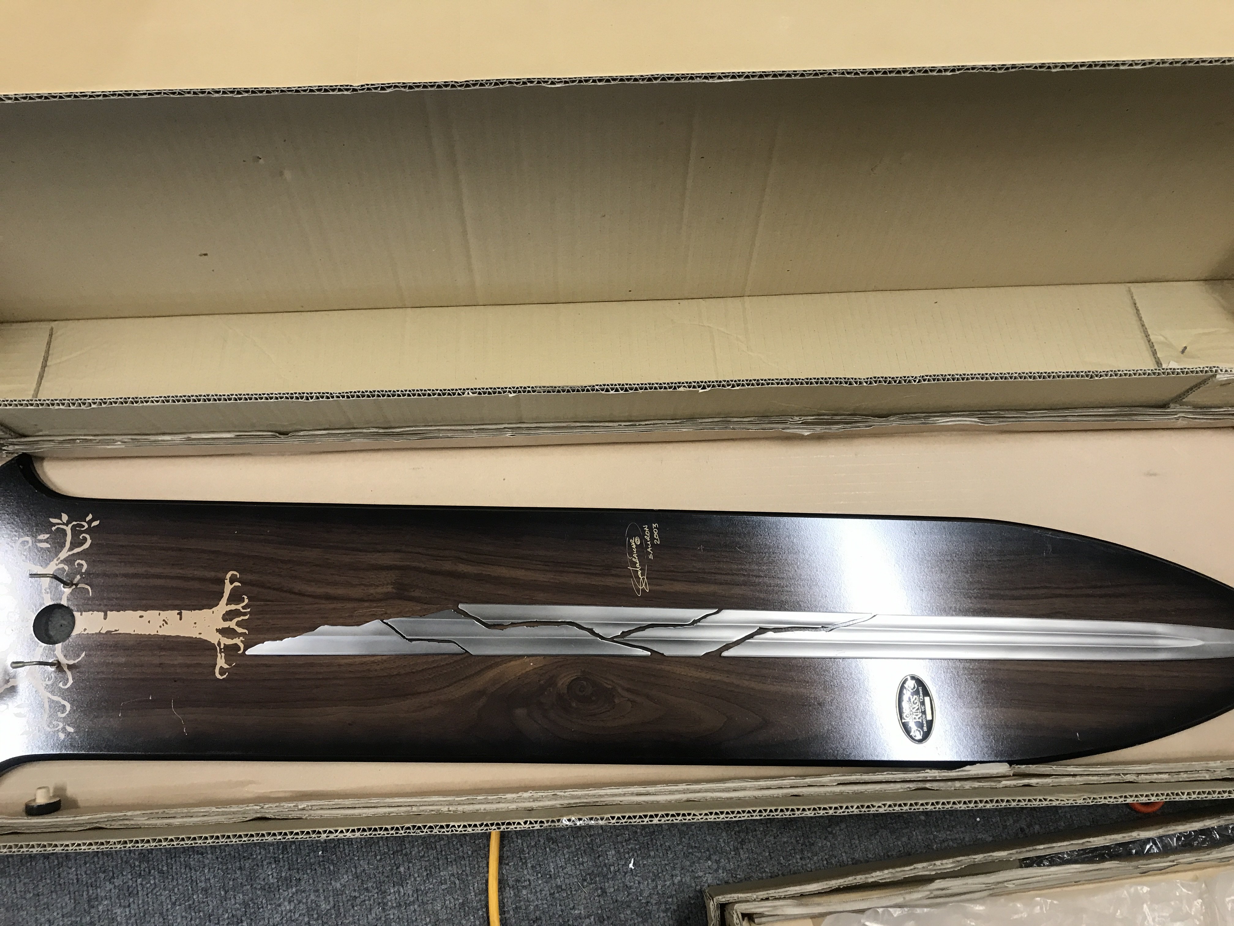 A Boxed United Cutlery Brands Ornamental Replica The Lord Of The Rings Shards Of Narsil. Signed By Actor Sala Baker. This Lot Cannot be Posted.