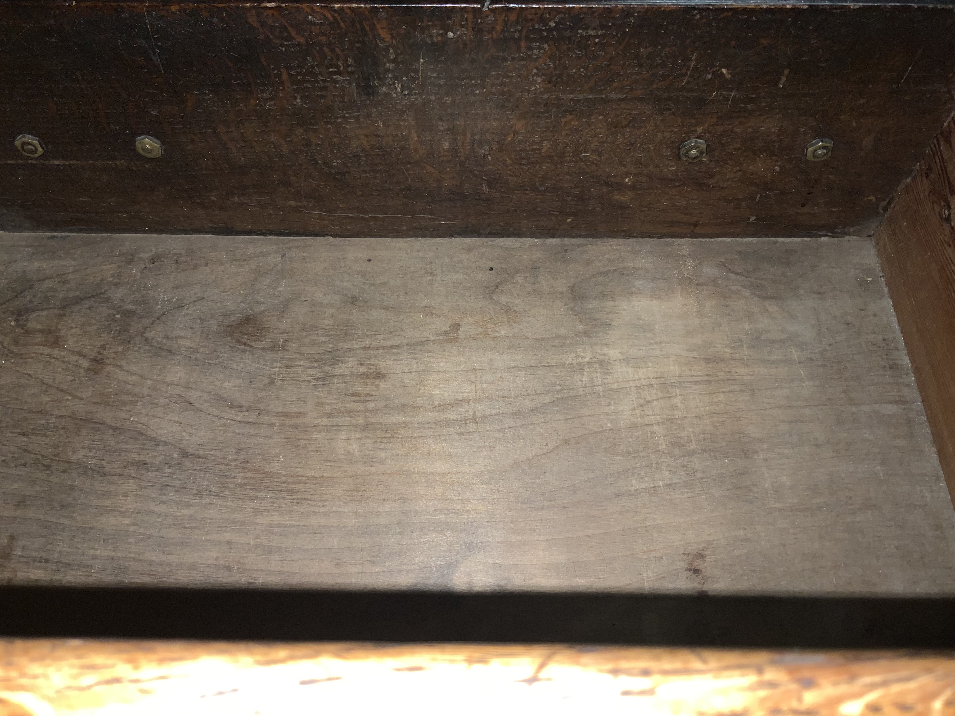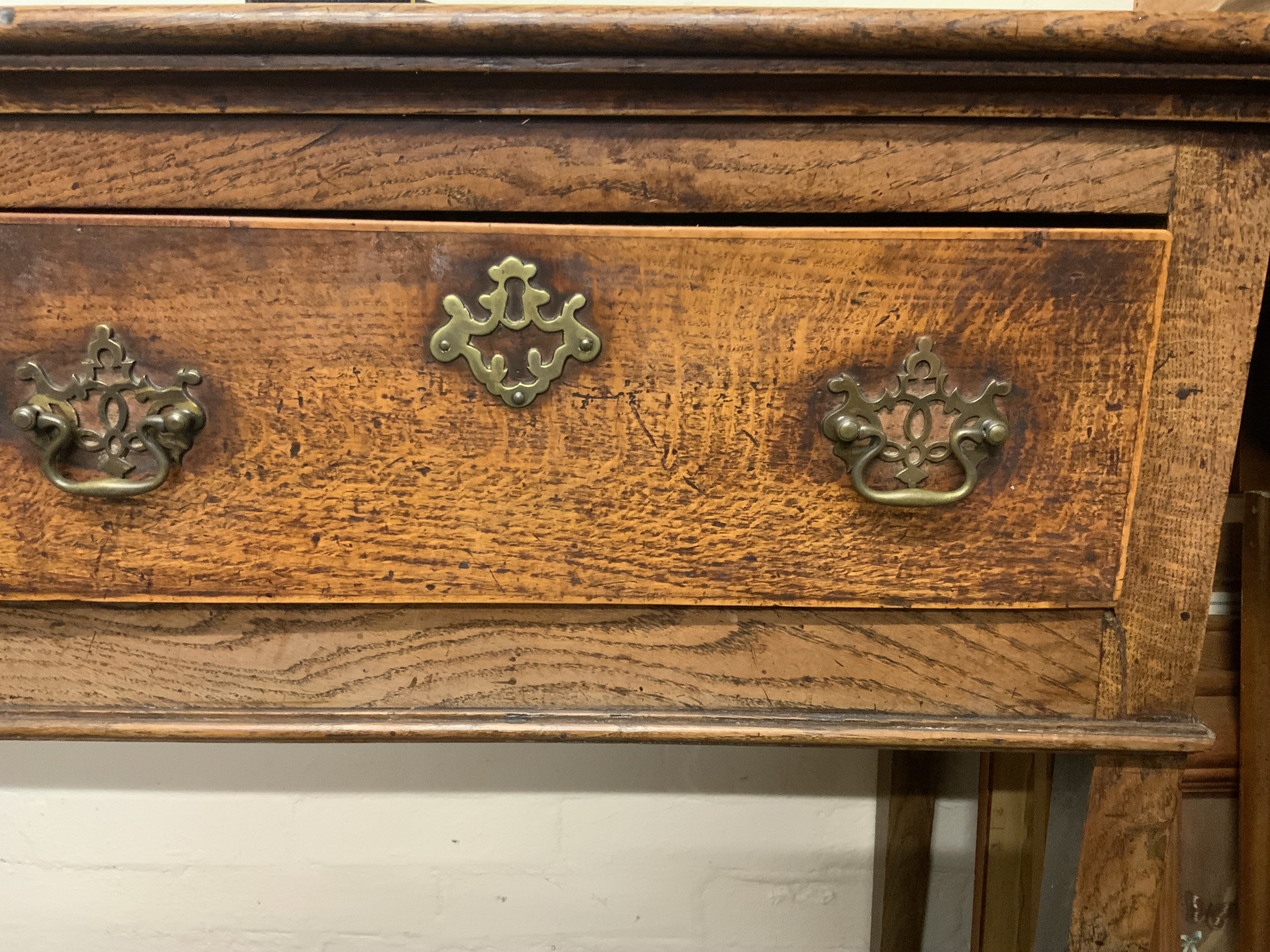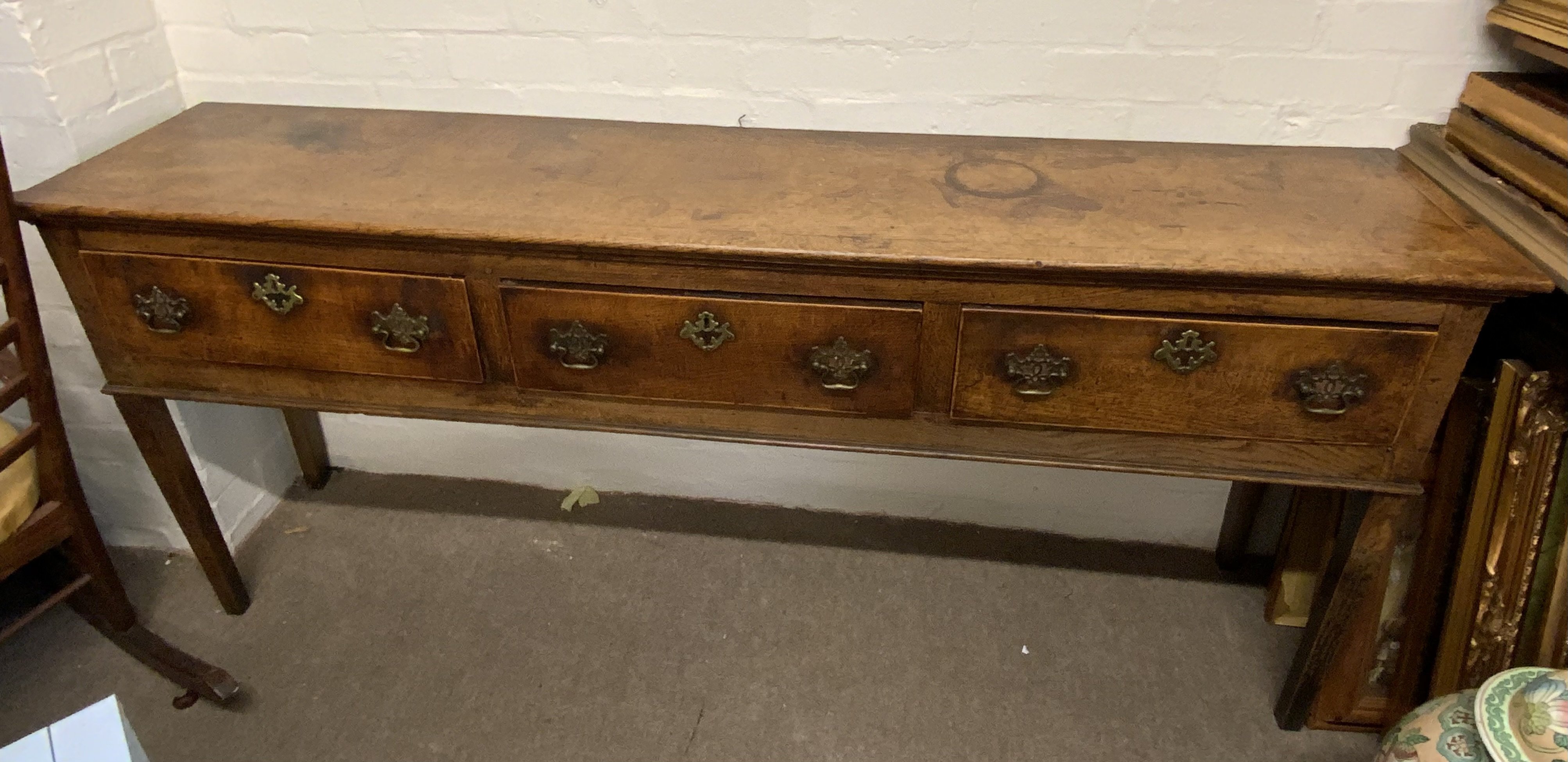 An early 18th Centruy oak dresser base / sideboard with 3 drawers. 180cm x 37cm x 68cm.