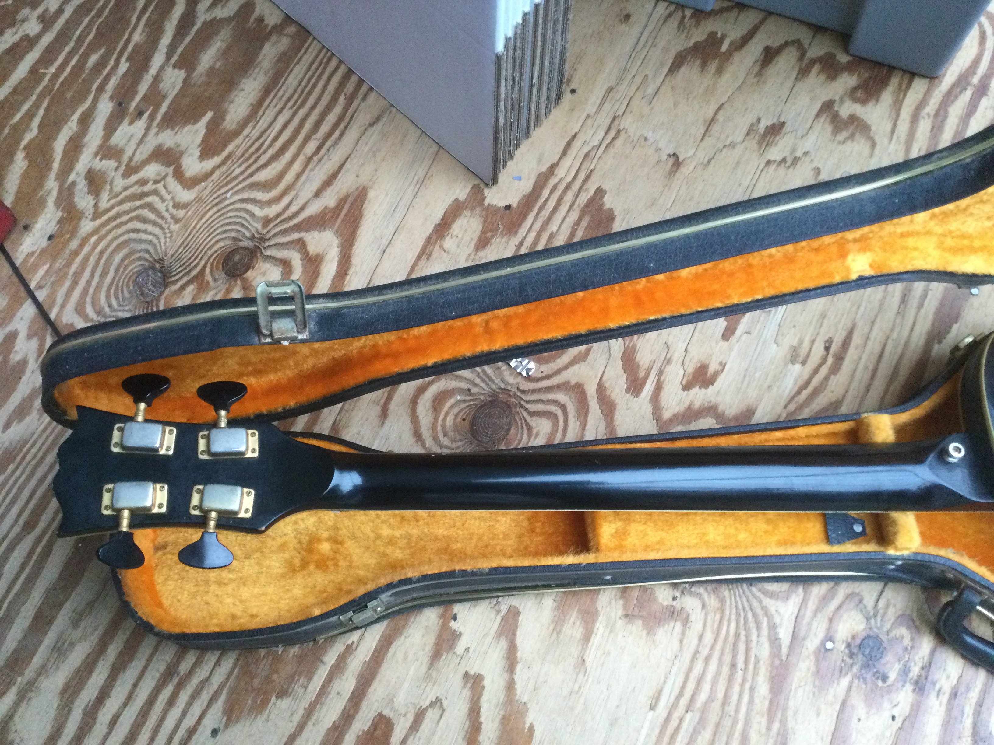 An early 1970s Jedson 2350B bass guitar with hard carry case. Jedson nameplate sadly missing.