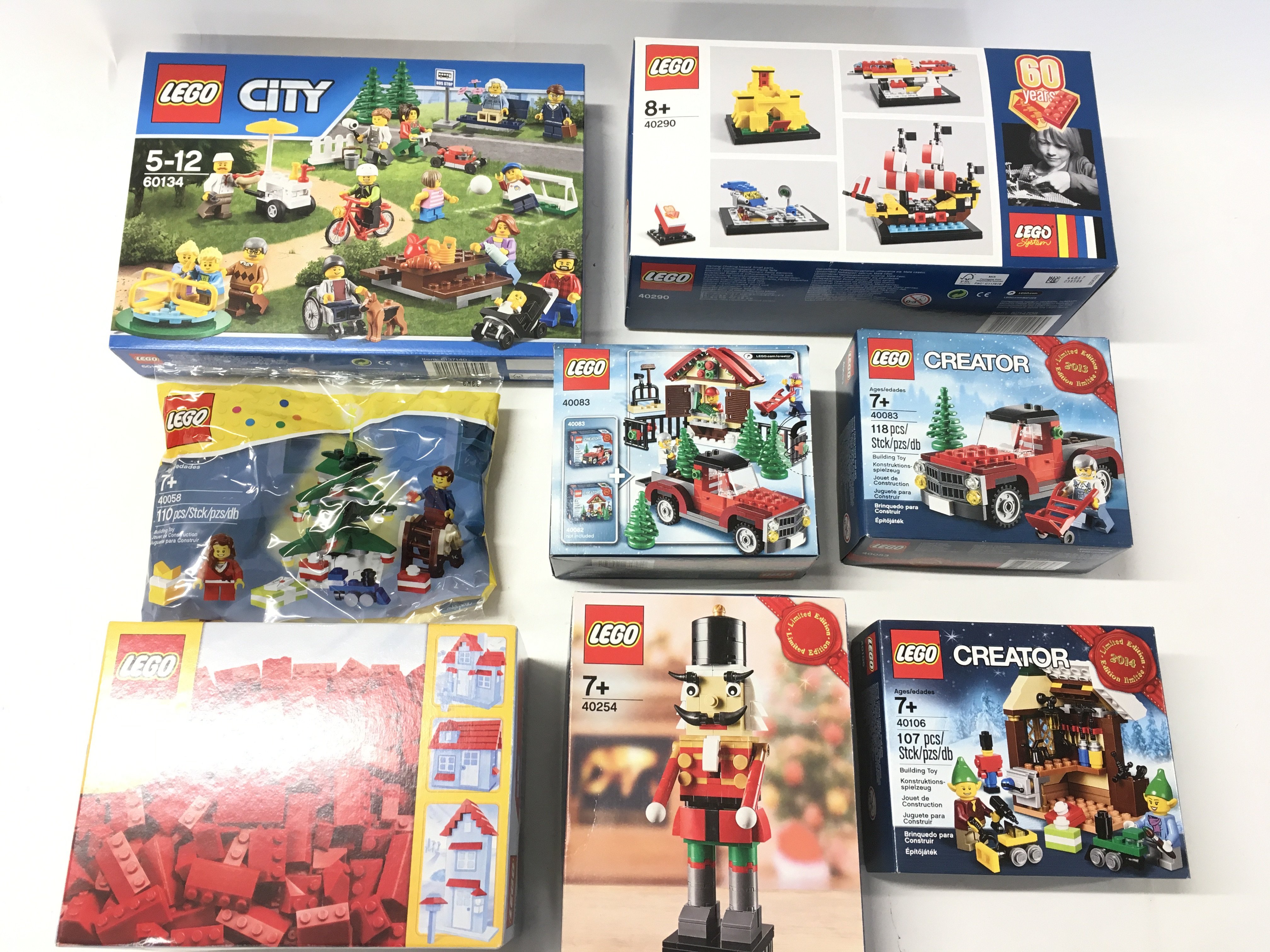 A collection of 8 assorted unopened Lego sets including # 6119.. # 40254..# 40106.. # 40083.. # 40083. # 40058. # 60134. # 40290. No reserve