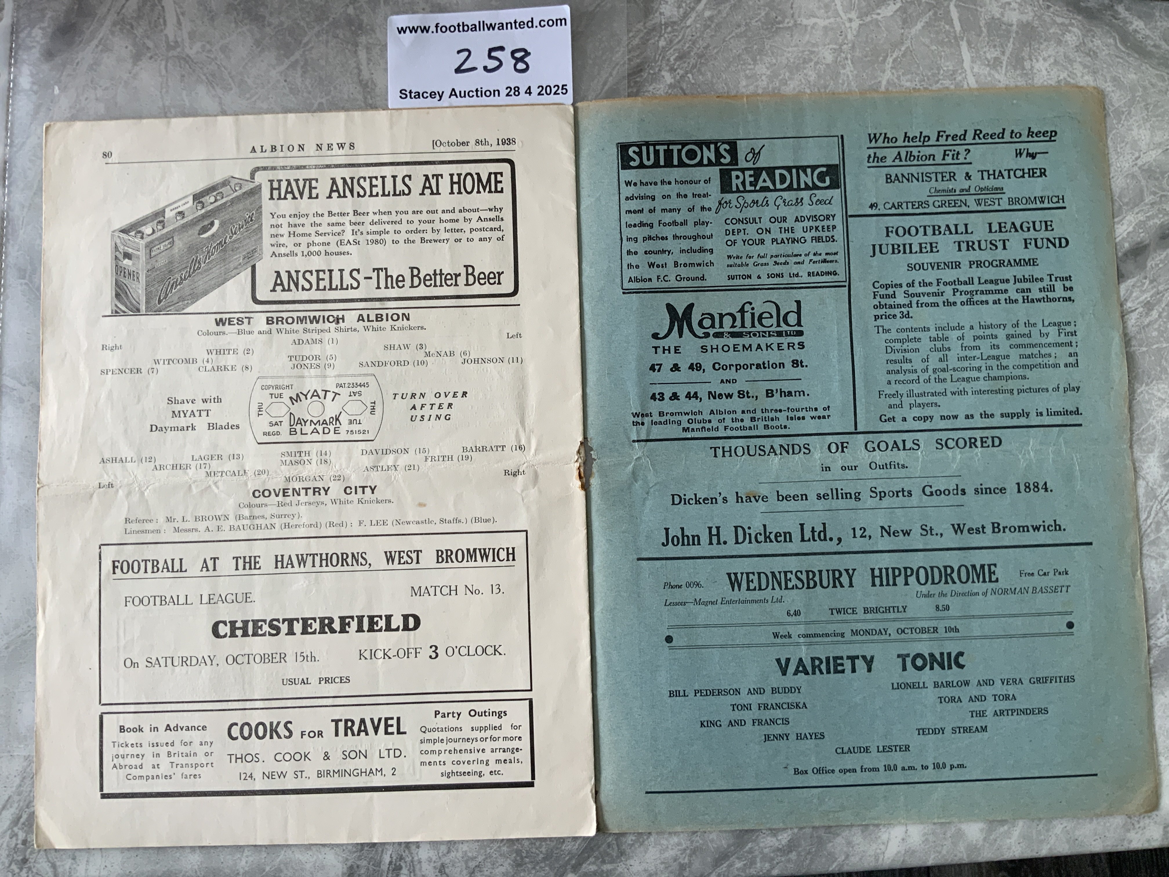 38/39 West Brom v Coventry City Football Programme: Good condition with hole where staple was. Fold but no team changes.
