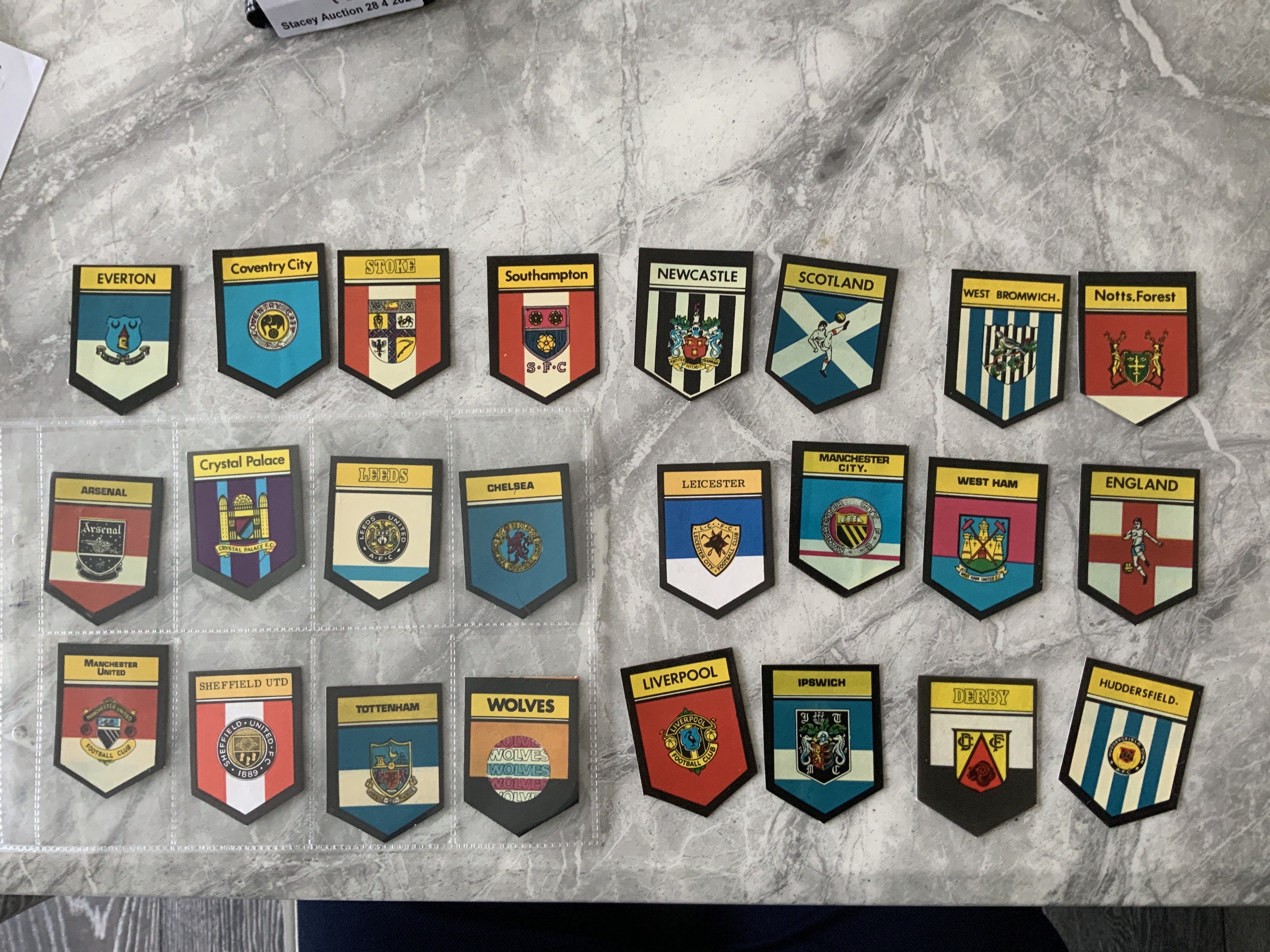 Babs Football Club Badges Sticker Cards: All different to 22 prominent English club badges plus England and Scotland. Excellent. (24)