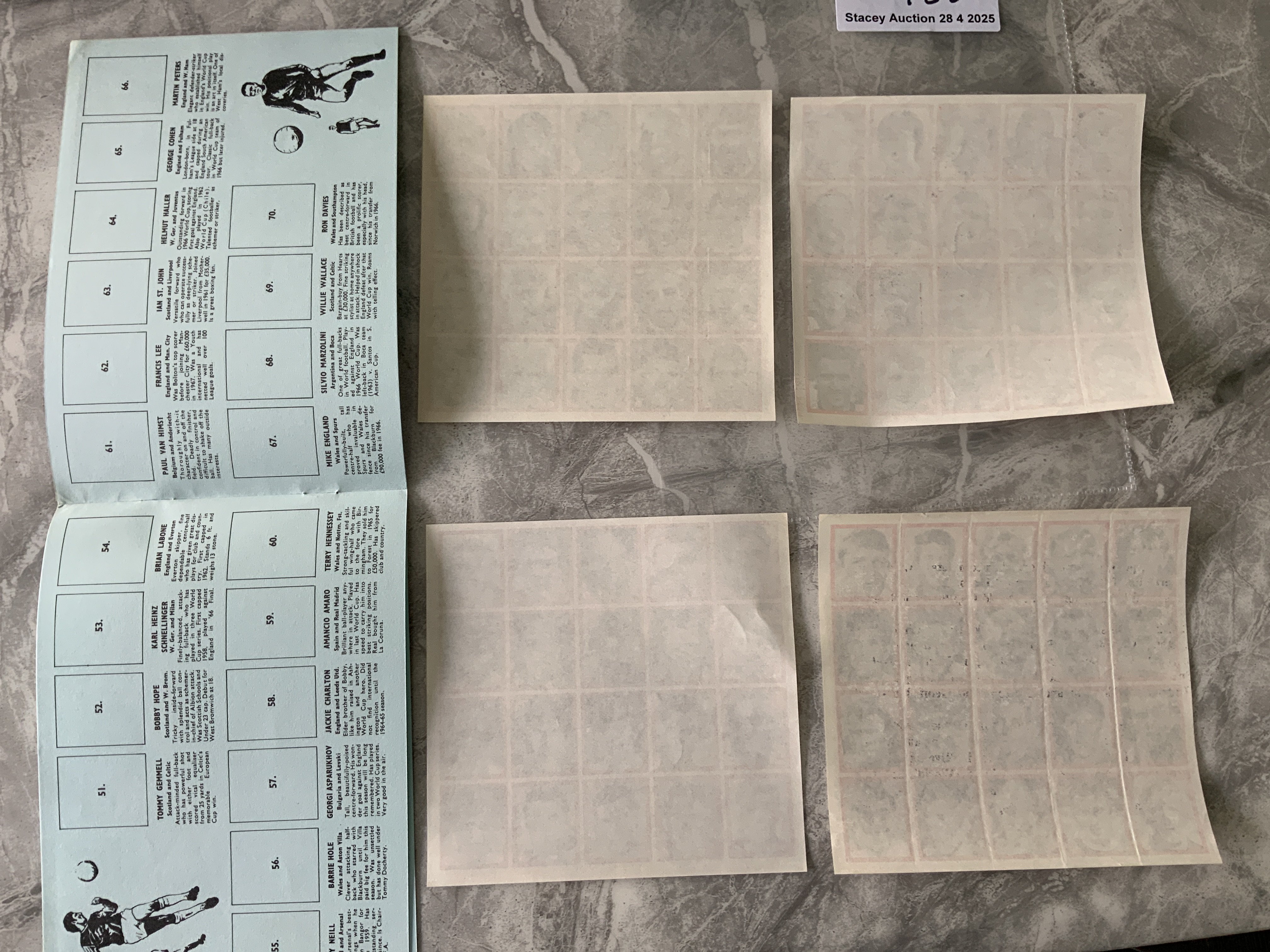 Charles Buchan Complete Uncut Football Stickers: 4 uncut sheets of 20 small World Stars cards plus excellent condition empty album.