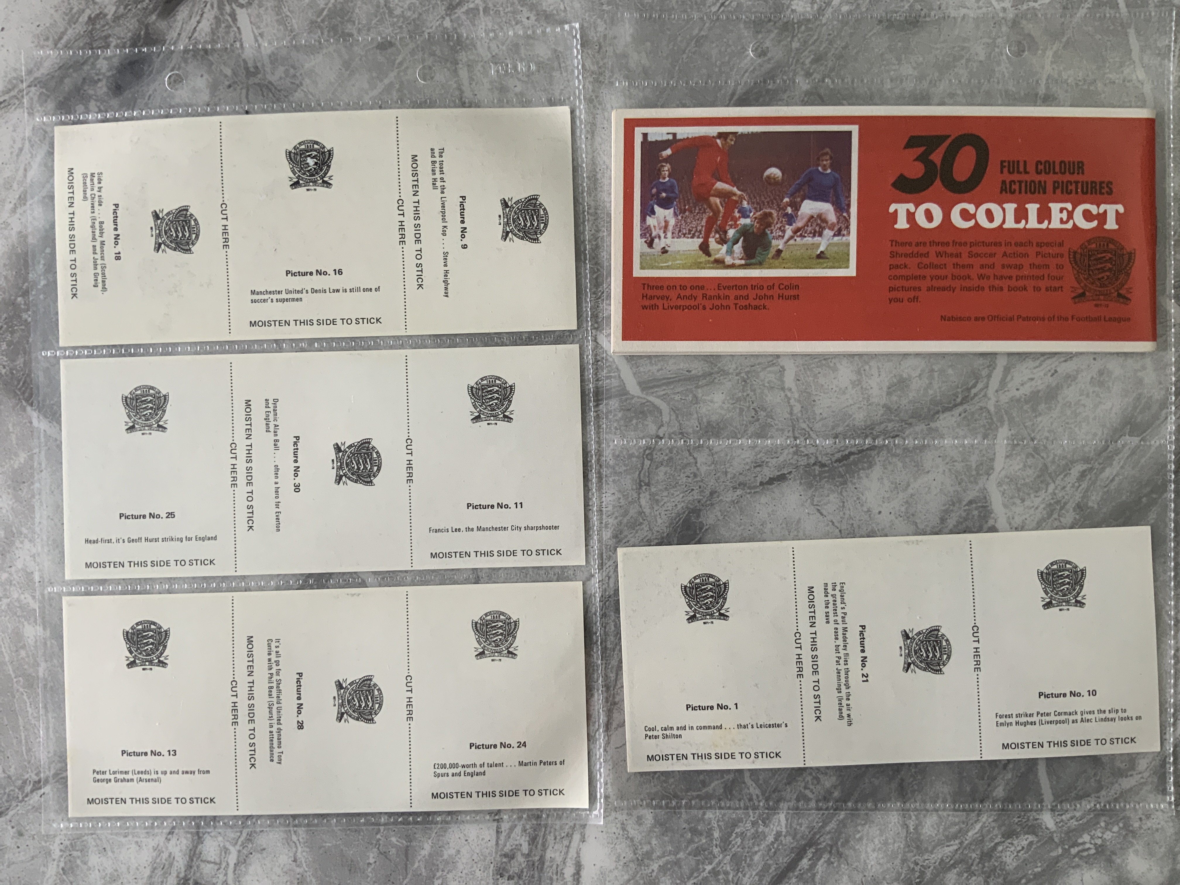 Nabisco Bob Wilson Set Of Uncut Football Cards: Full set of 30 uncut cards plus empty Shredded Wheat Collectors Book.