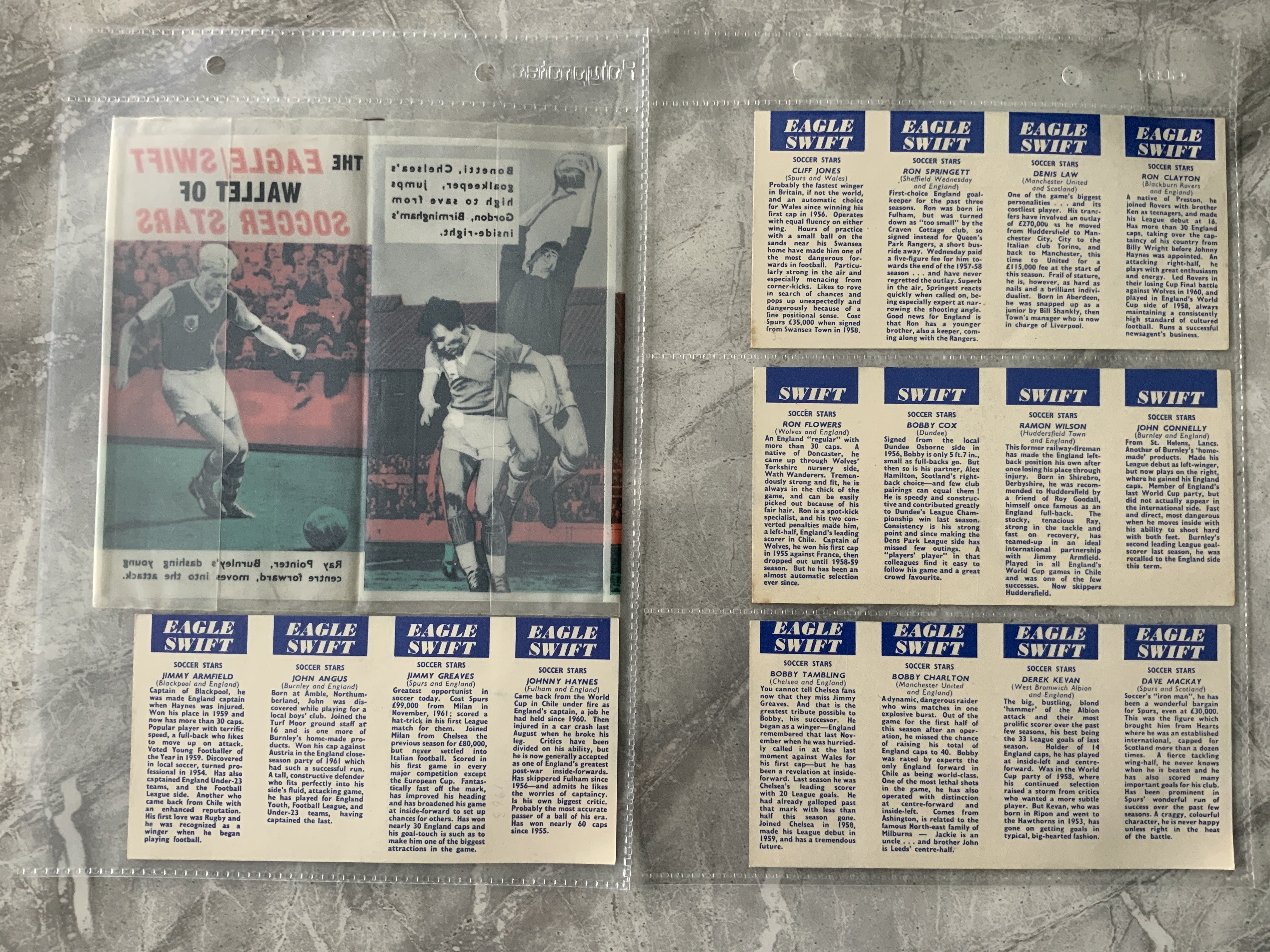 1963 Eagle Swift Complete Set Of Football Cards: Mint uncut set of 16 cards plus the wallet produced by Longacre Press.