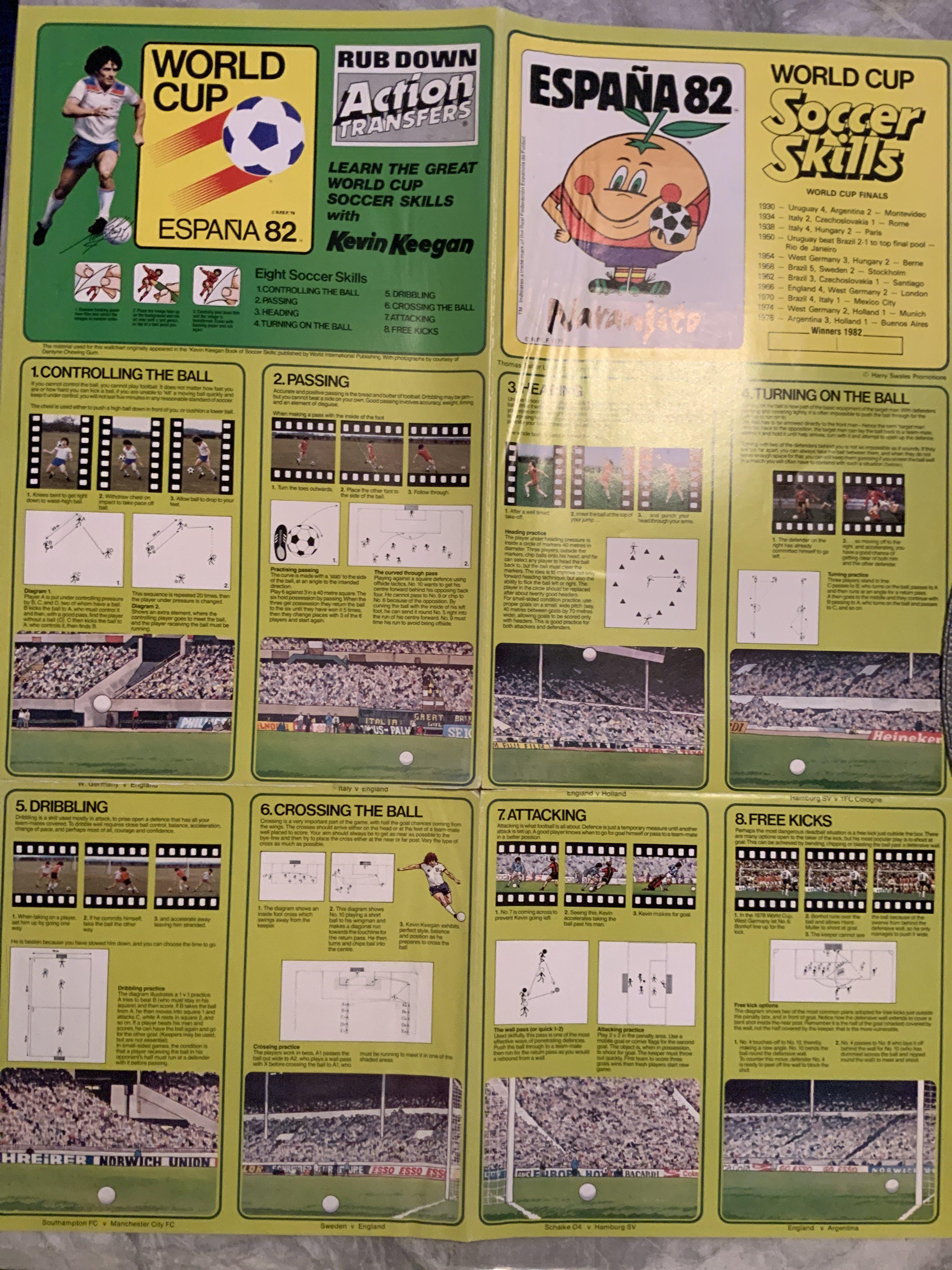 Kevin Keegan World Cup 82 Football Transfer Set: Unused transfers with original poster and large card for transfers to attach. Excellent with poster having tear.