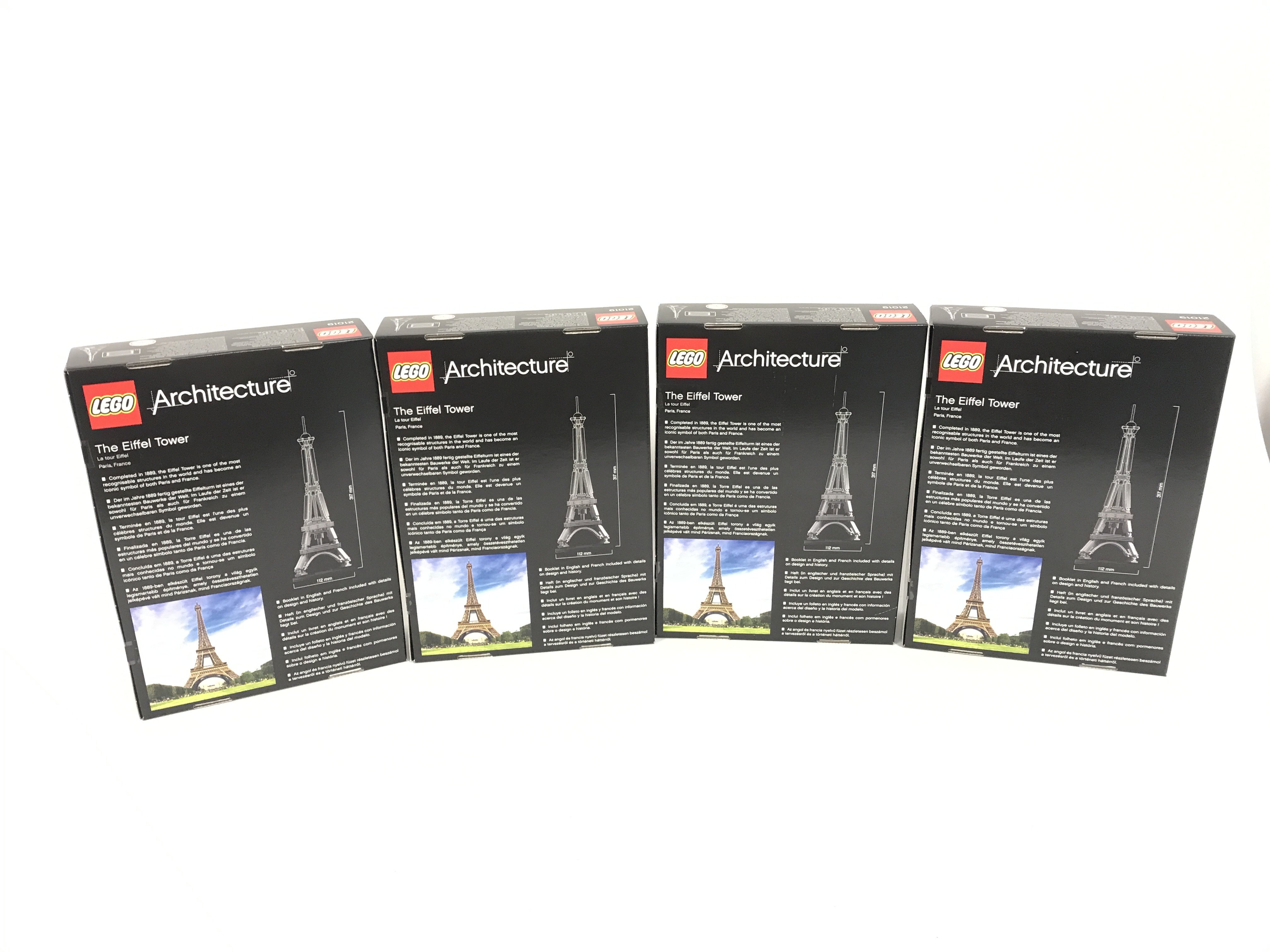 4 boxed and sealed Lego Eiffel Tower 21019 sets. No reserve.