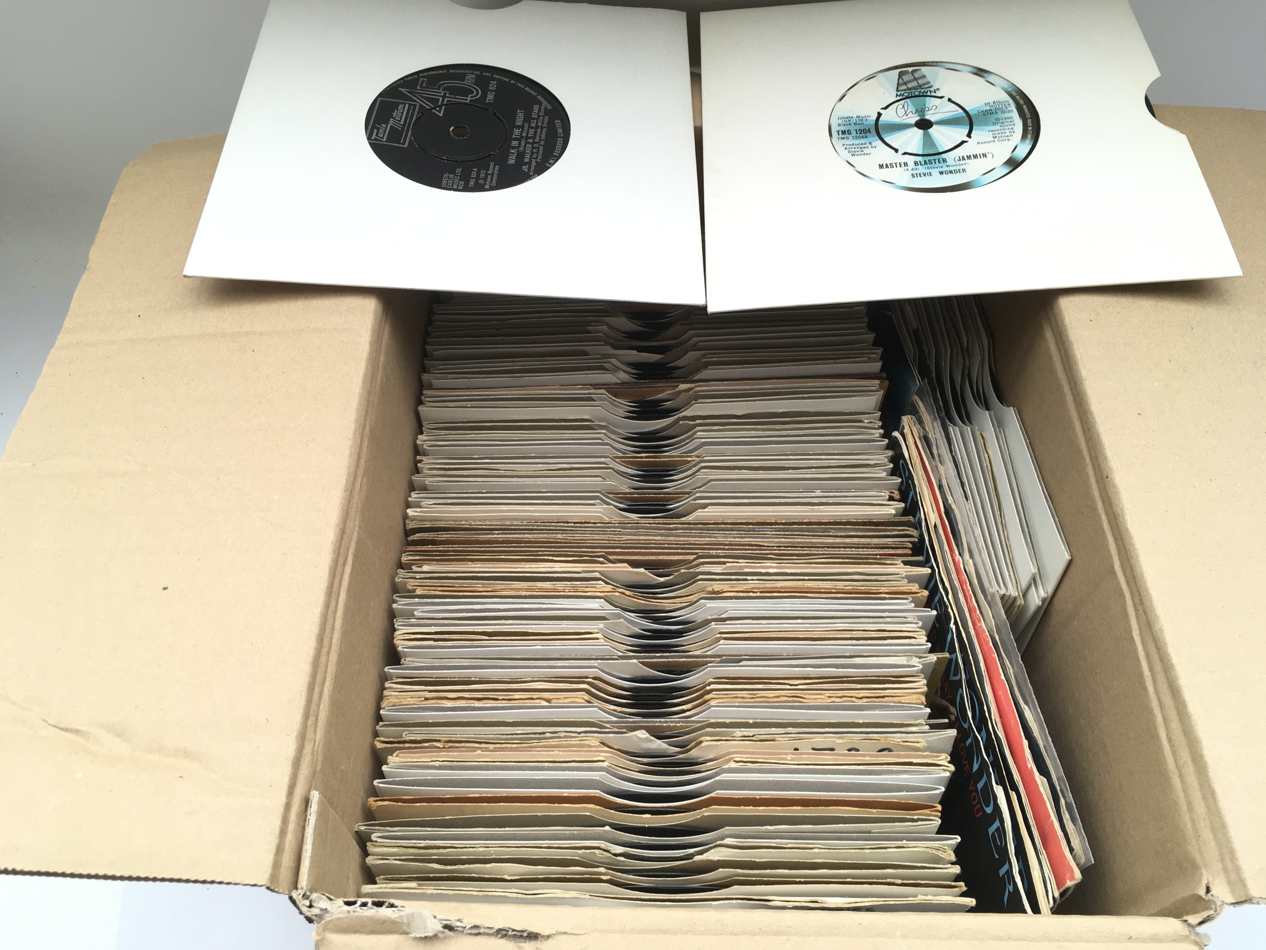 A box of Motown 7" singles by various artists from the 1960s onwards.