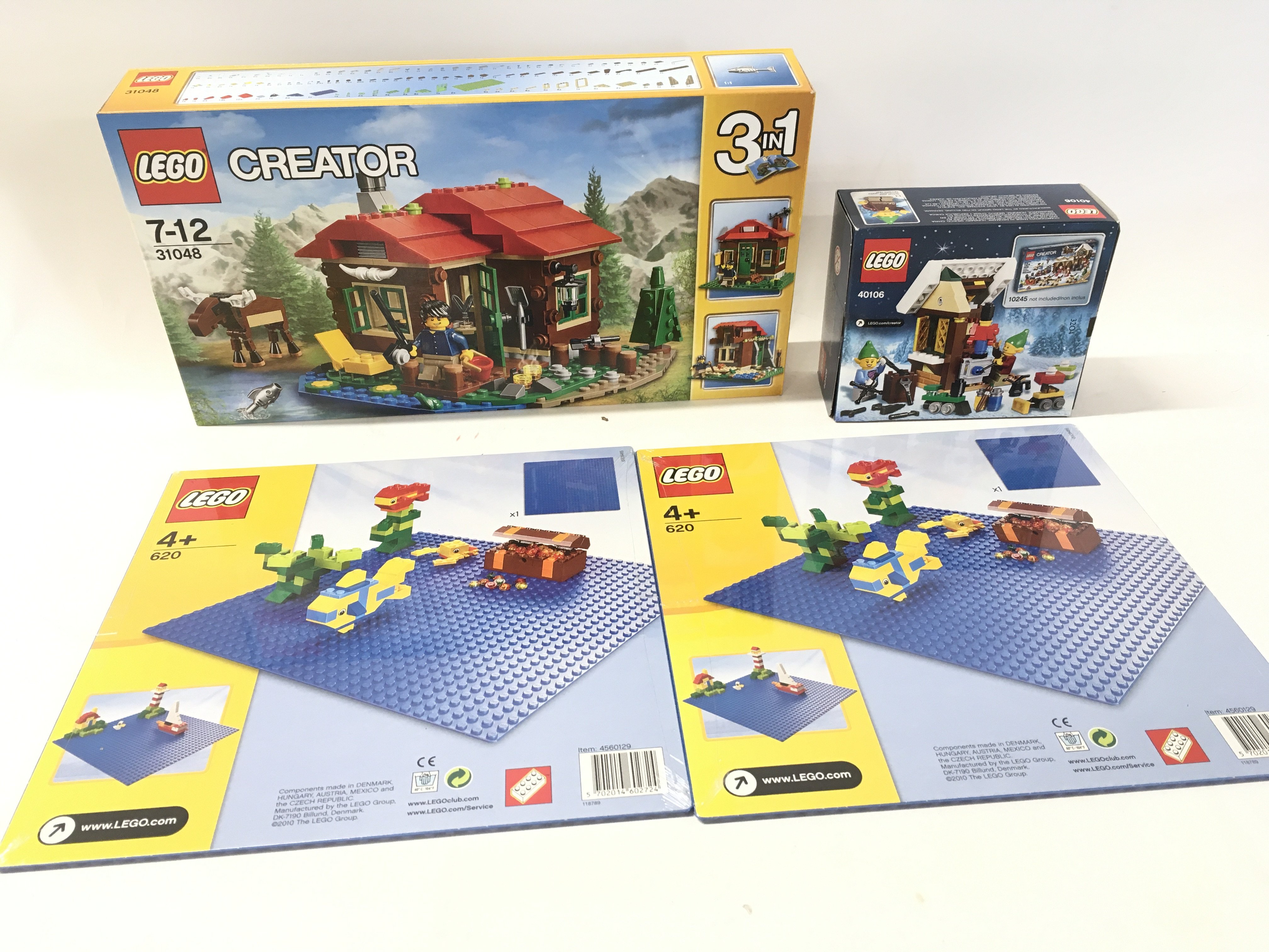 4x unopened Lego sets including 2x Creator #31048 lakeside cabin. #40106 workshop. 2x accessory #620. No reserve