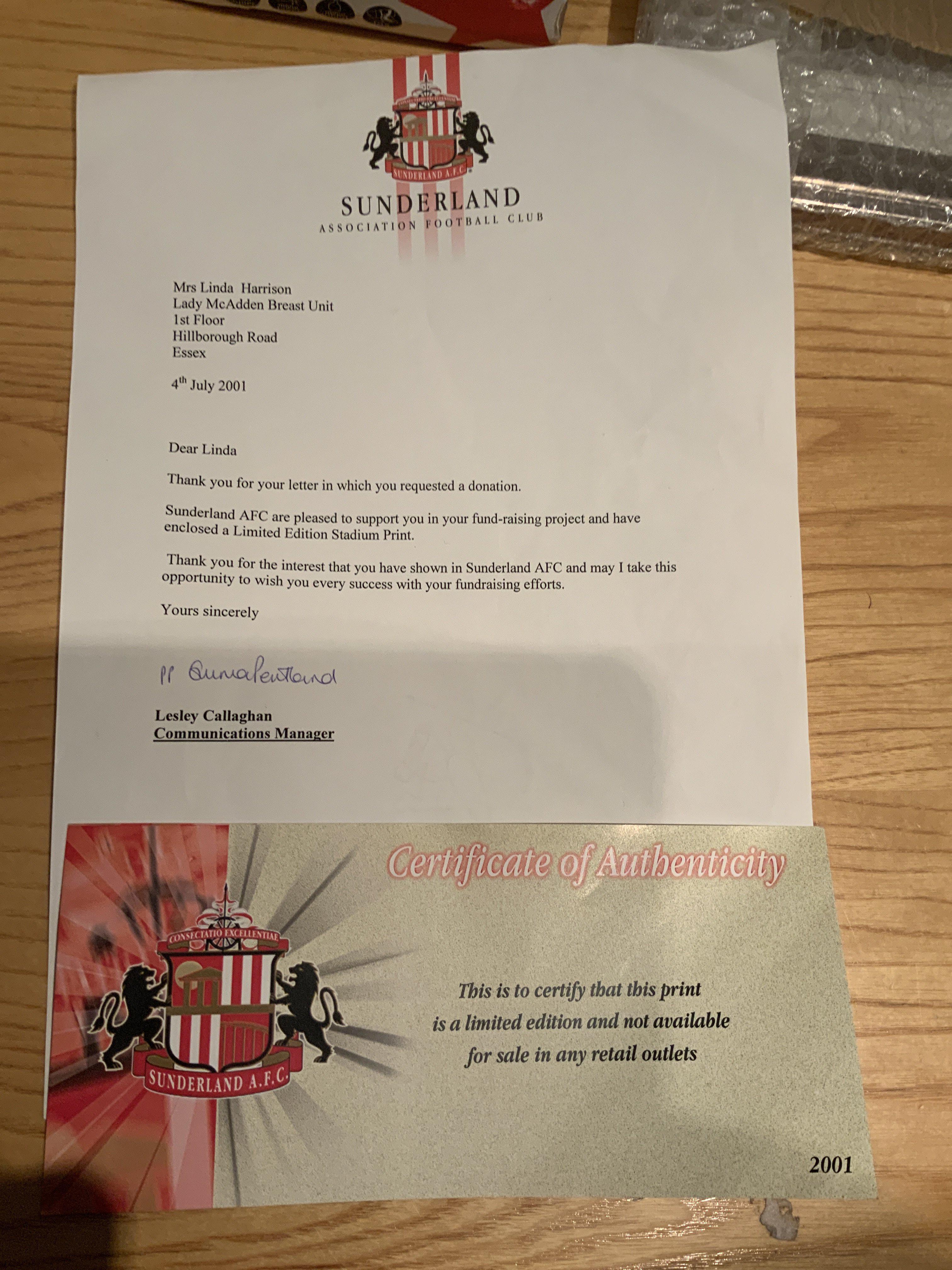 Sunderland Stadium Of Light Signed Football Photo: 18 x 13 inch picture of the new stadium at night lit up. Ltd edition signed by the manager and the chairman. COA letter from the club. Instructions to sell.