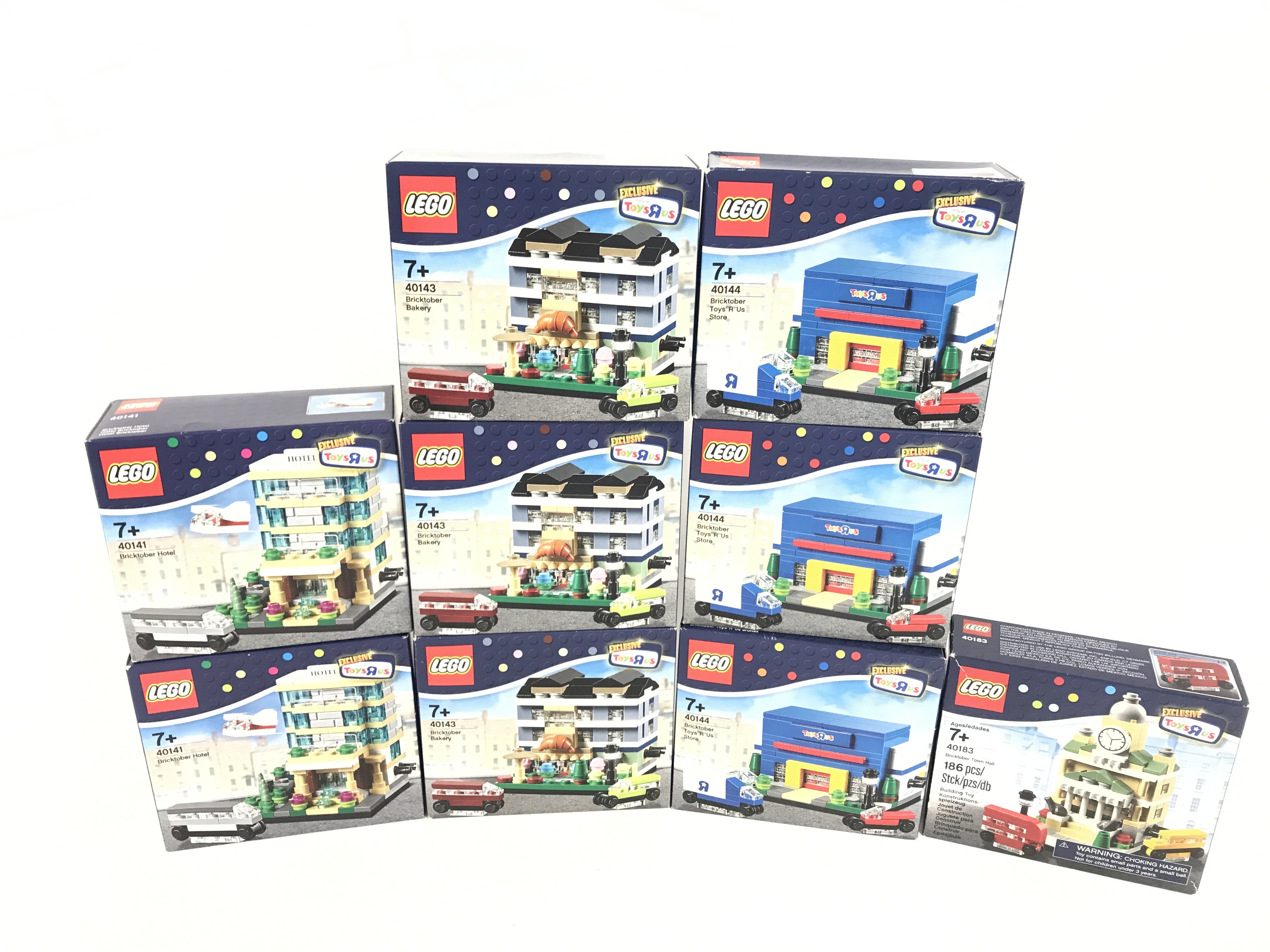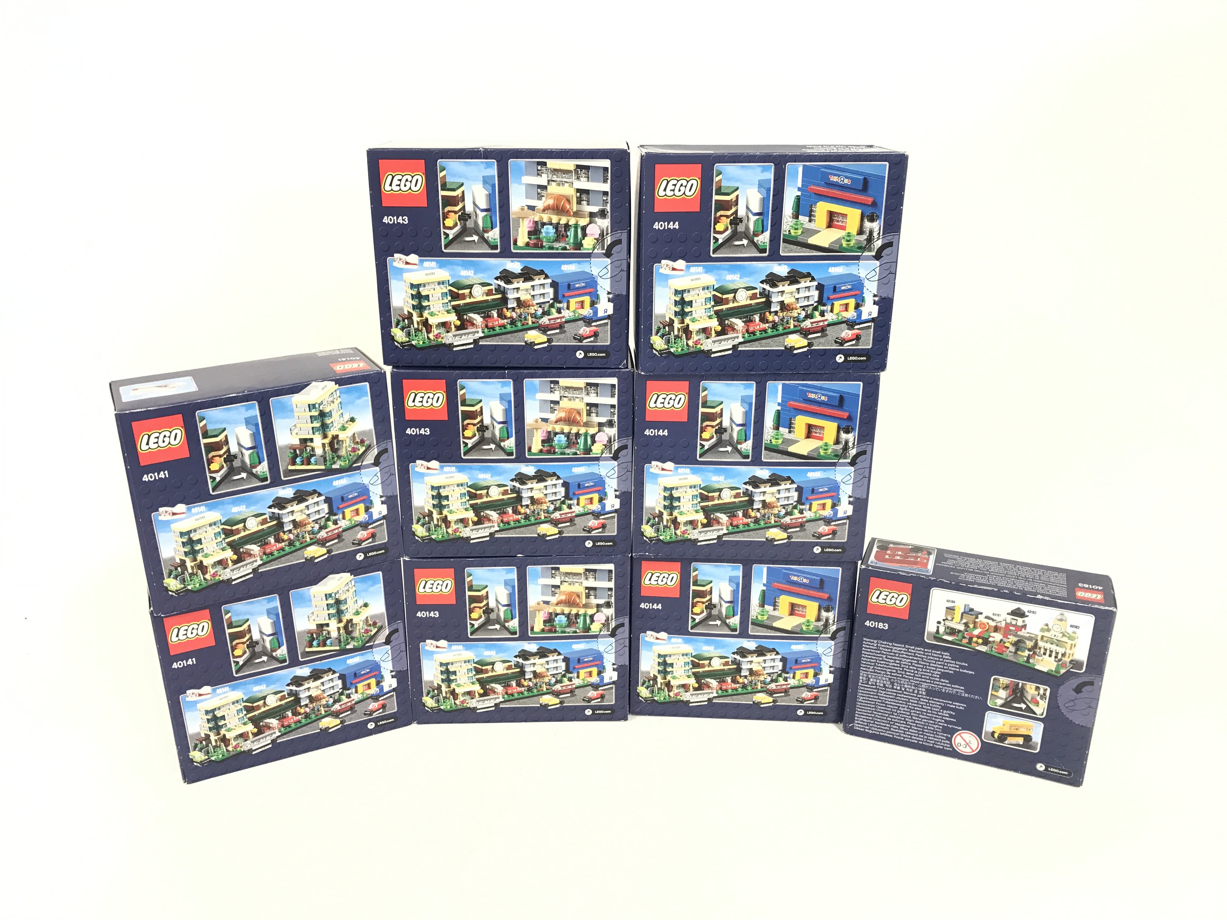 9 boxes of sealed Lego. To include 1 40183 Bricktober Town Hall. 2 40141 Bricktober Hotel. 3 40143 Bricktober Bakery. 3 40144 Bricktober Toys R Us Store. No reserve.