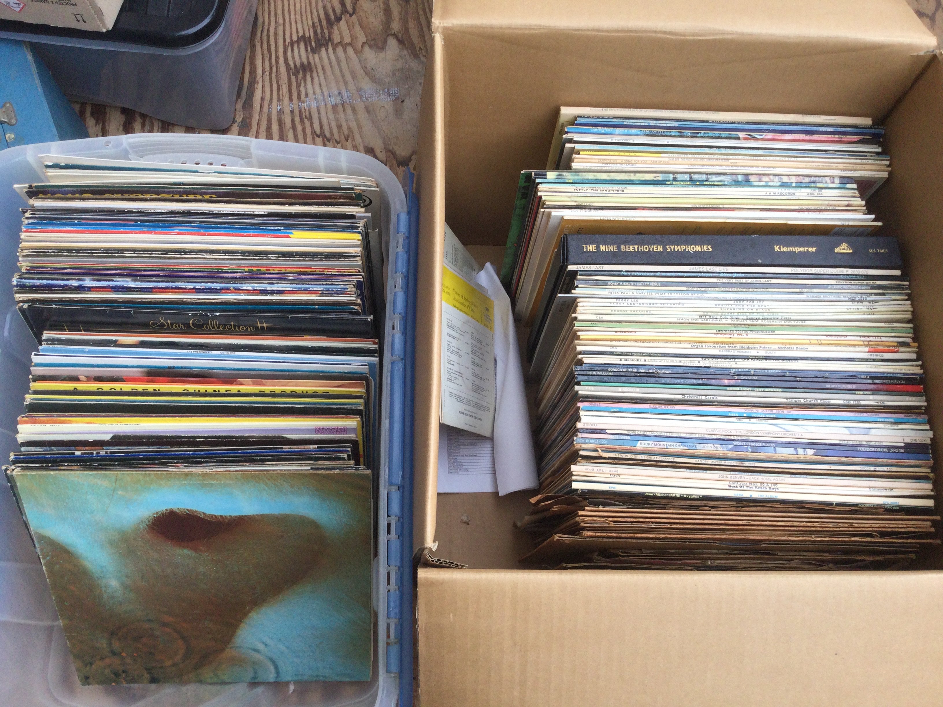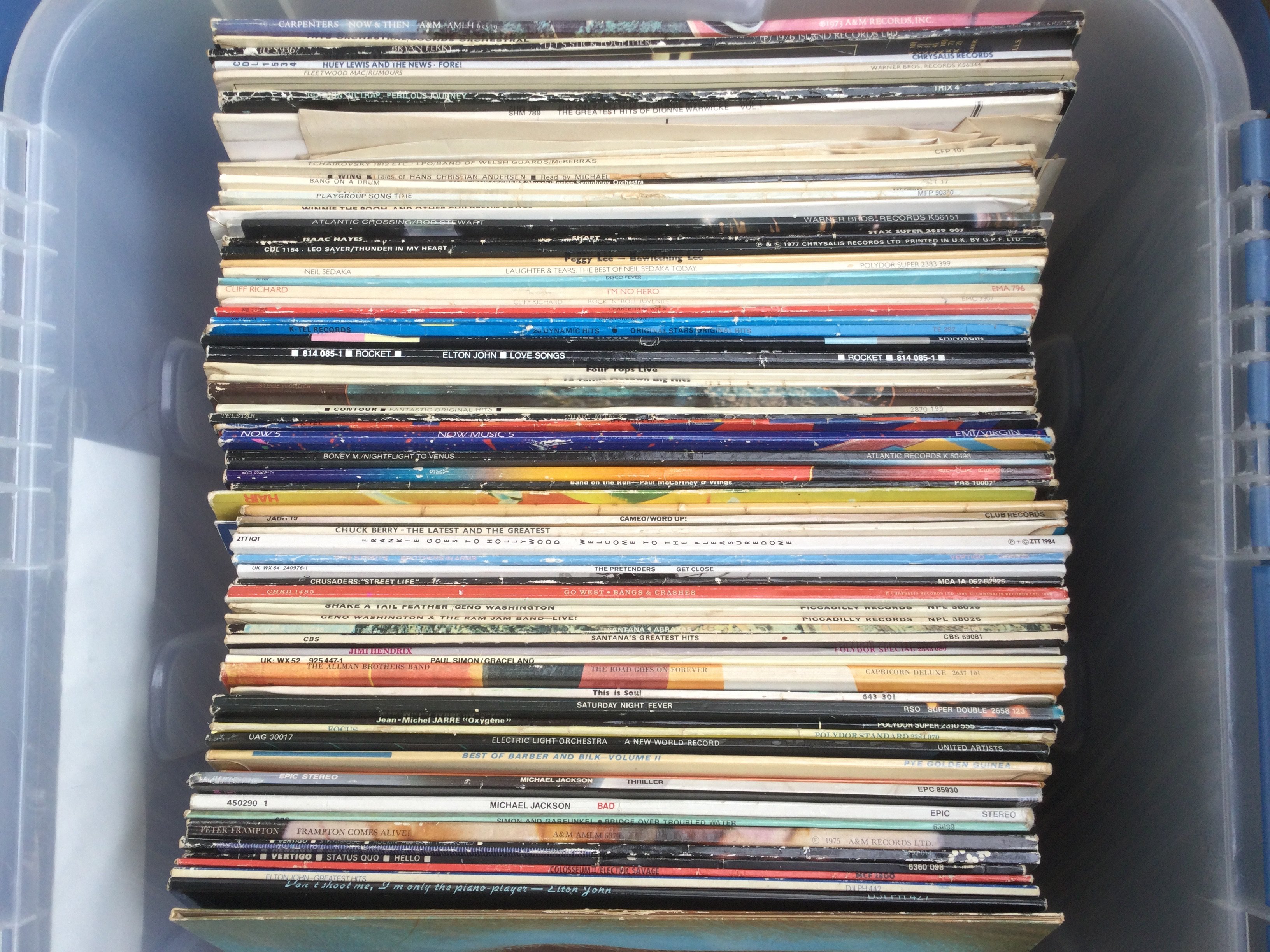 Two boxes of LPs, 12" singles and 78s by various artists including Pink Floyd, Elton John, ELO and others.
