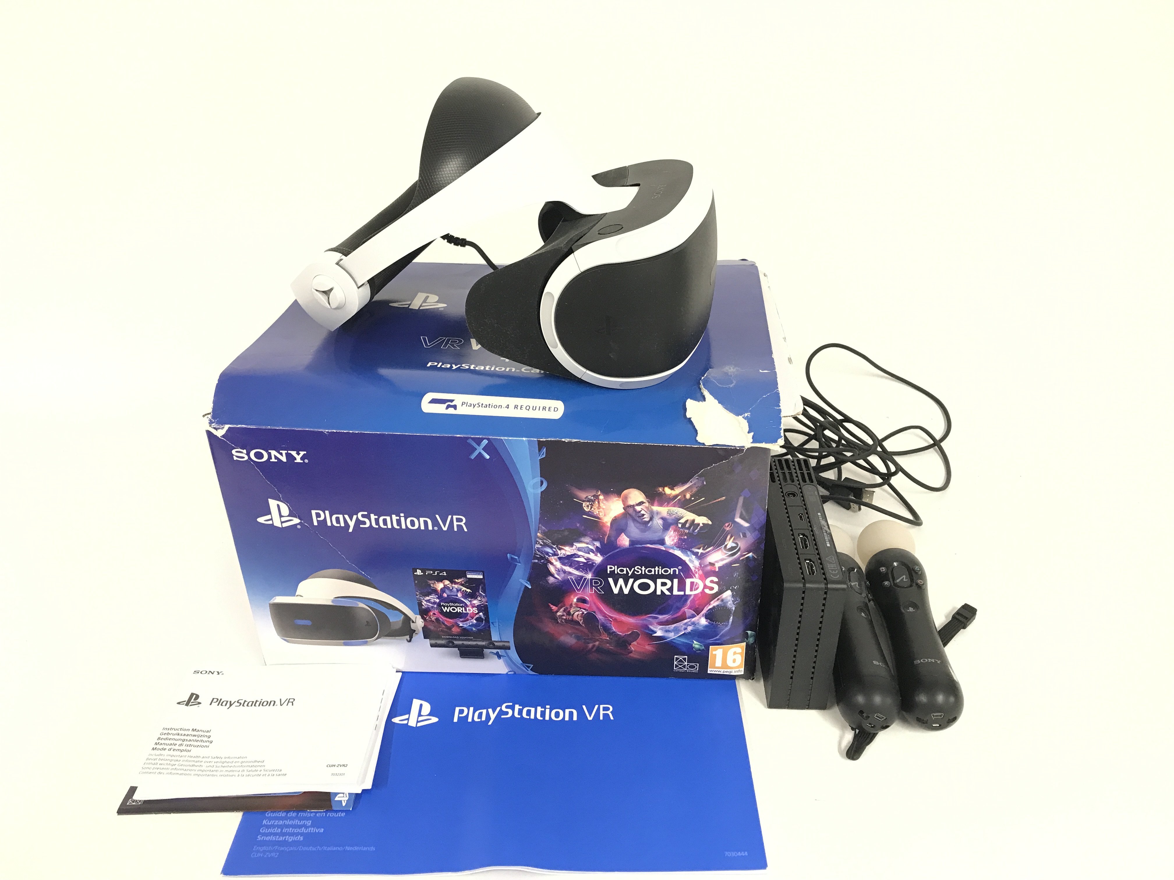 A used and boxed Sony PlayStation Worlds VR headset. Complete with headset. Powerpack. Camera. All relevant cables. Original guide and instructions. Also included is 2 PlayStation Moves. No reserve.