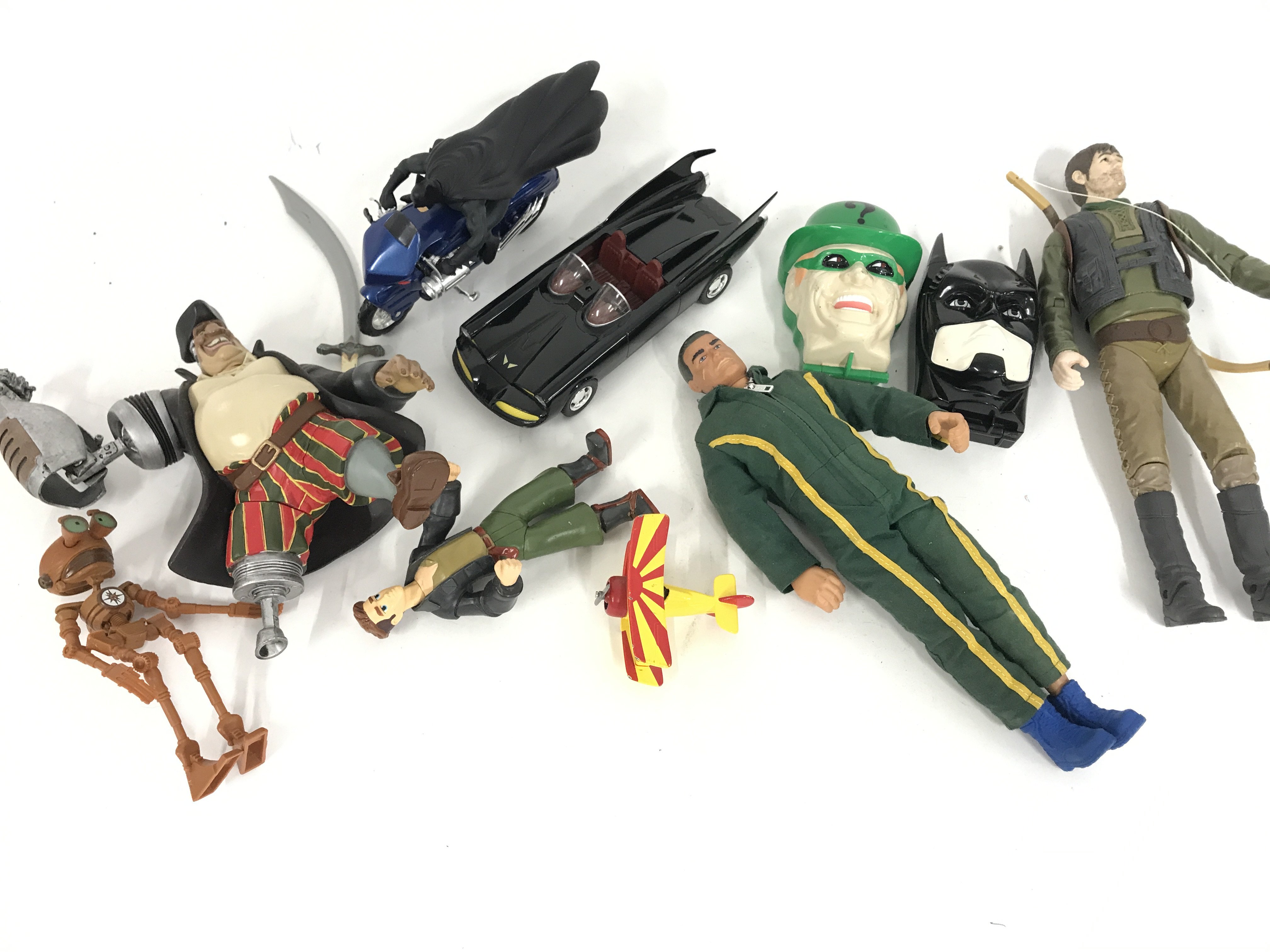 A box containing a collection of model cars. To include some James Bond models. Maisto scale cars and a scale model Aston Martin. Also included is a small collection of toys to include Batman. Action man. Thomas the tank engine. No reserve.