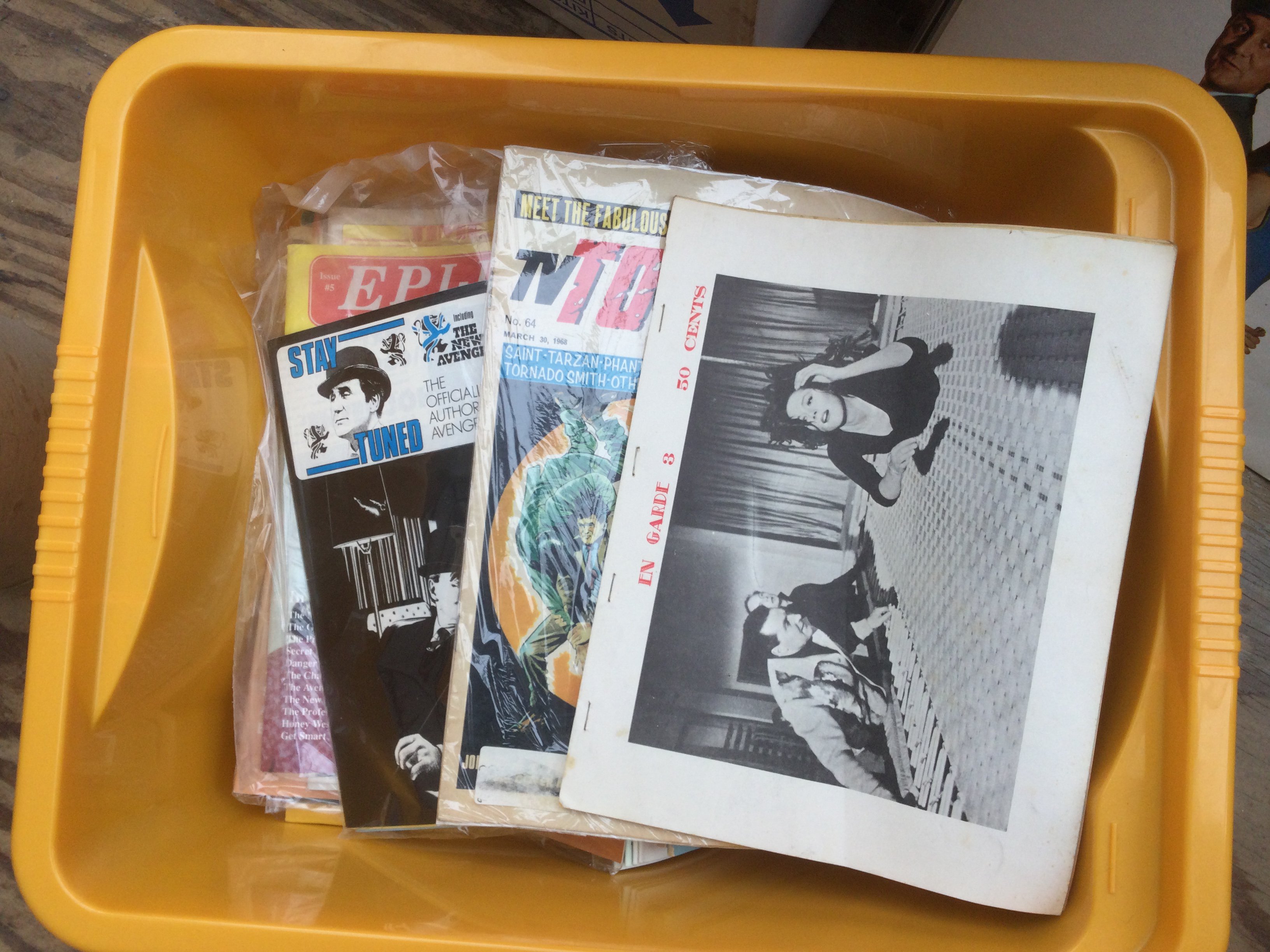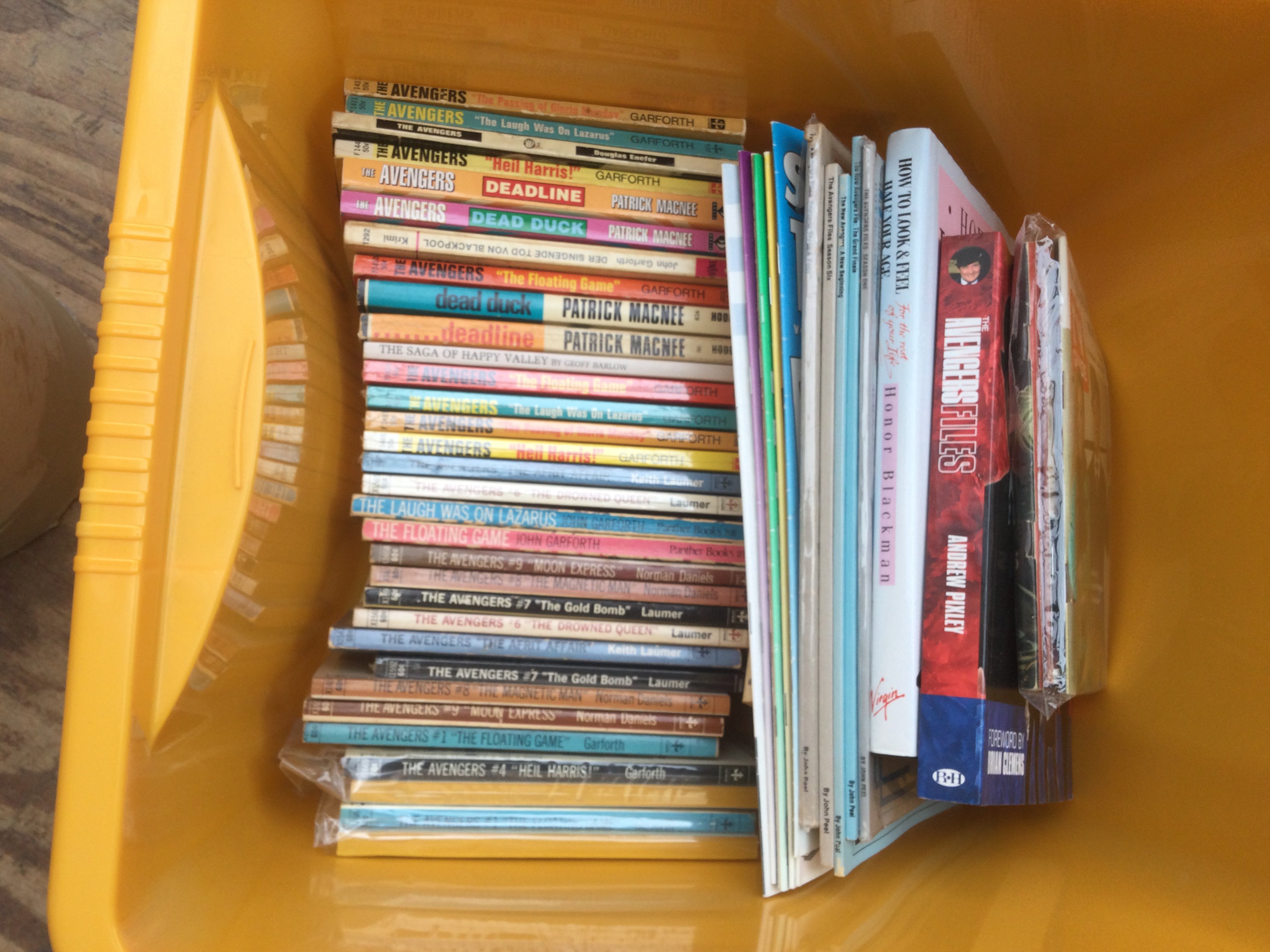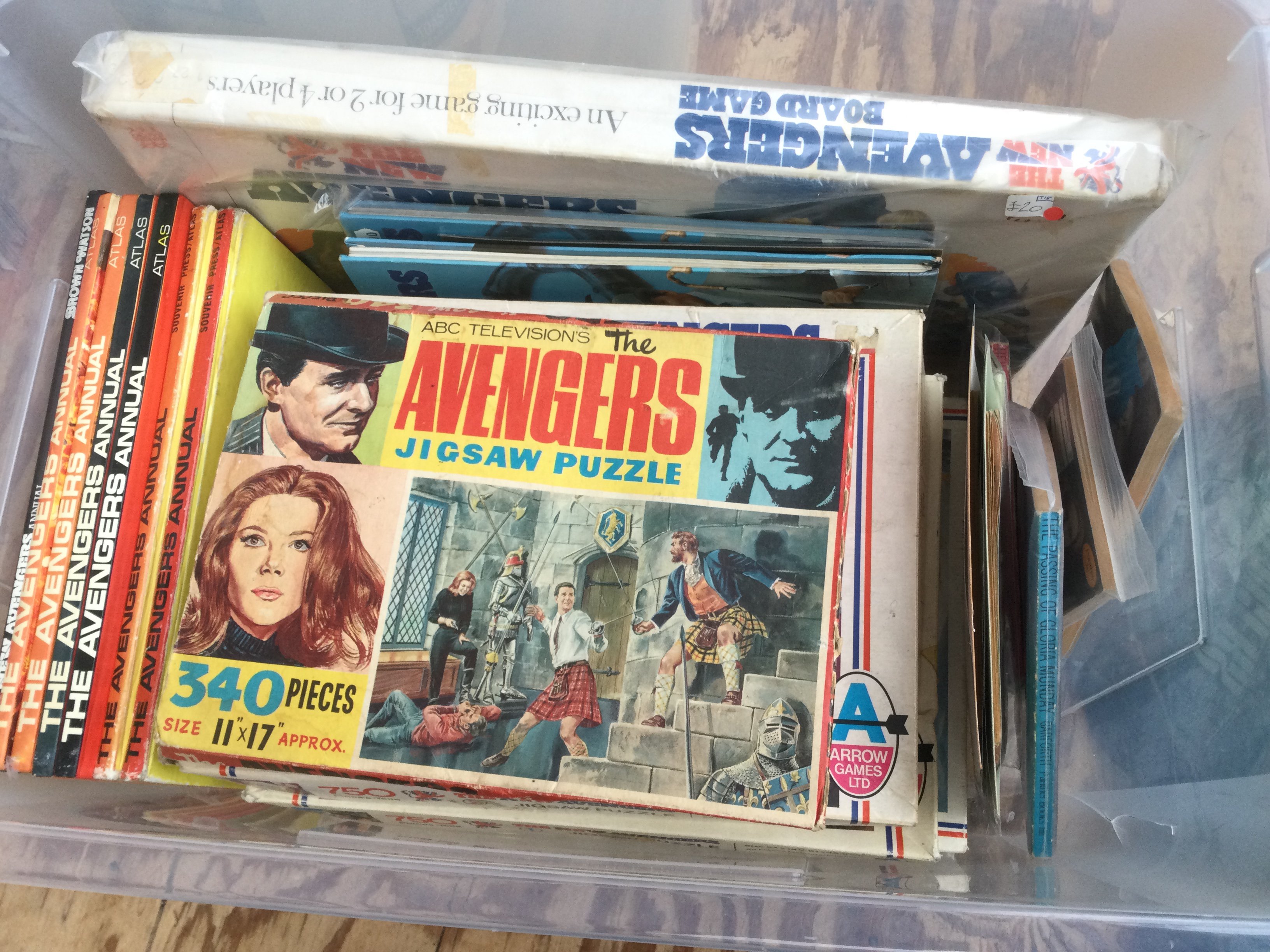 Two boxes of items relating to the The Avengers TV series comprising books, magazines, jigsaws etc.