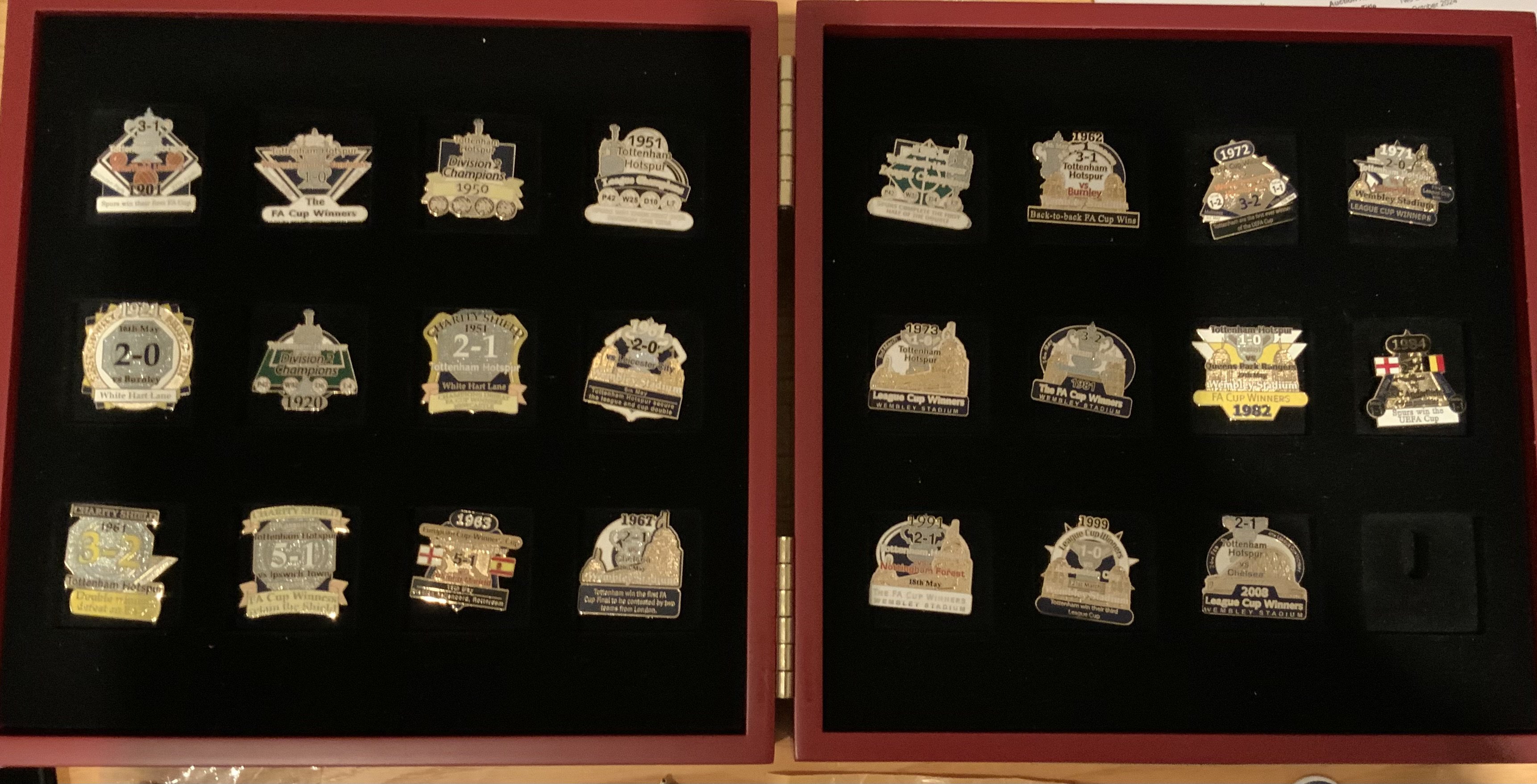 Tottenham Football Badge Collection: Large quantity of pin badges including a boxed set of 23. 120 ltd edition of 50 badges still in wrappers. 220+ loose badges and more. Sold in last auction for 720 pounds with non payer L Pain now banned.