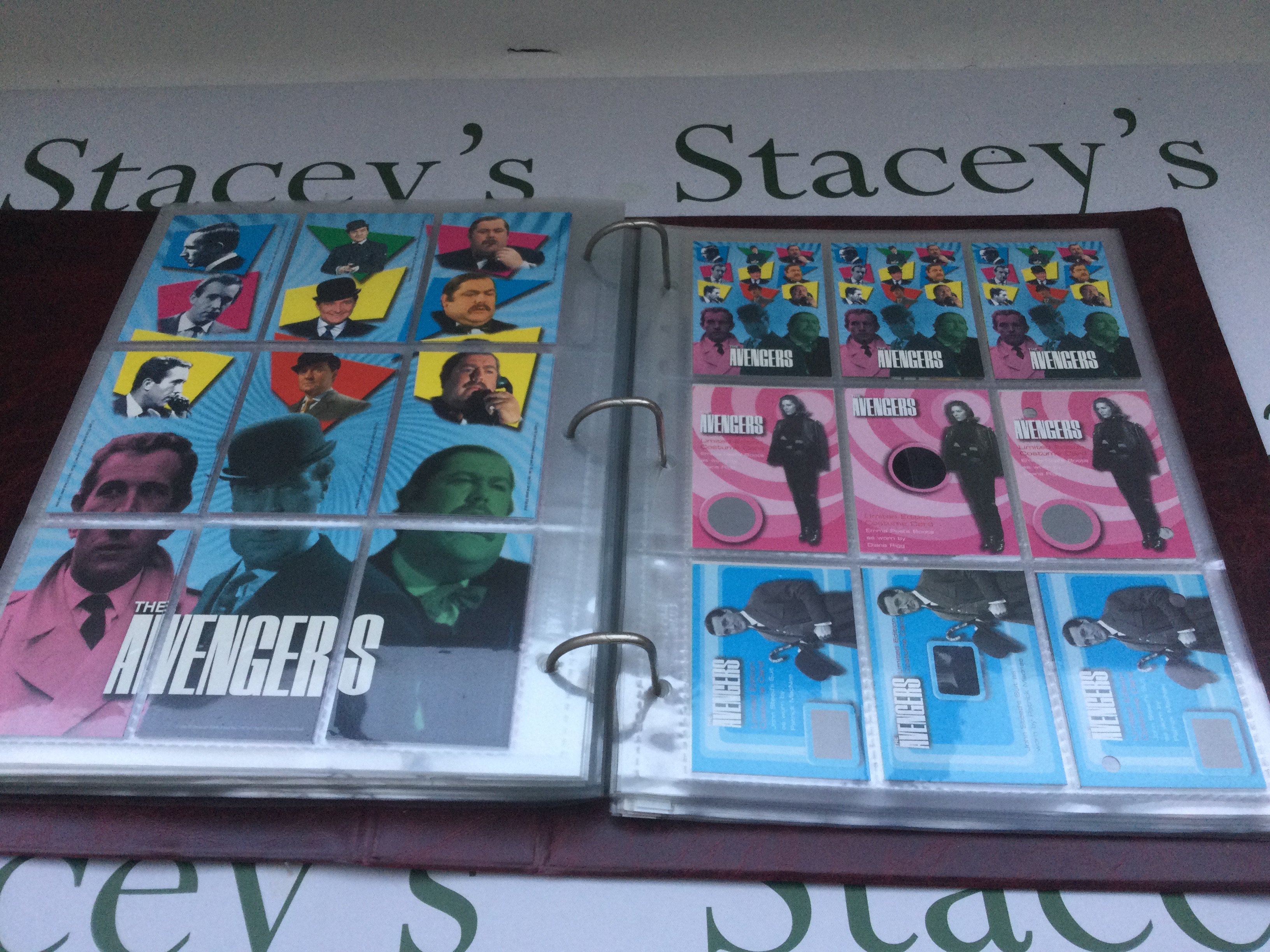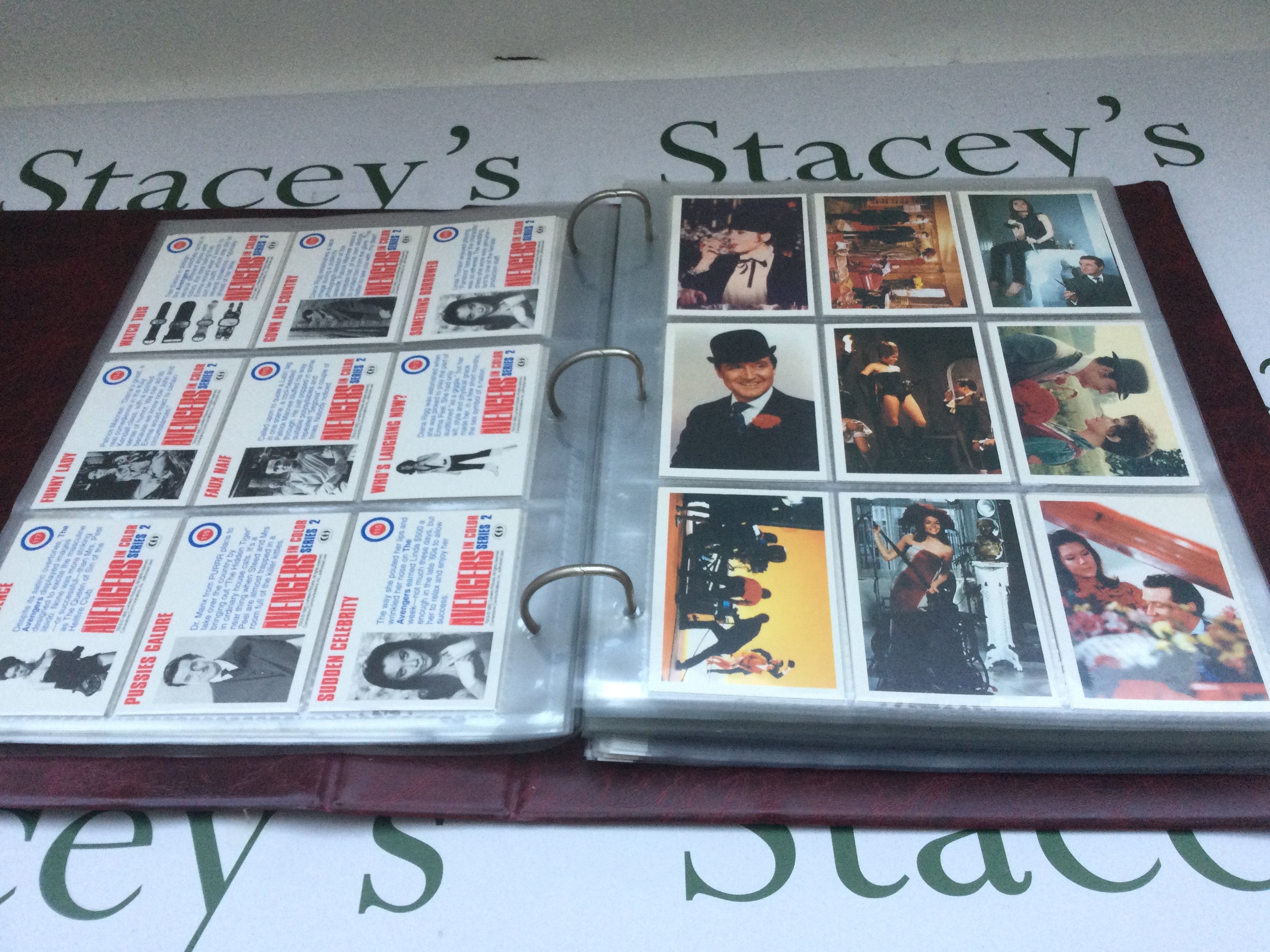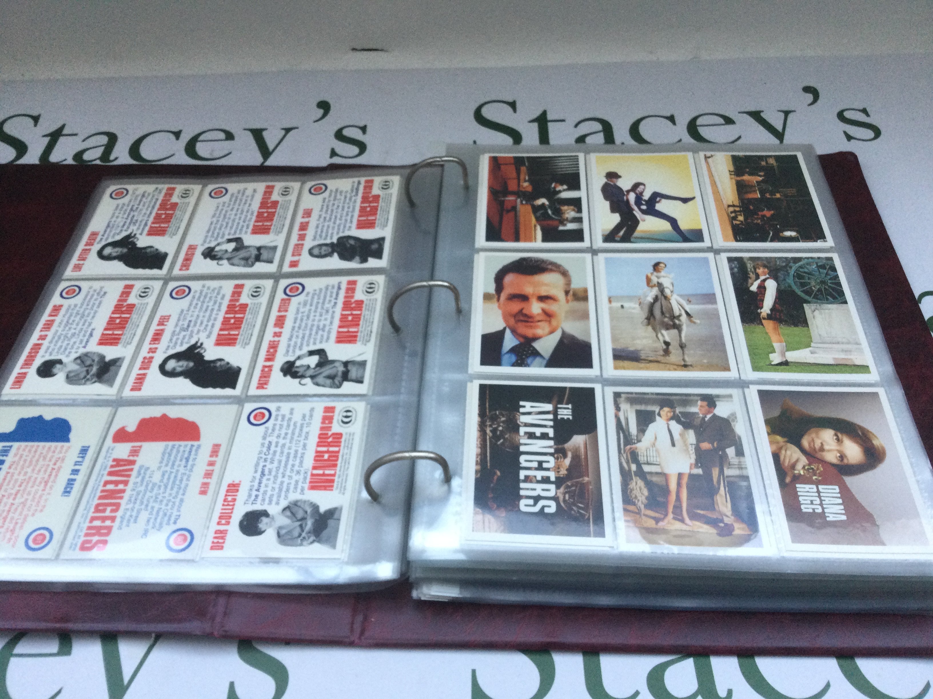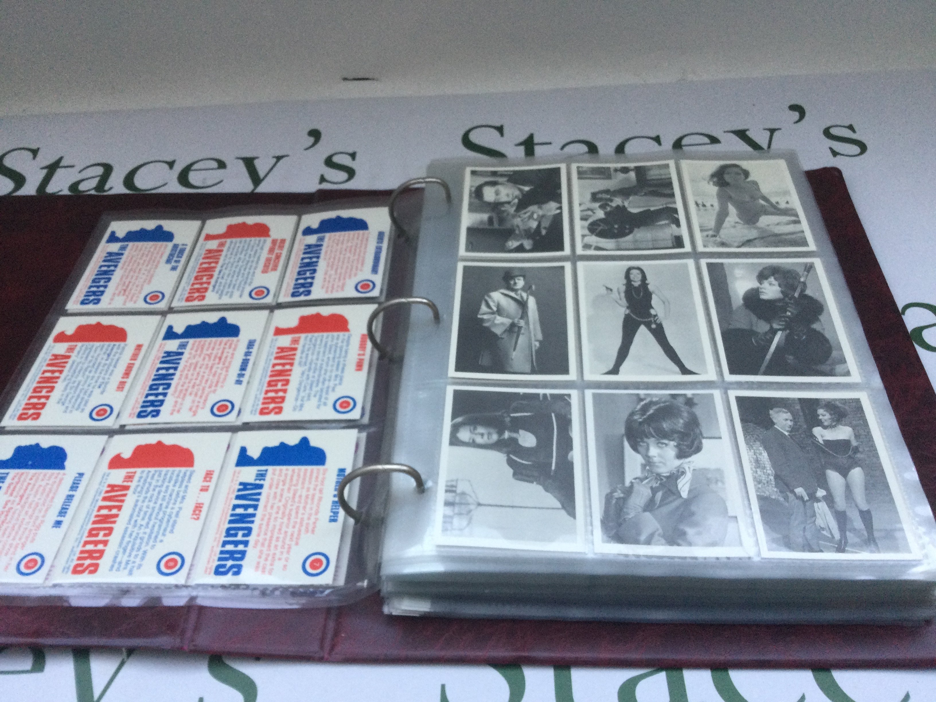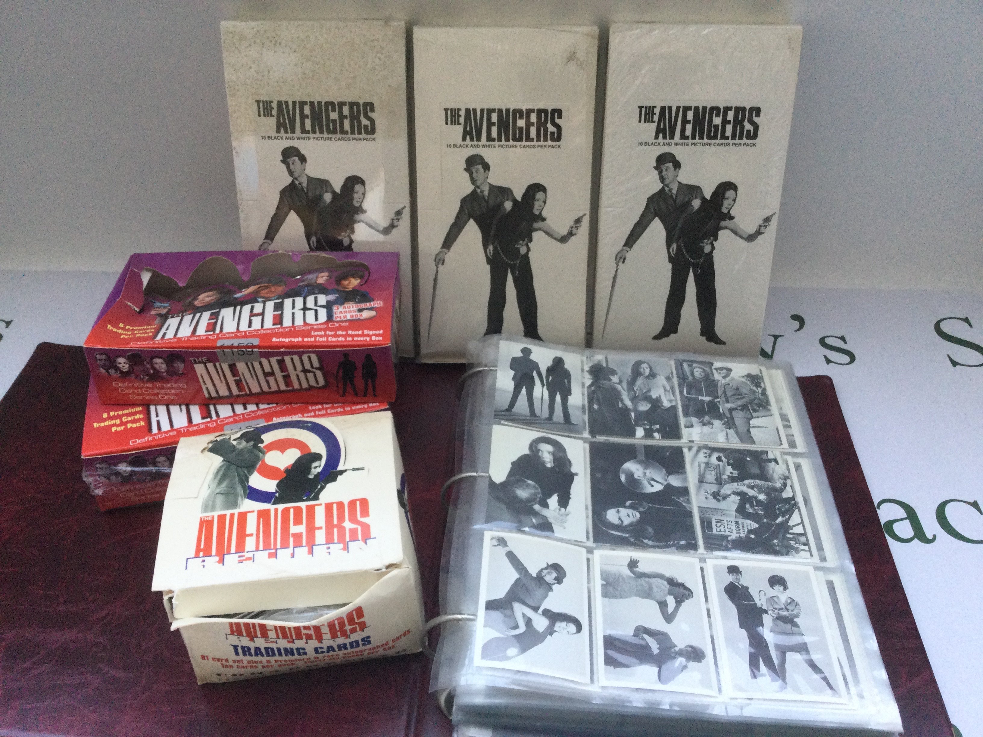 A collection of The Avengers trading cards and posters plus other TV related trading cards.