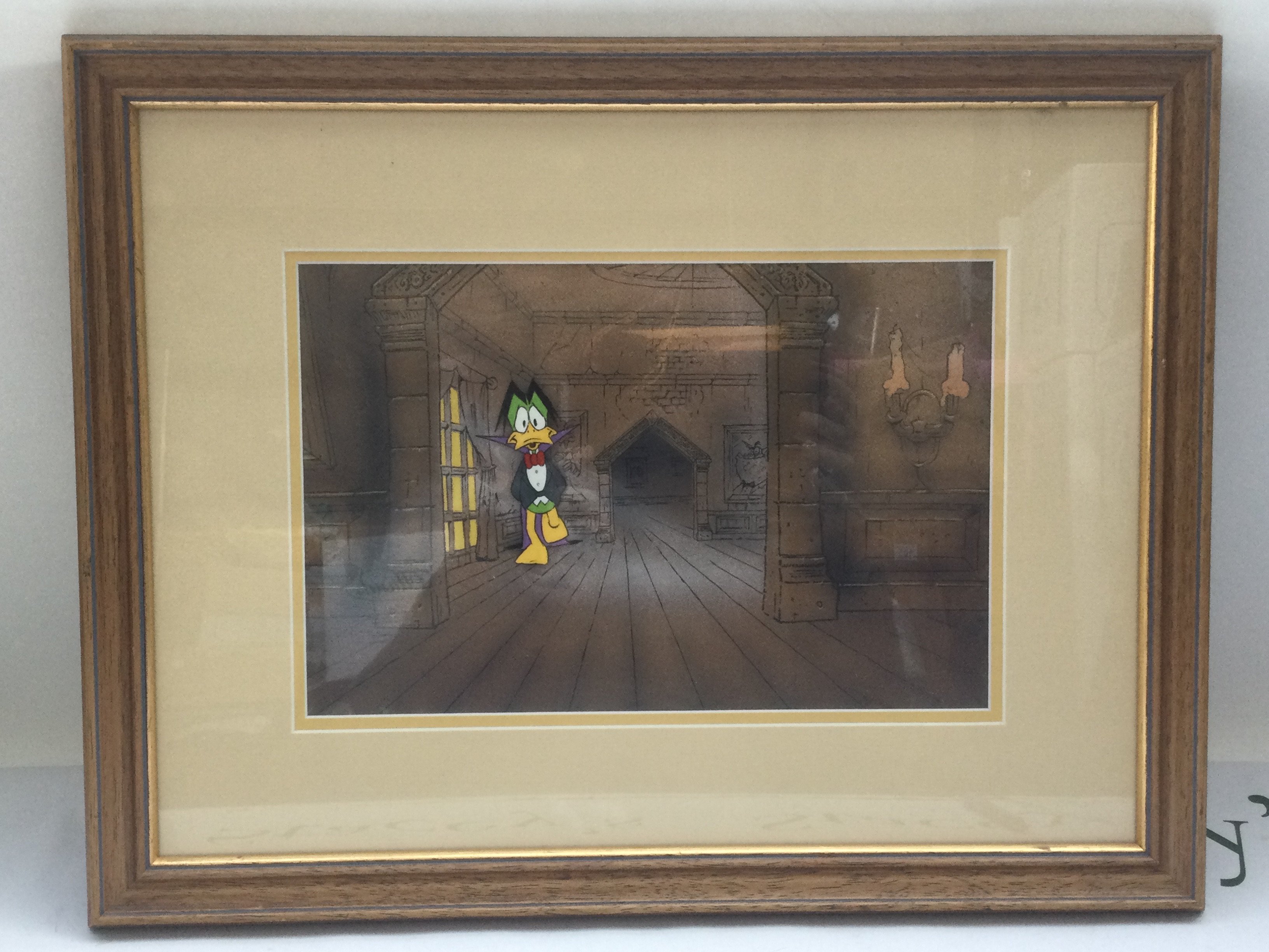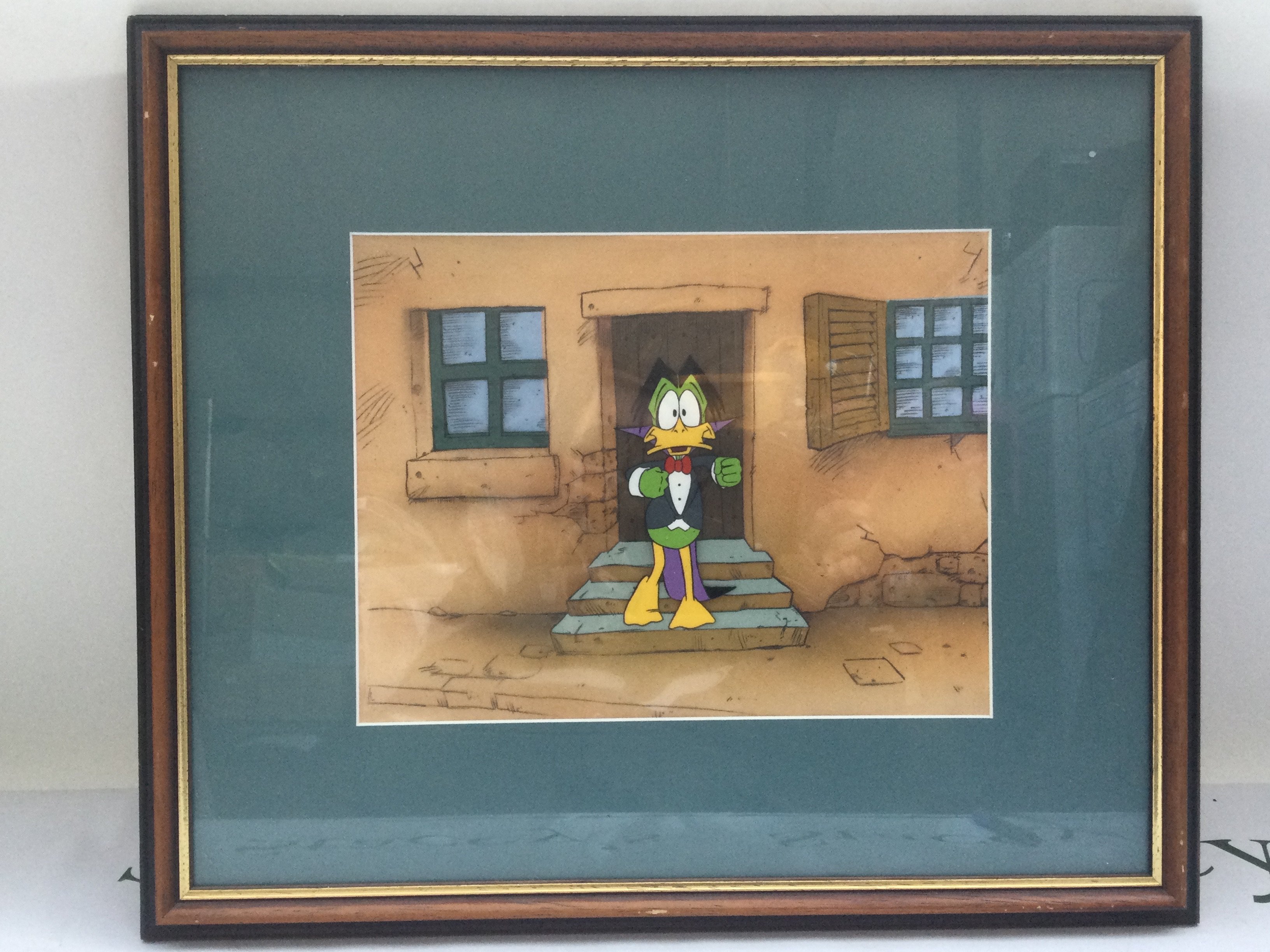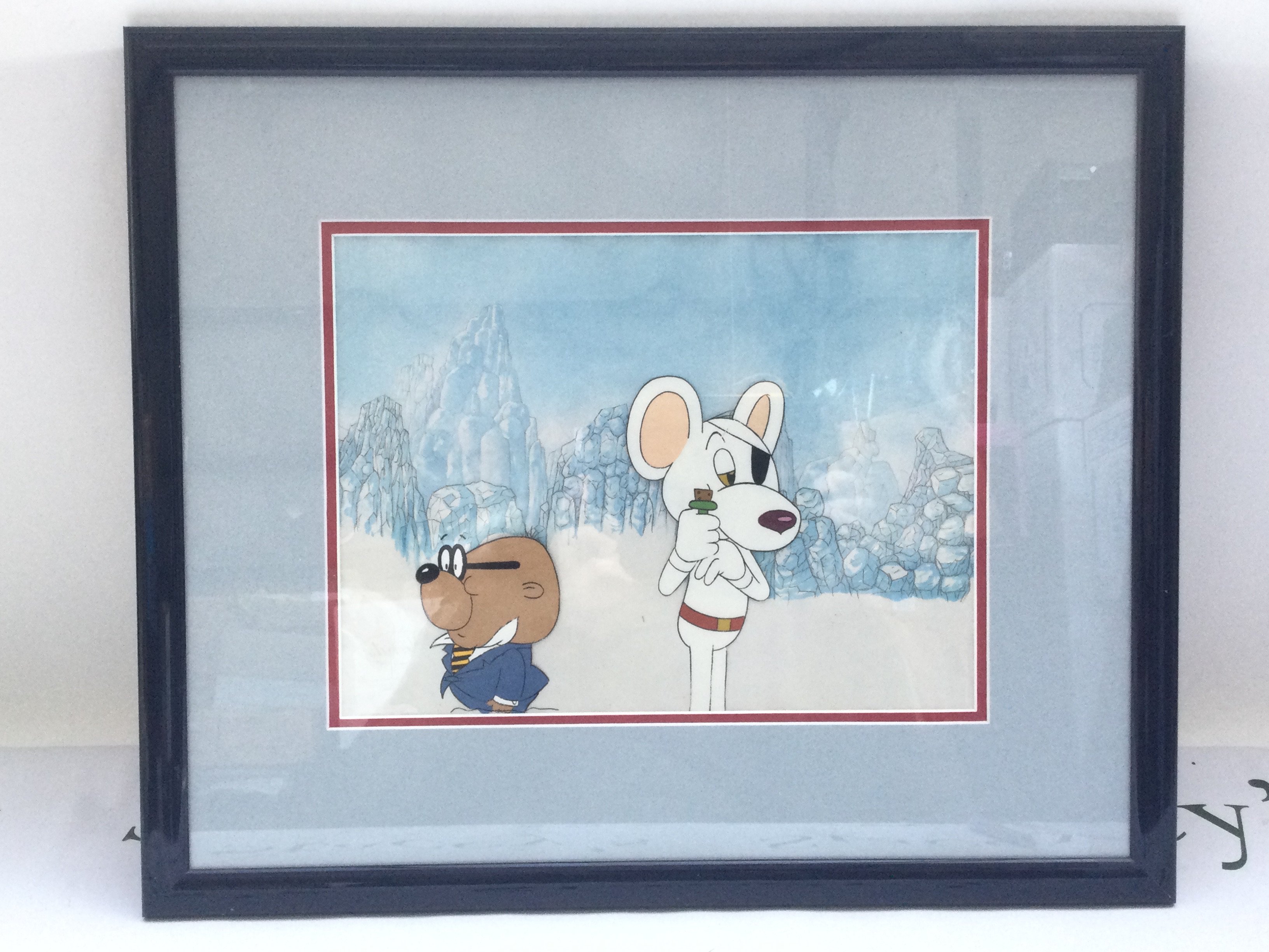 Four framed and glazed animation serigraph cels of Dangermouse and Count Duckula, largest approx 52cm x 41cm including frame.