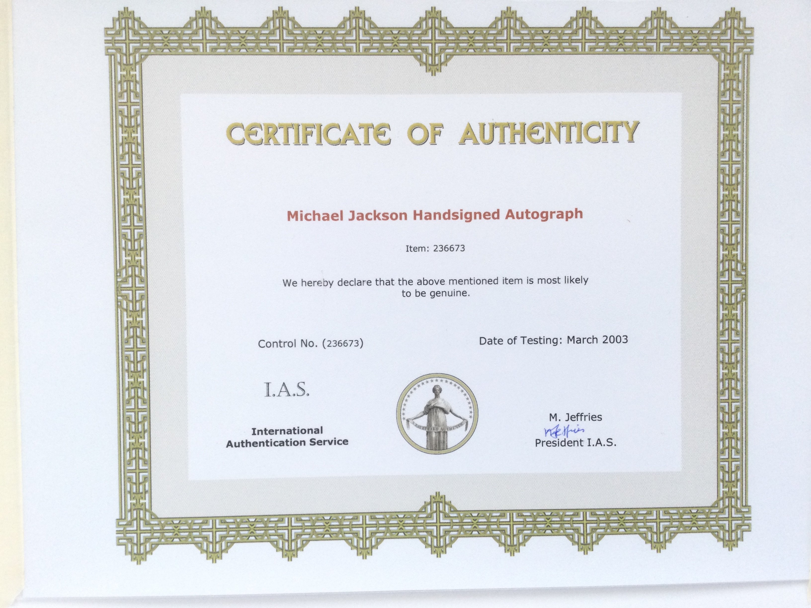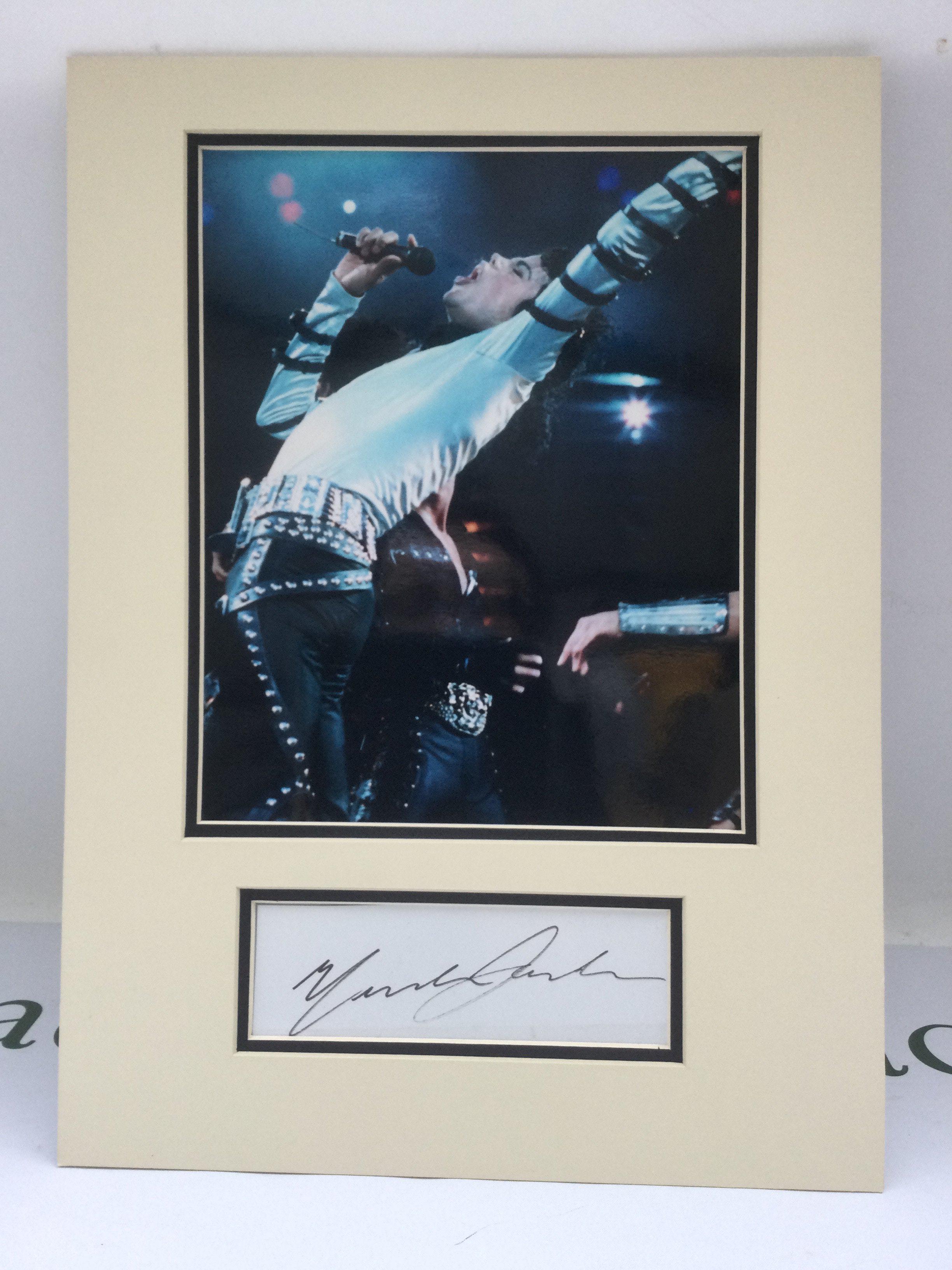 A signed photo display of Michael Jackson with COA. Please note that we are not experts in this field and can offer no guarantees that these signatures are genuine and will not be held responsible should they prove otherwise.