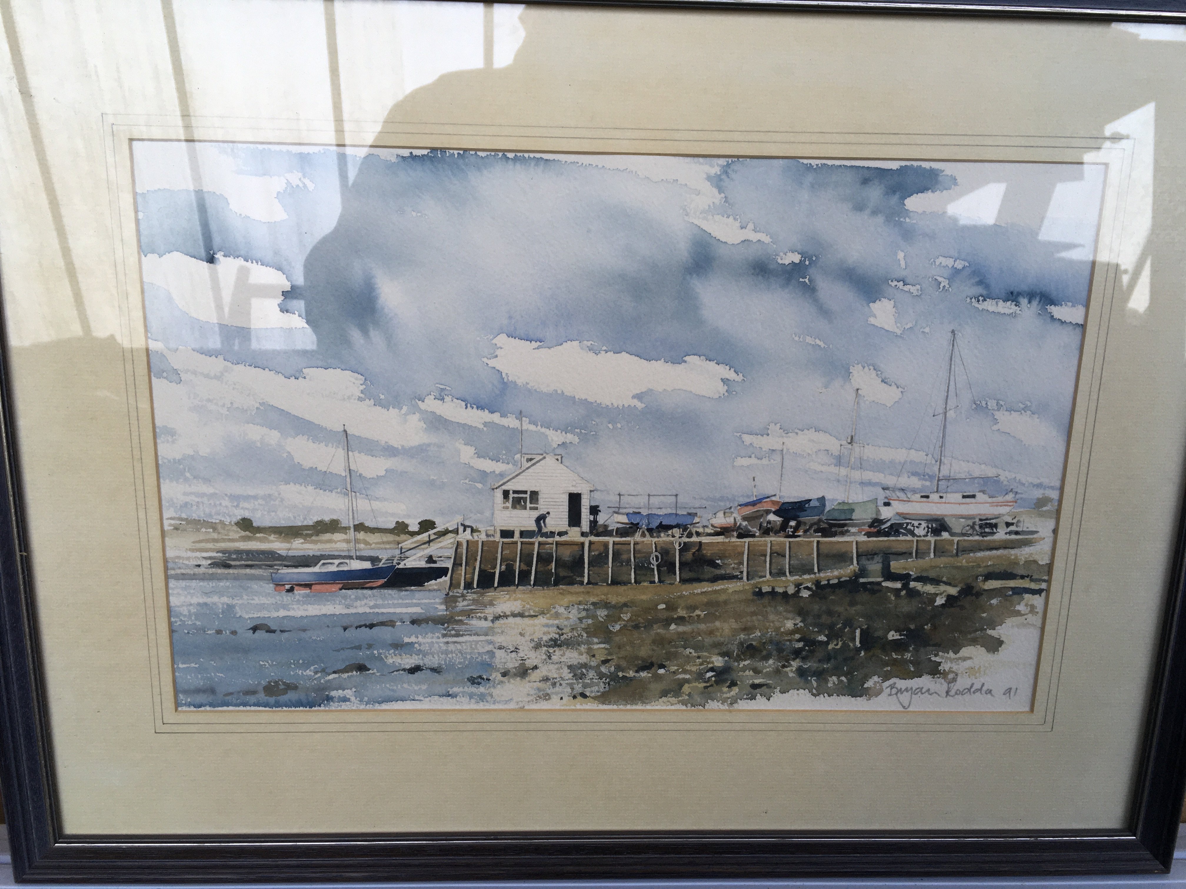 A "Salctcotte yacht club heybridge" watercolour by Bryan Rodda. Approx size 46x62cm.