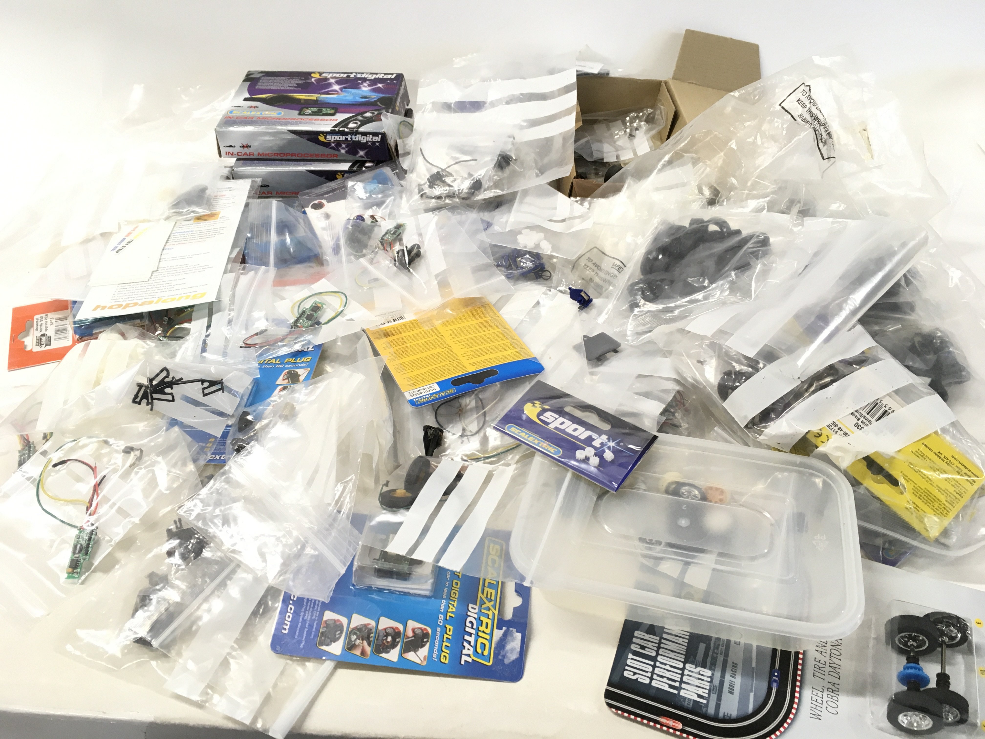 A large collection of spare parts and accessories for Scalextric cars. No reserve