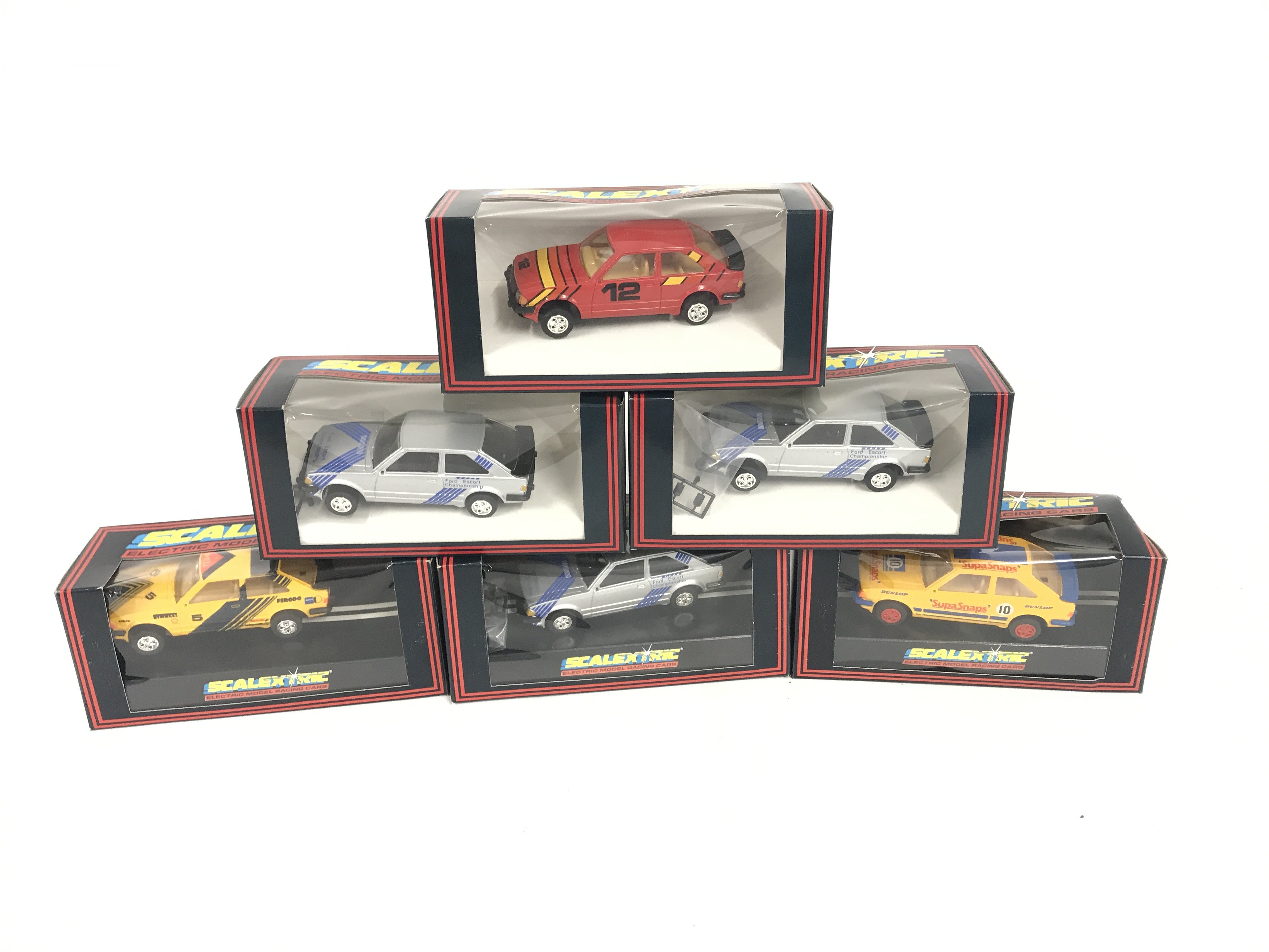 6 boxed Scalextric cars. All Ford escorts with some various decals. No reserve.