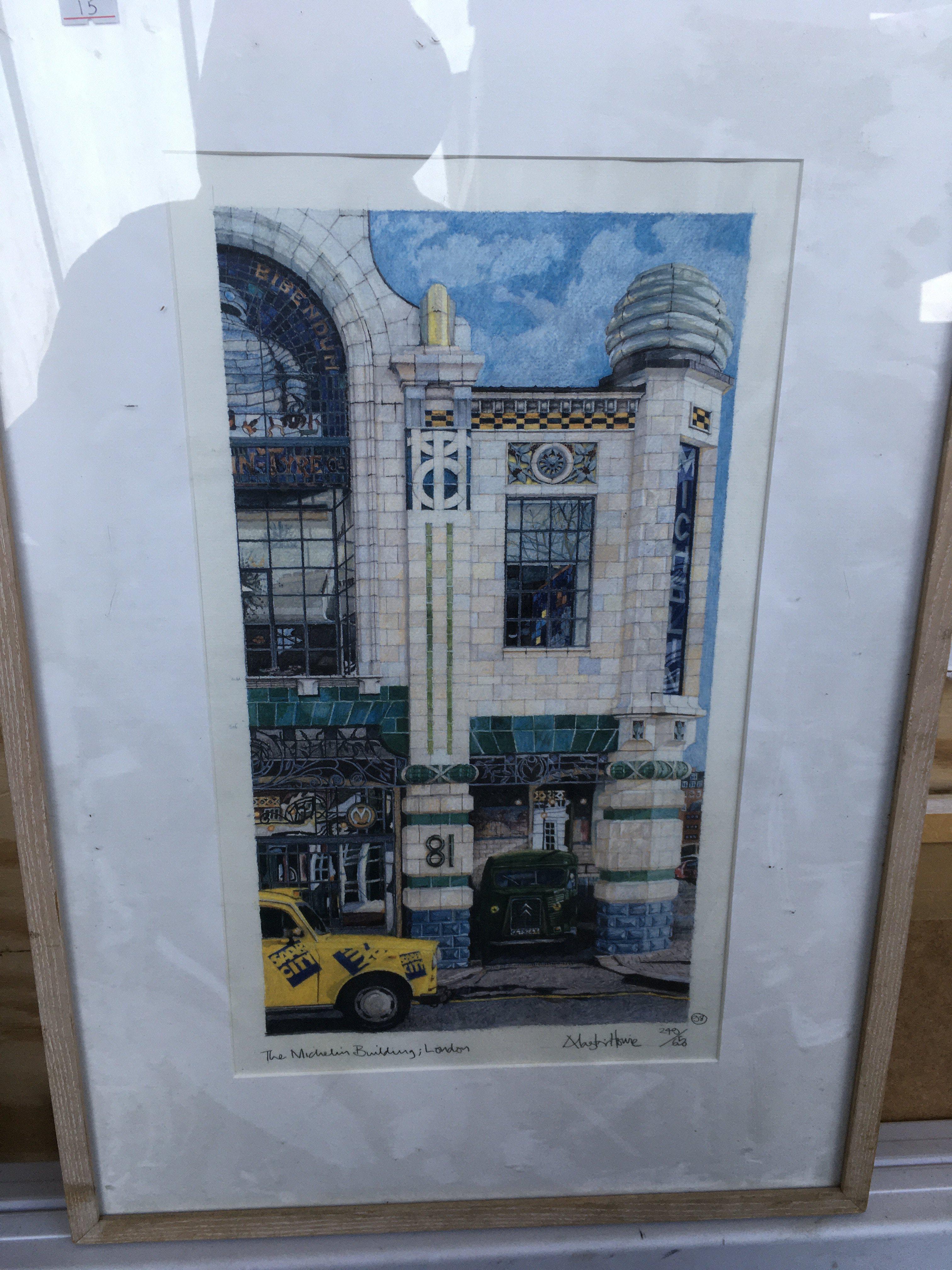 A painting of "the michelin building, london". Approx size 43x63cm.