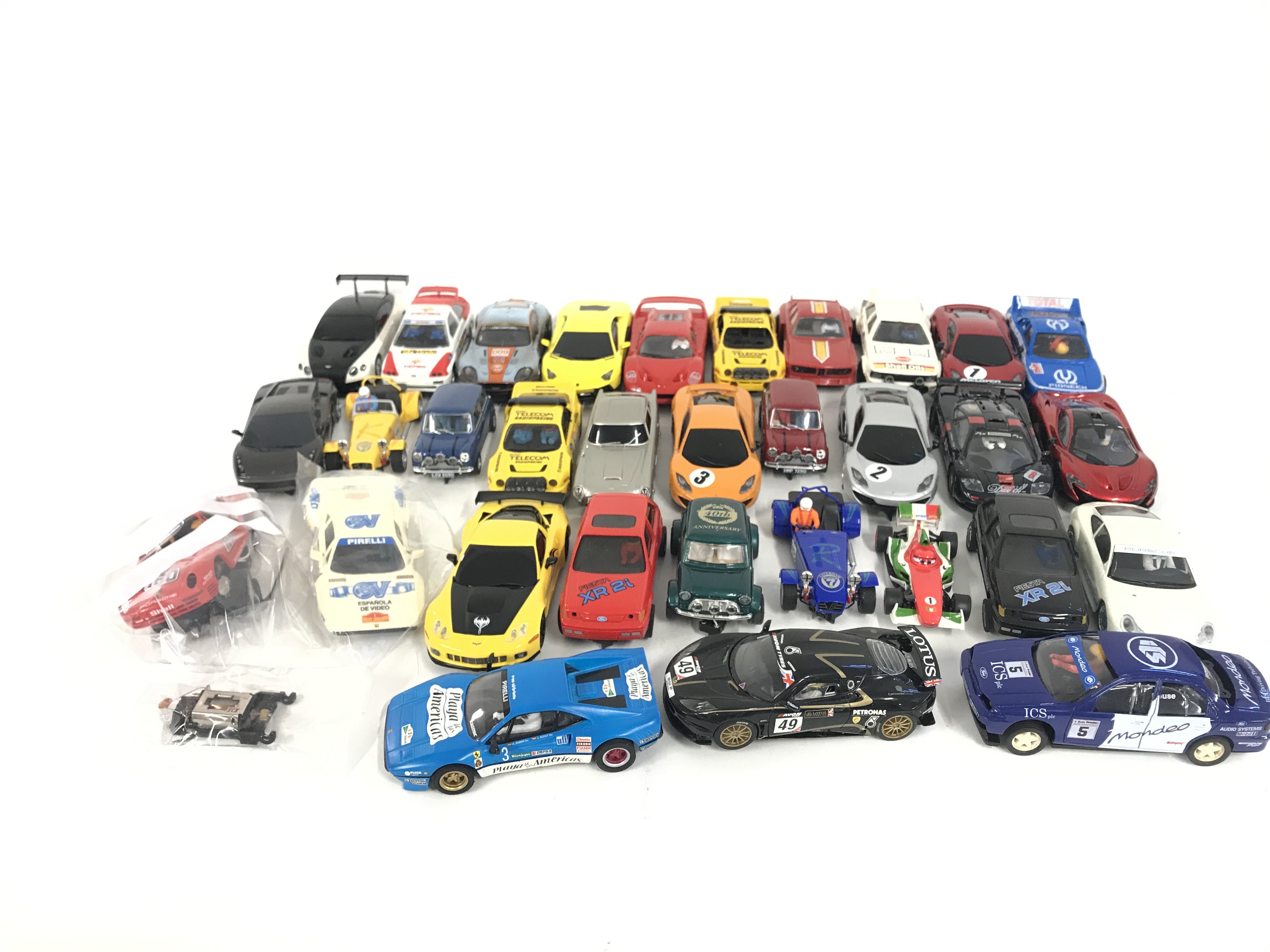 A box containing approximately 30 Scalextric cars. Plus some extra parts. No reserve.