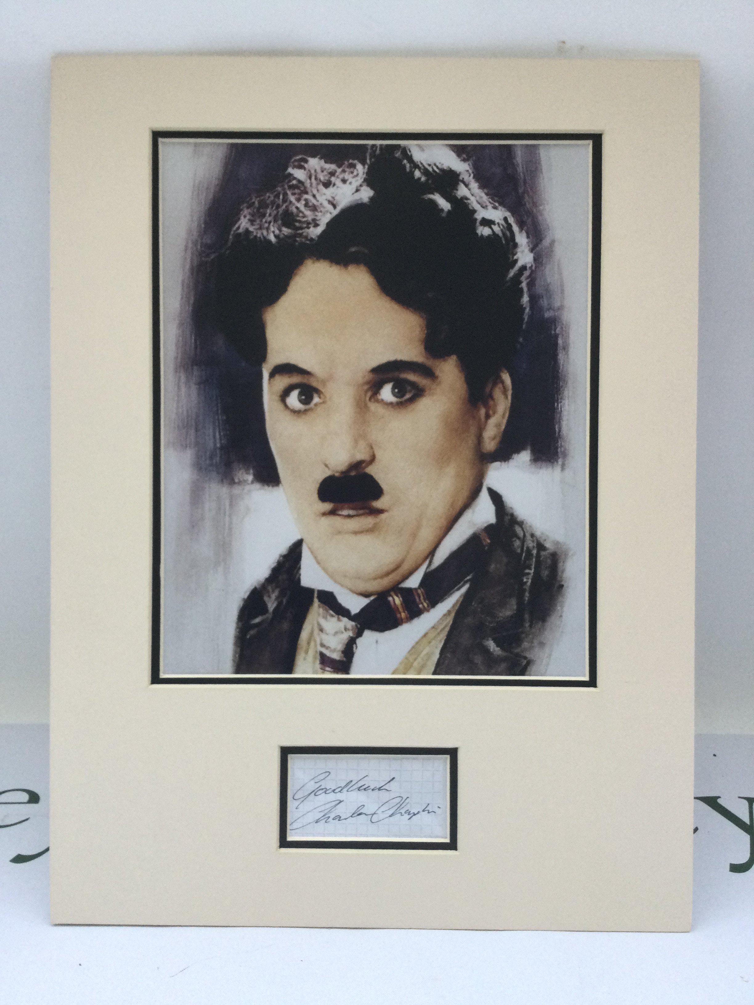 A framed and signed photo display of Charlie Chaplin, approx 30cm x 40cm. Comes with COA. Please note that we are not experts in this field and can offer no guarantees that these signatures are genuine and will not be held responsible should they prove otherwise.