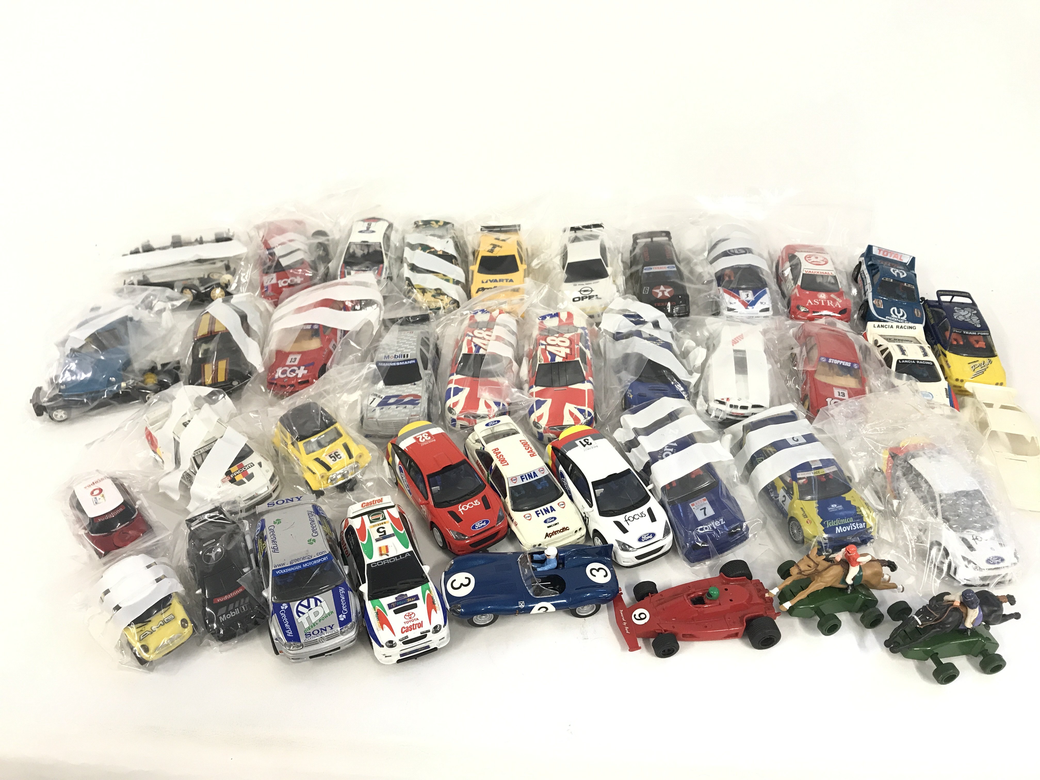 A collection of approximately 30 Scalextric cars. Plus some accessories and spares. No reserve.