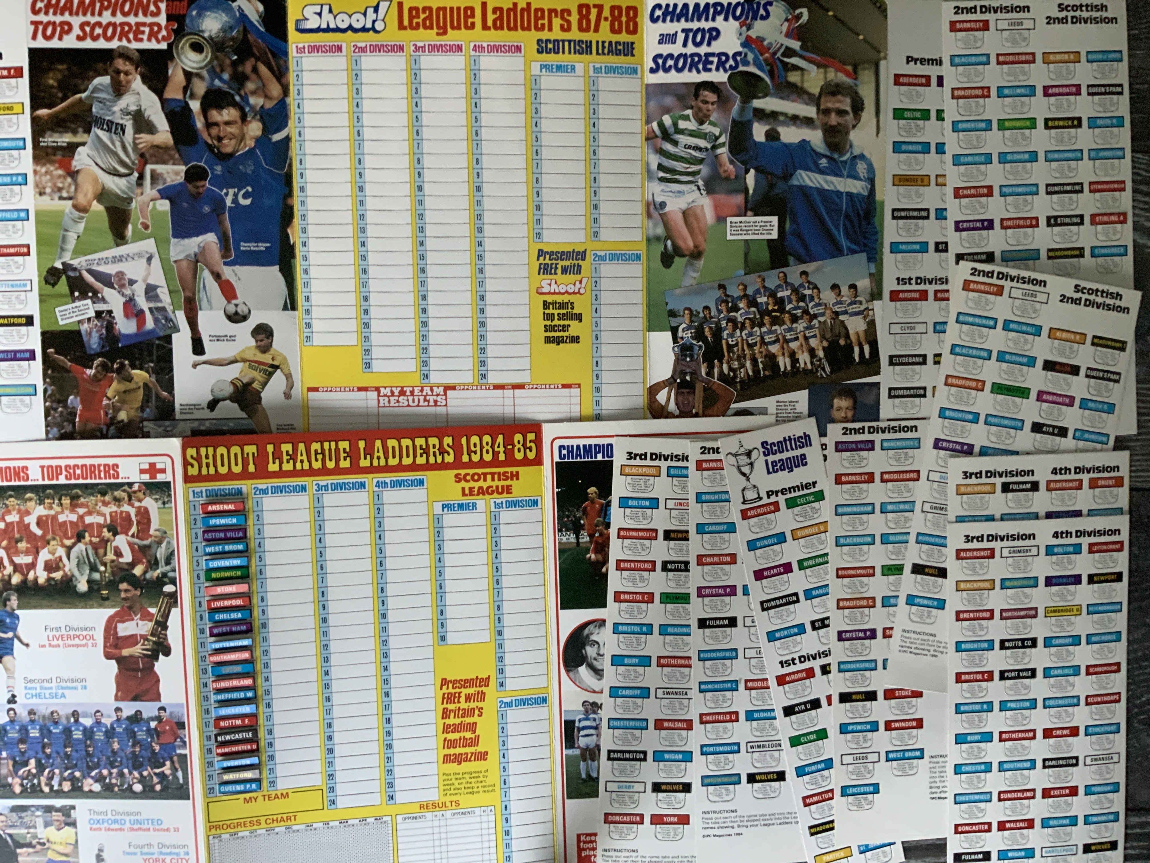 Shoot Football Magazine League Ladders Collection: League ladders for 84/85 86/87 and 87/88 which are all complete plus a Goal magazine wall chart.