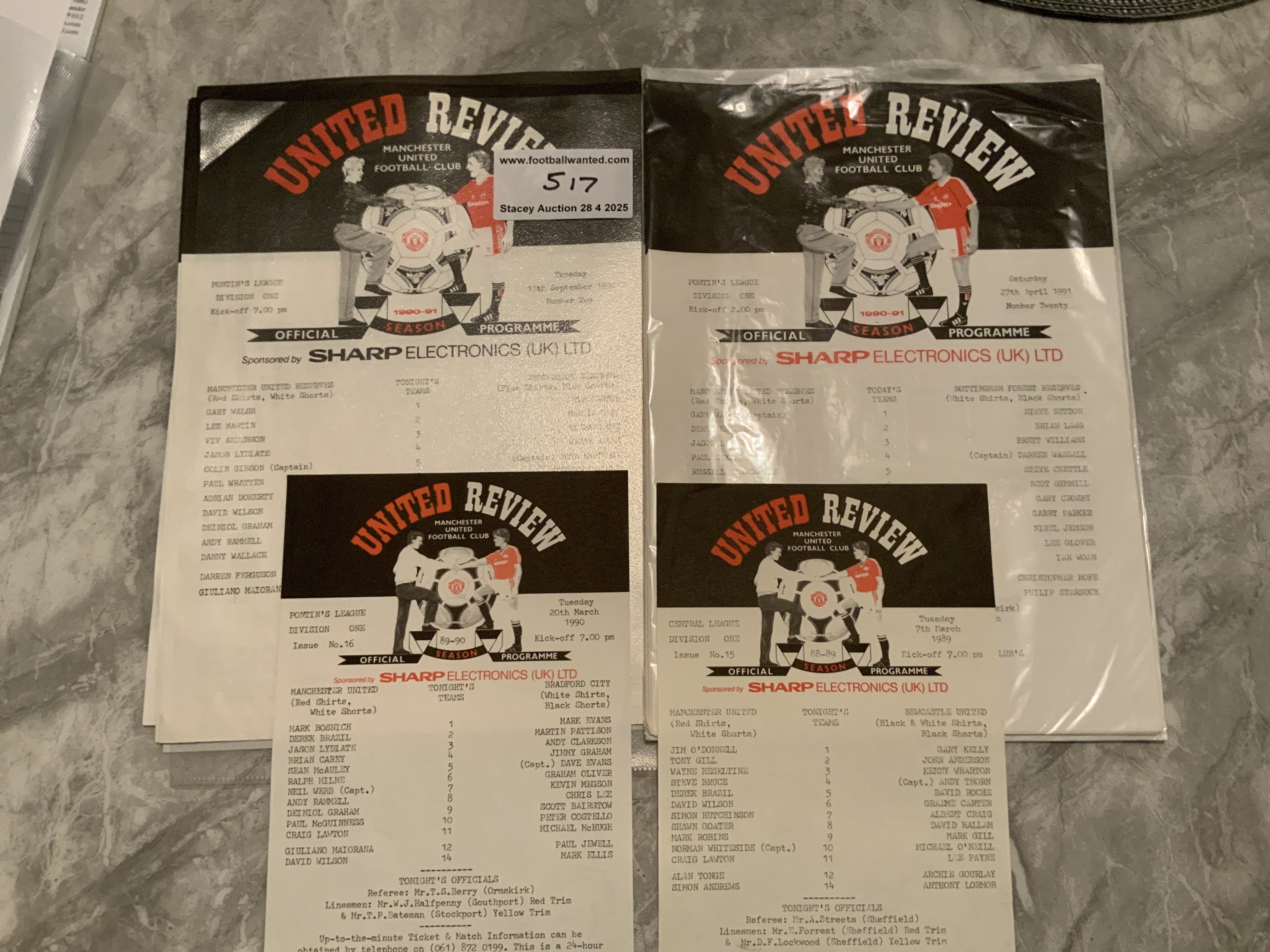 Manchester United Reserves + Youth Football Programmes: 22 single sheets from 90/91 plus a few more from a similar era. Mint with no writing including Lancs Cup. (27)