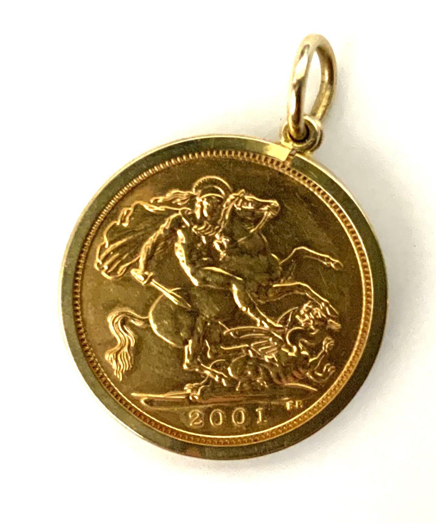 2001 Elizabeth II Half sovereign, with a 9ct gold coin mount. (4.63g)