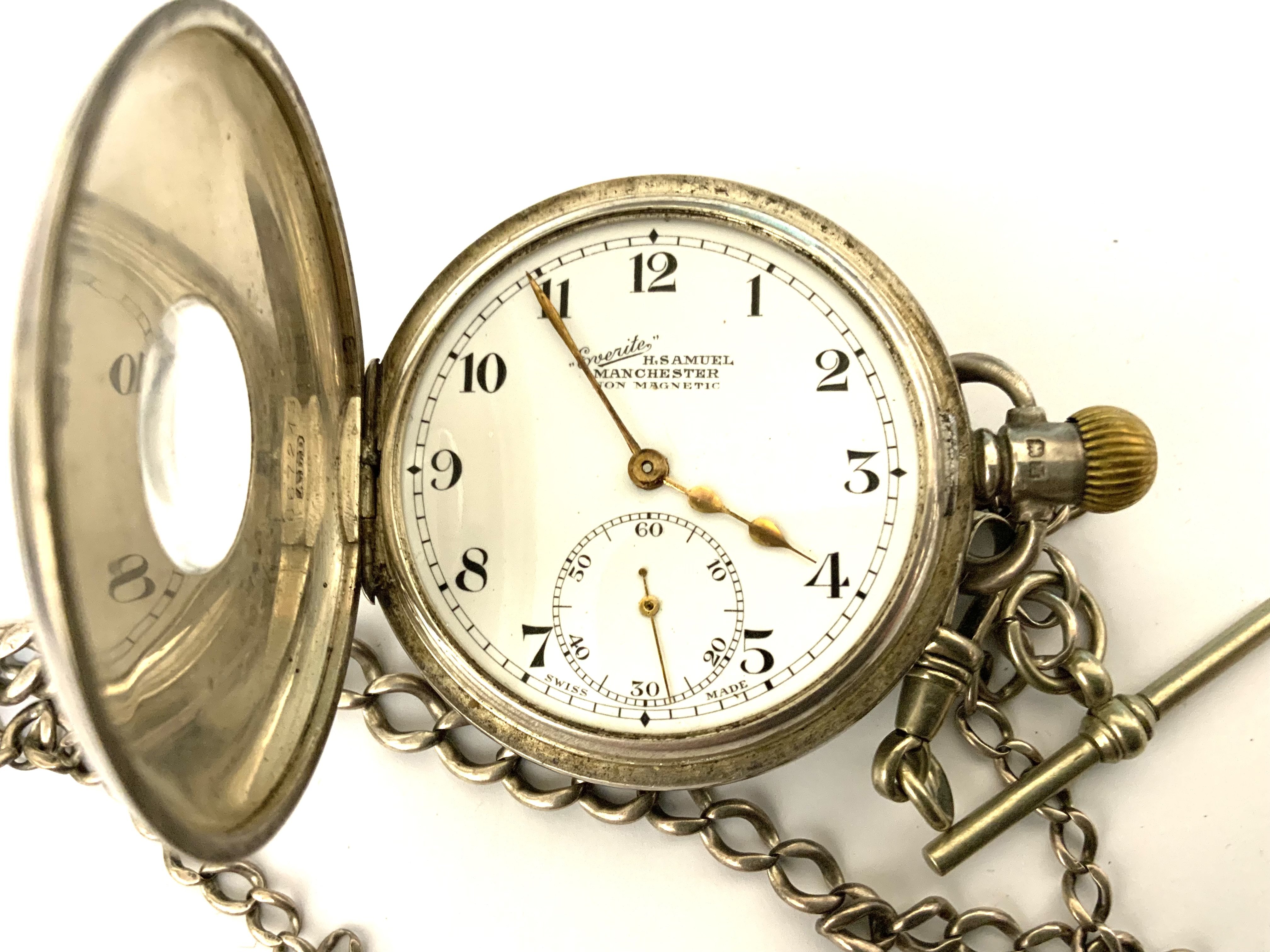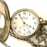A hallmarked silver half hunter pocket watch with blue enamel chapter ring, Not seen working. (A)