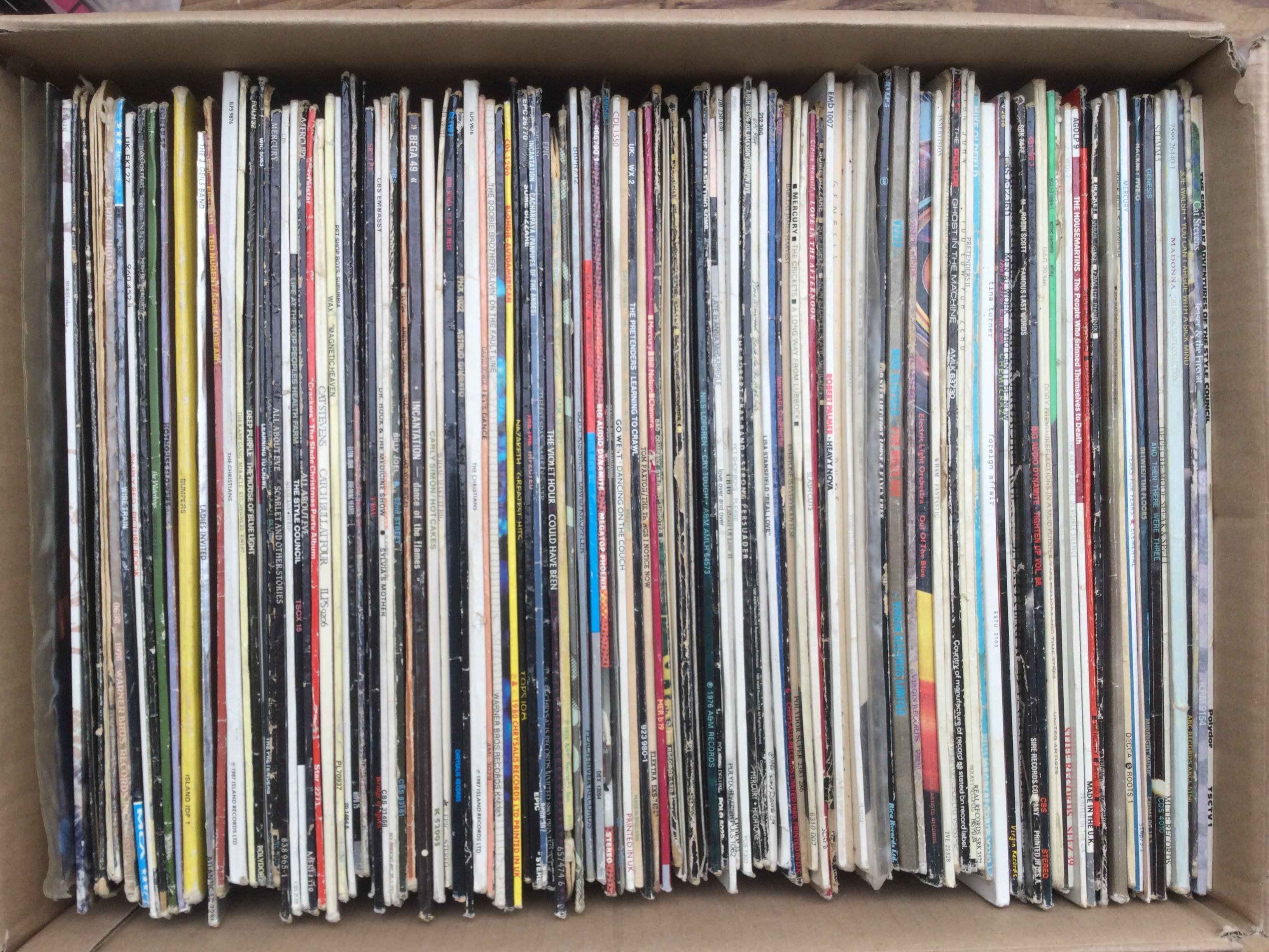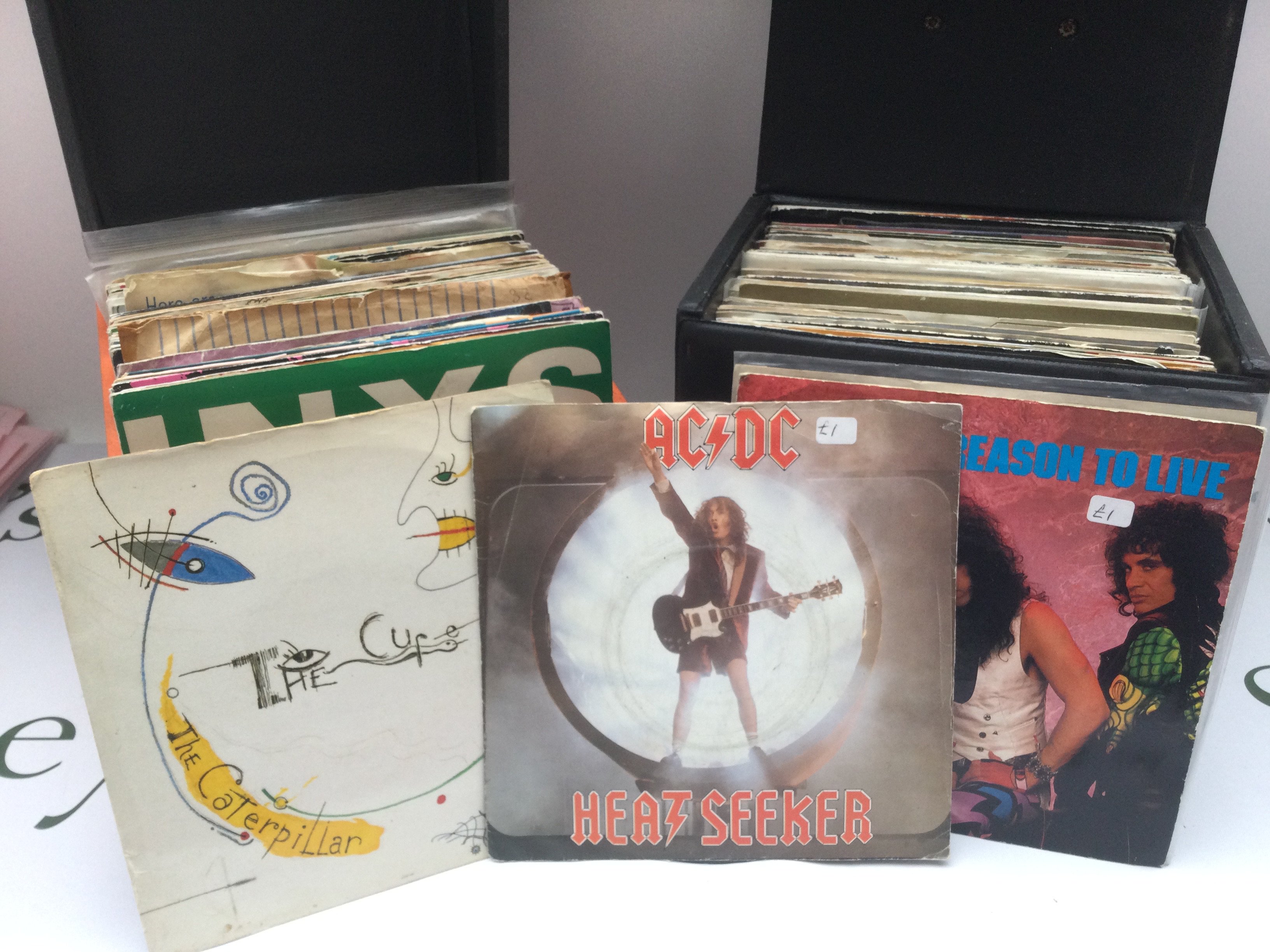 A box of LPs and 12" singles plus two record cases of 7" singles by various artists including INXS, Prince, Deep Purple, Genesis and many more.