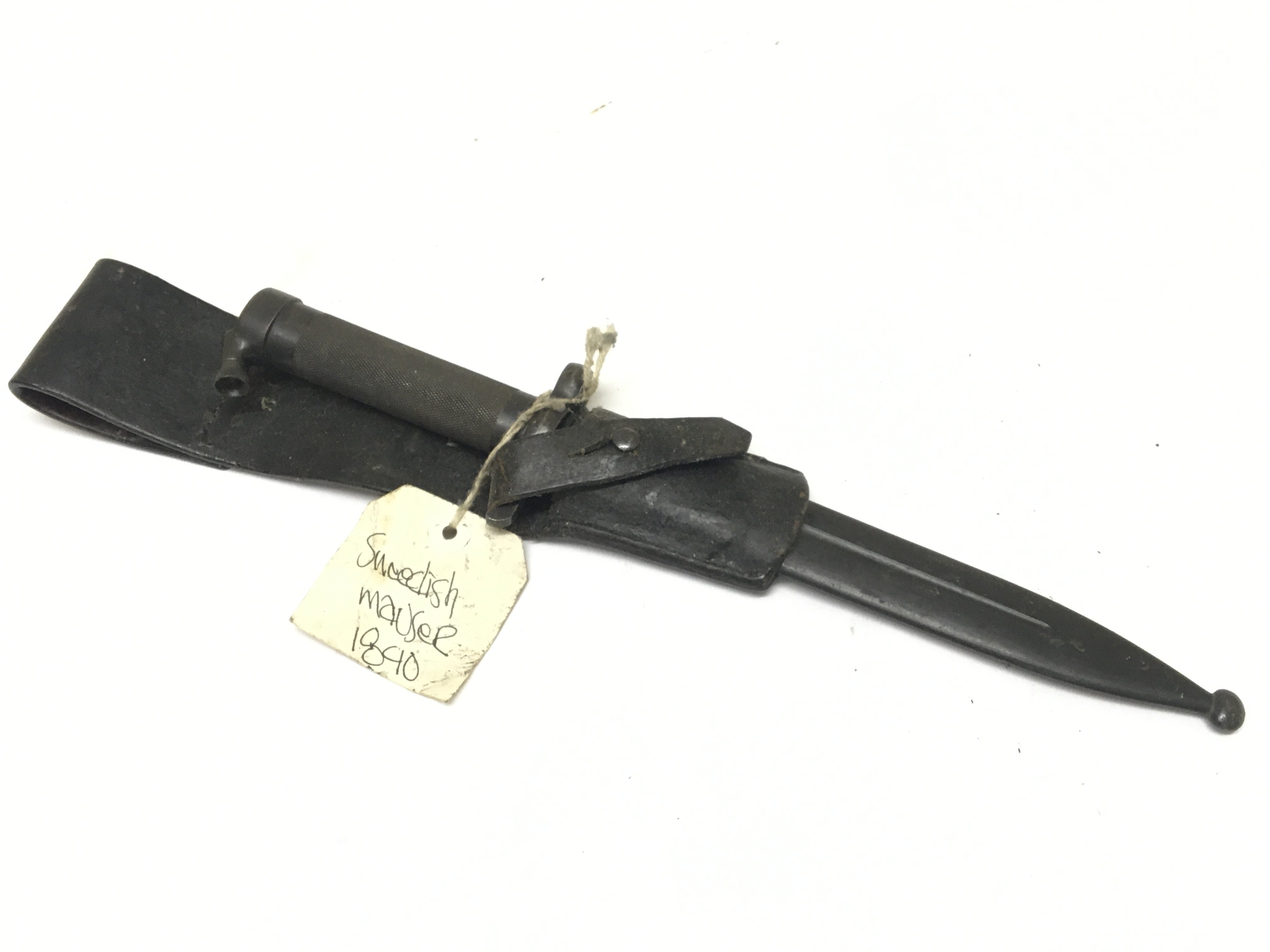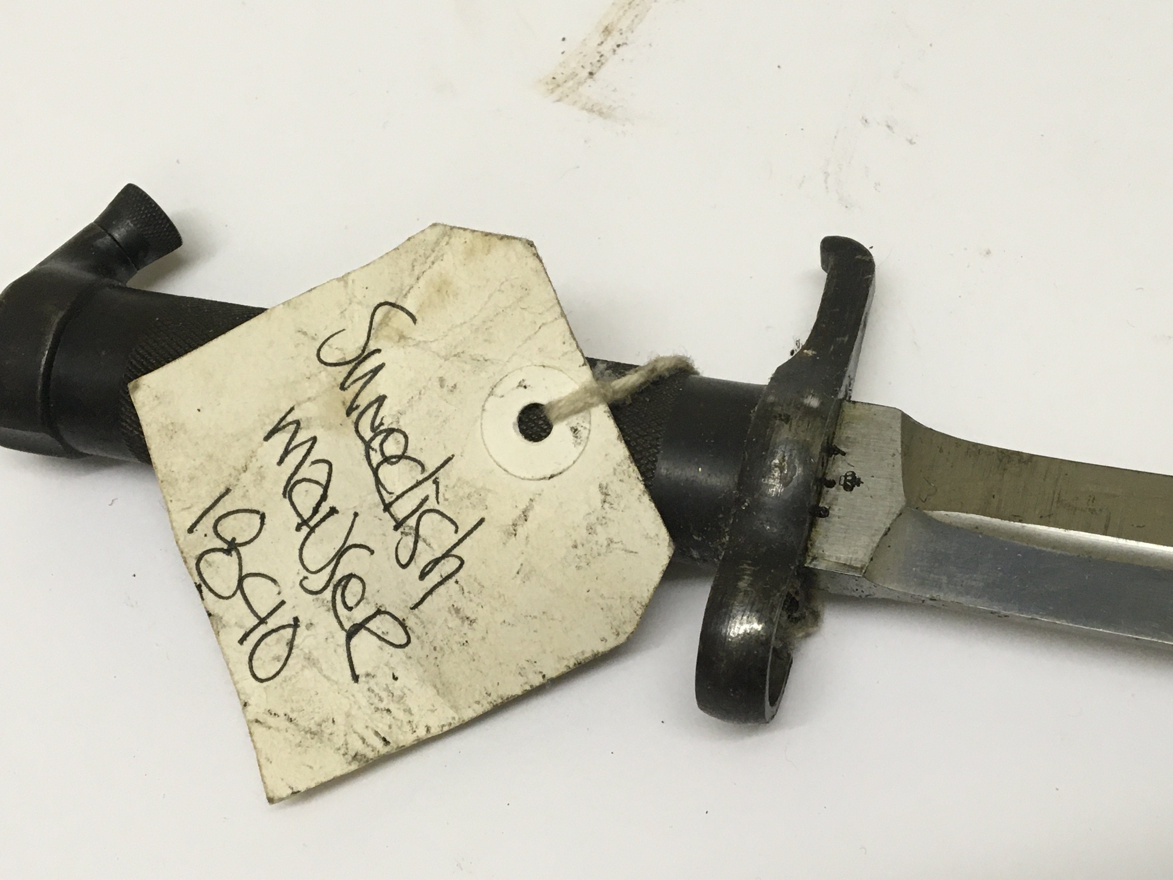 A Swedish M1896 Mauser Bayonet with scabbard with leather frog.