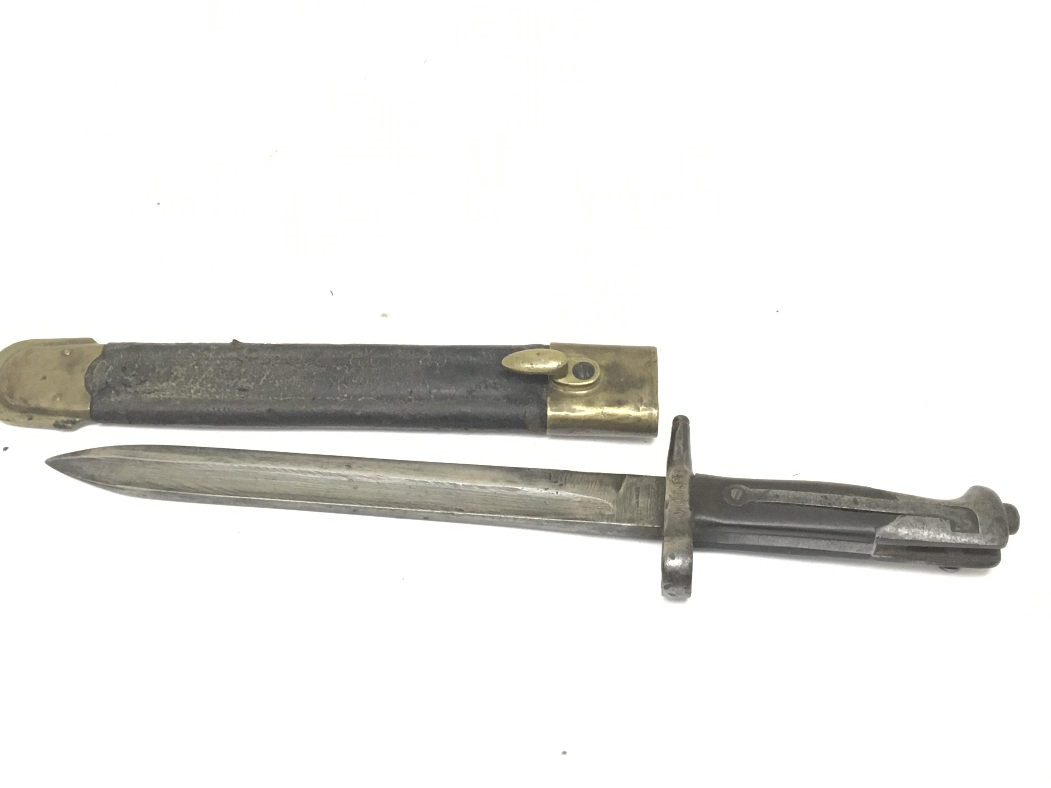 An unusual Italian I world war bayonet possible M.1891 pattern the steel cross guard stamped VU 68737.