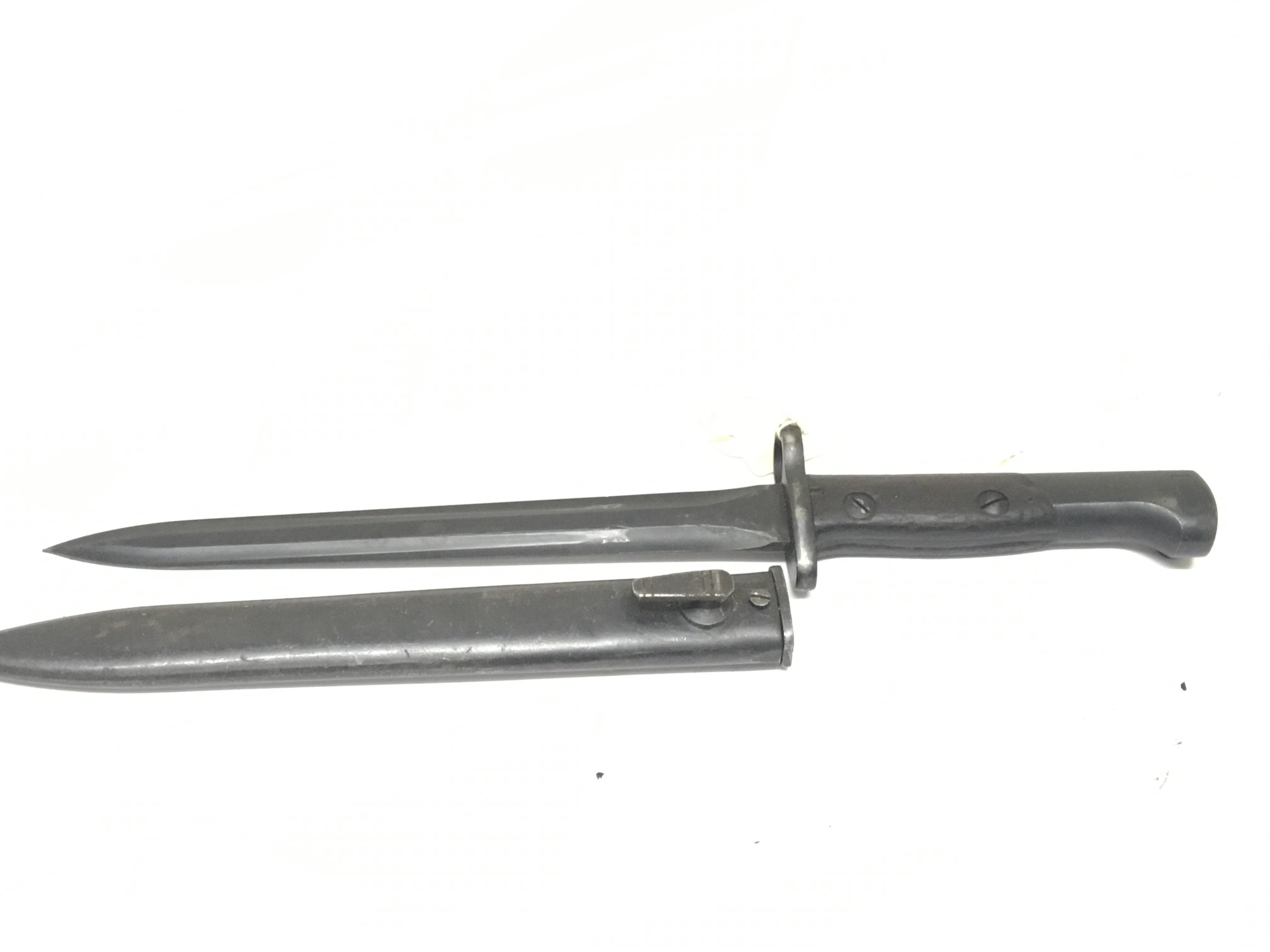 A Mauser K98 German bayonet with wood and steel grip and a slightly unusual blade for the K98 model blade unmarked.