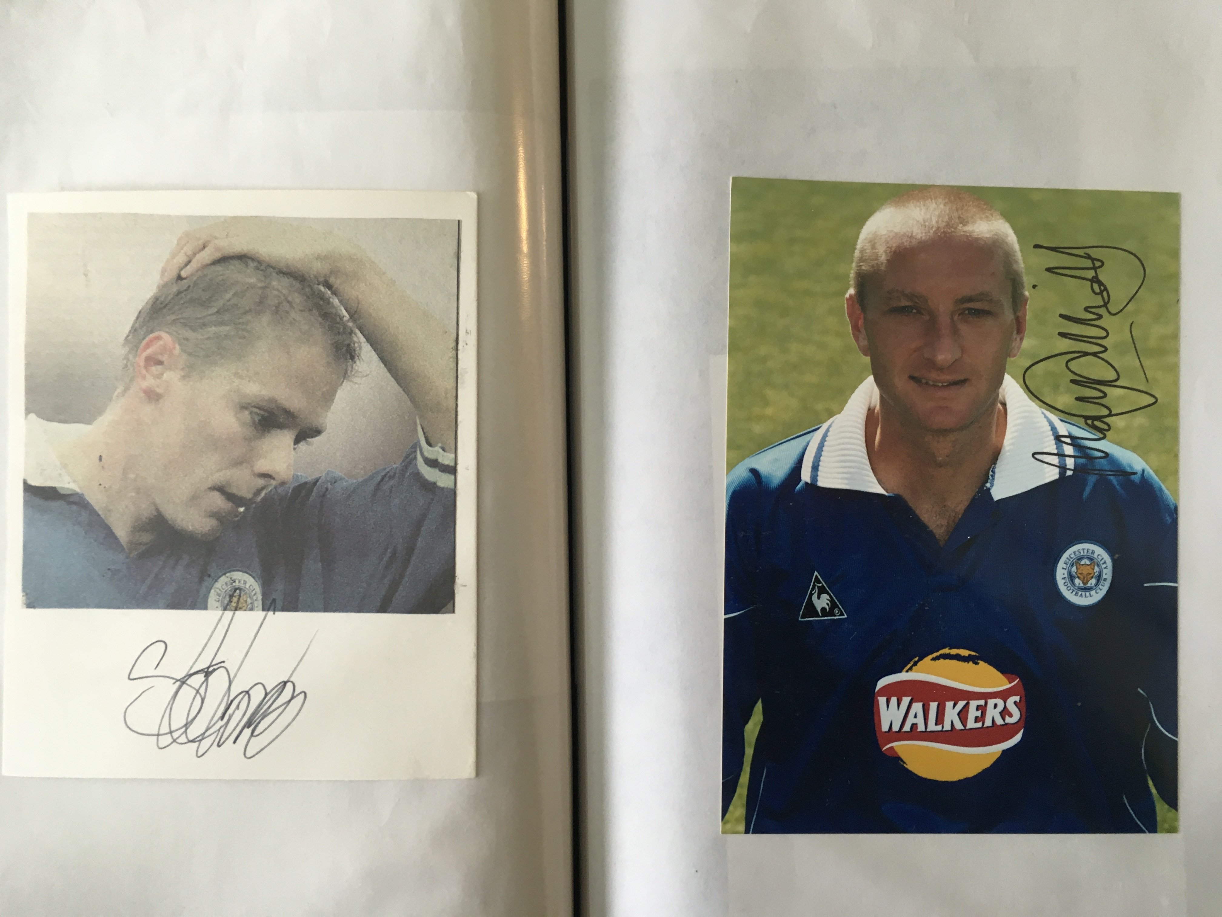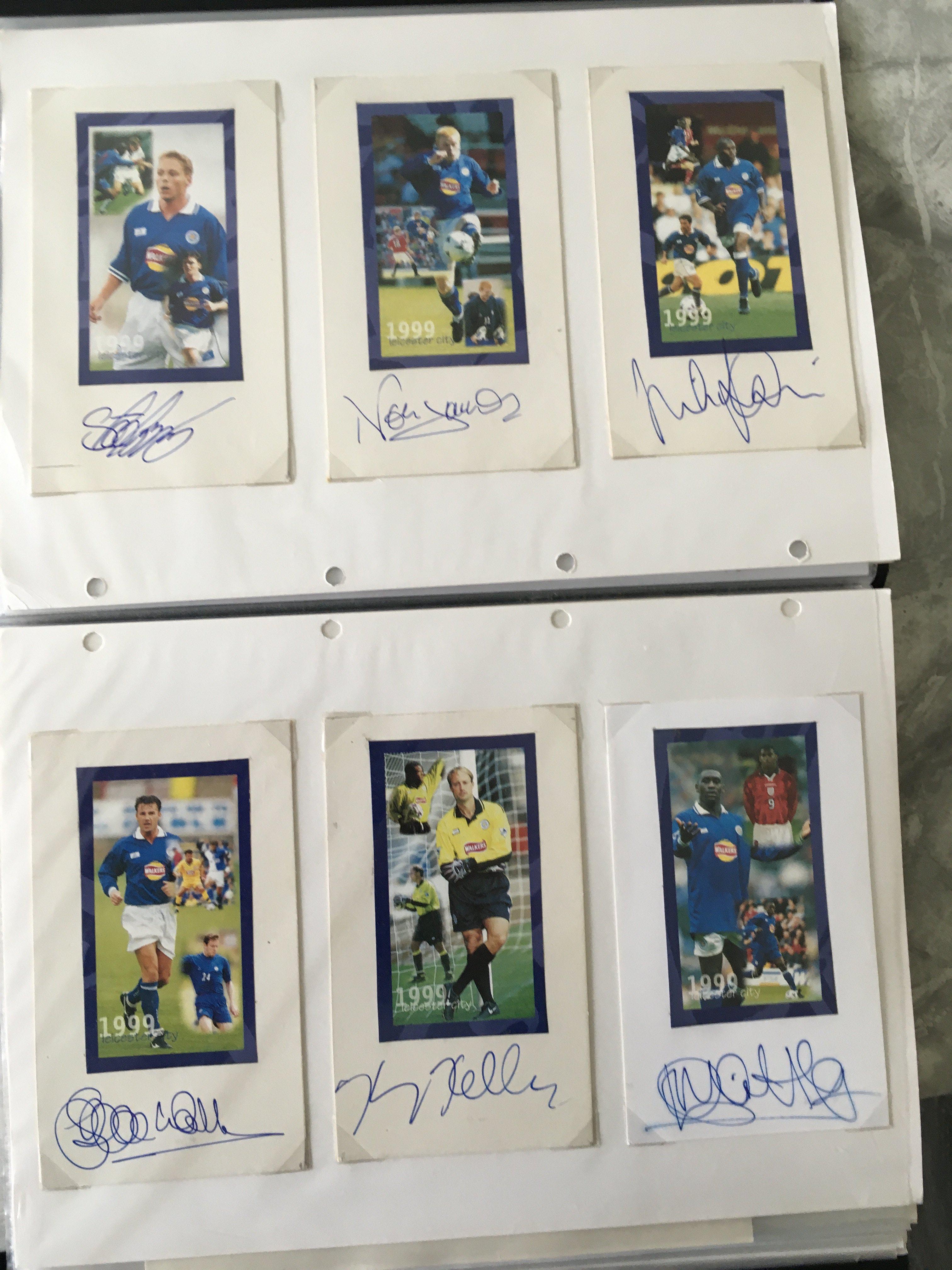Leicester City Football Autographs: Folder containing 65 undedicated signed pictures mainly on magazine pictures of players from the 90s and 2000s. C/W a large poster of the 2000 Worthington Cup final signed by Matt Elliott.