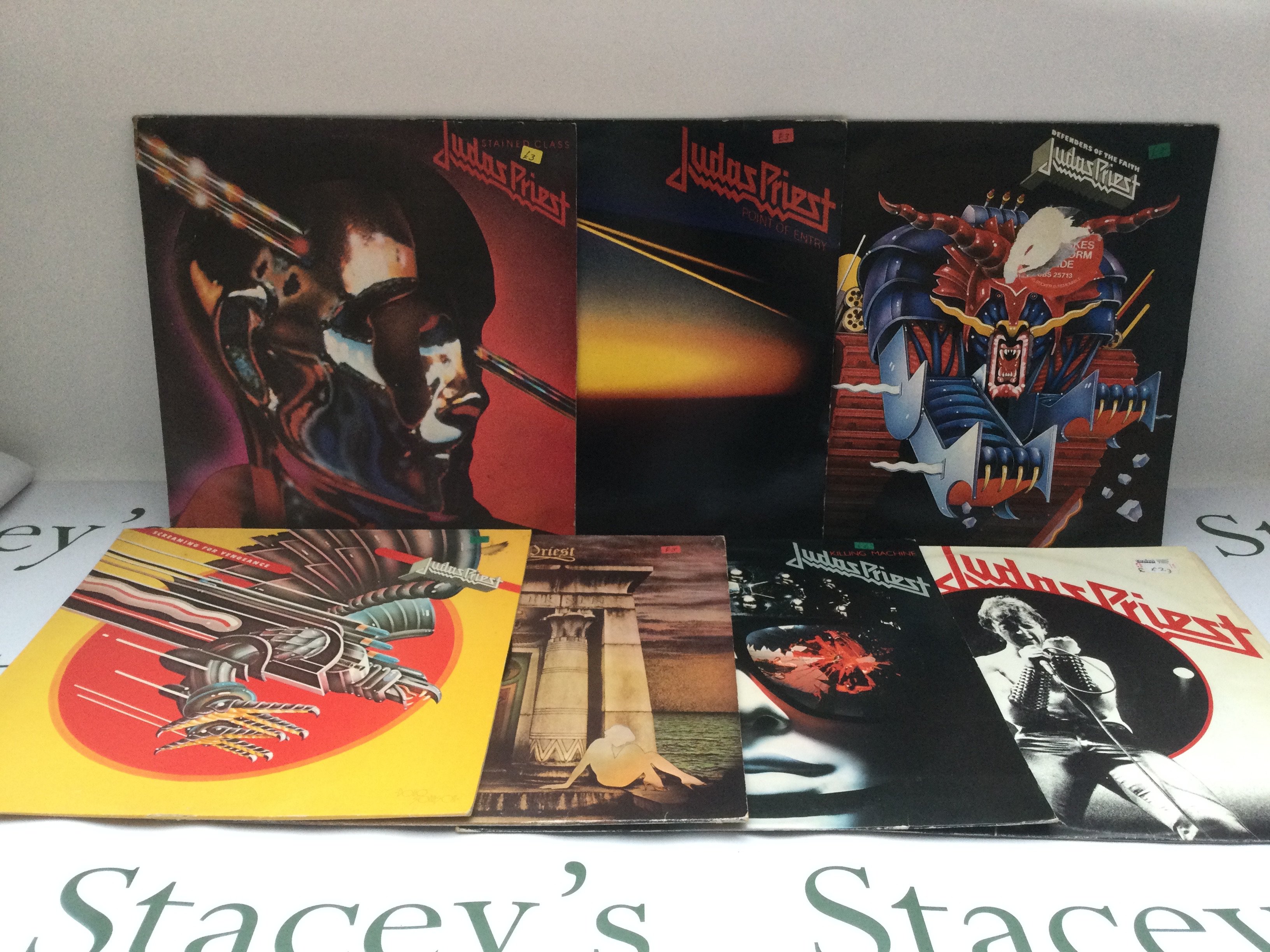 A collection of LPs and 12" singles by Alice Cooper, Motorhead and Judas Priest comprising 'School's Out', 'Ace Of Spades', 'Point Of Entry' and others.