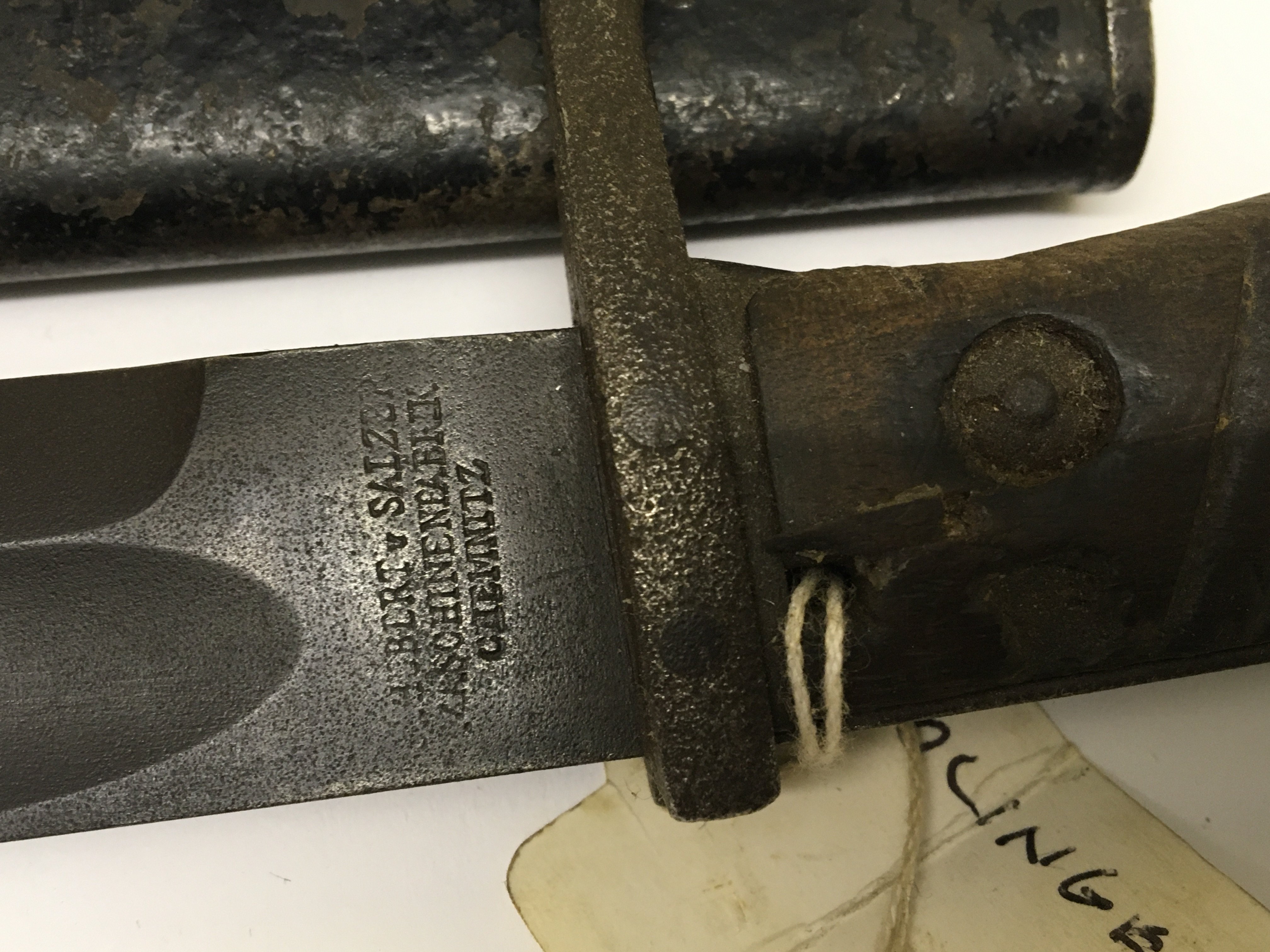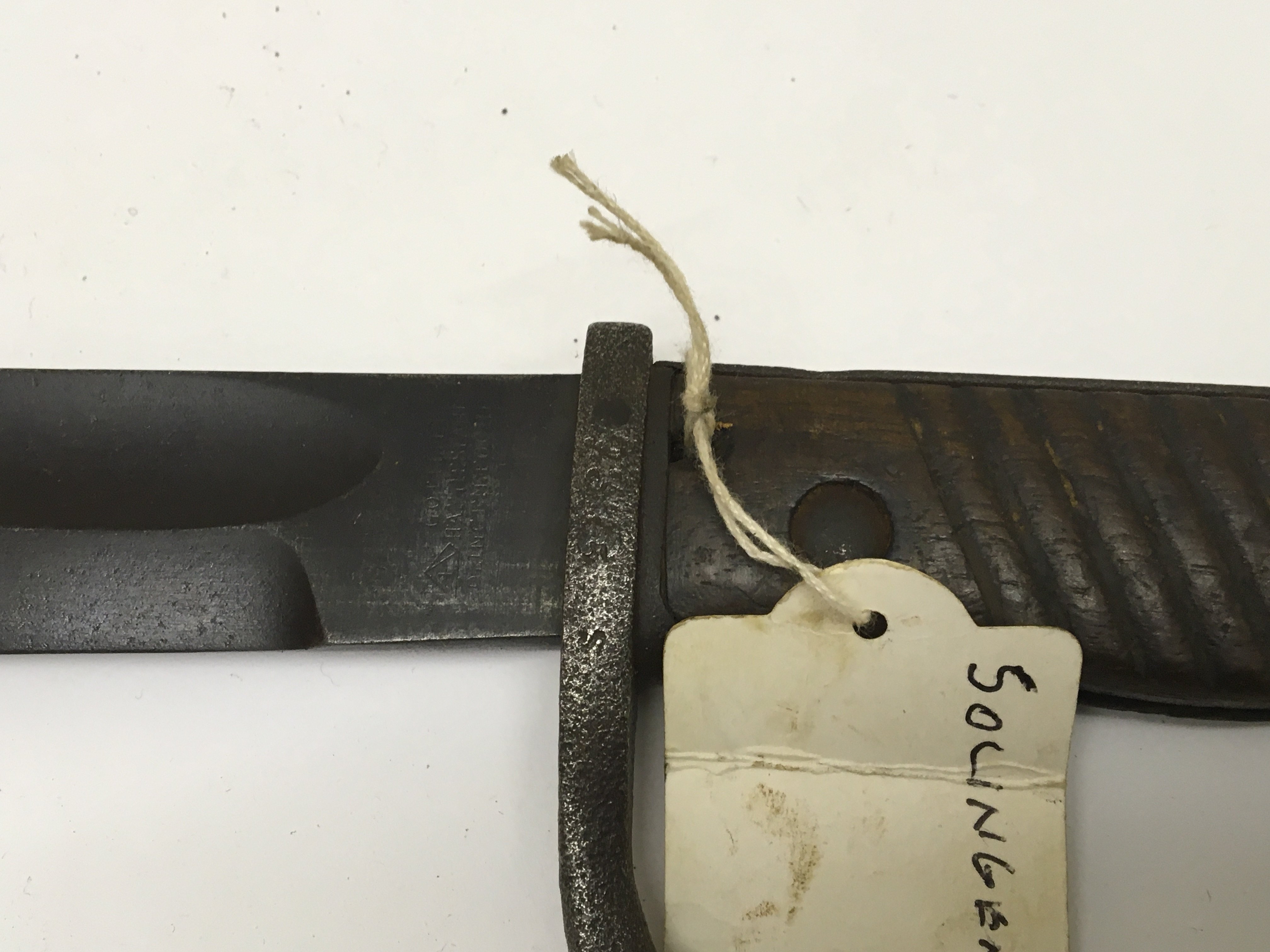 A German I world war bayonet with wood grip an N Model 1898/05 model the blade with Solingen makers marks.