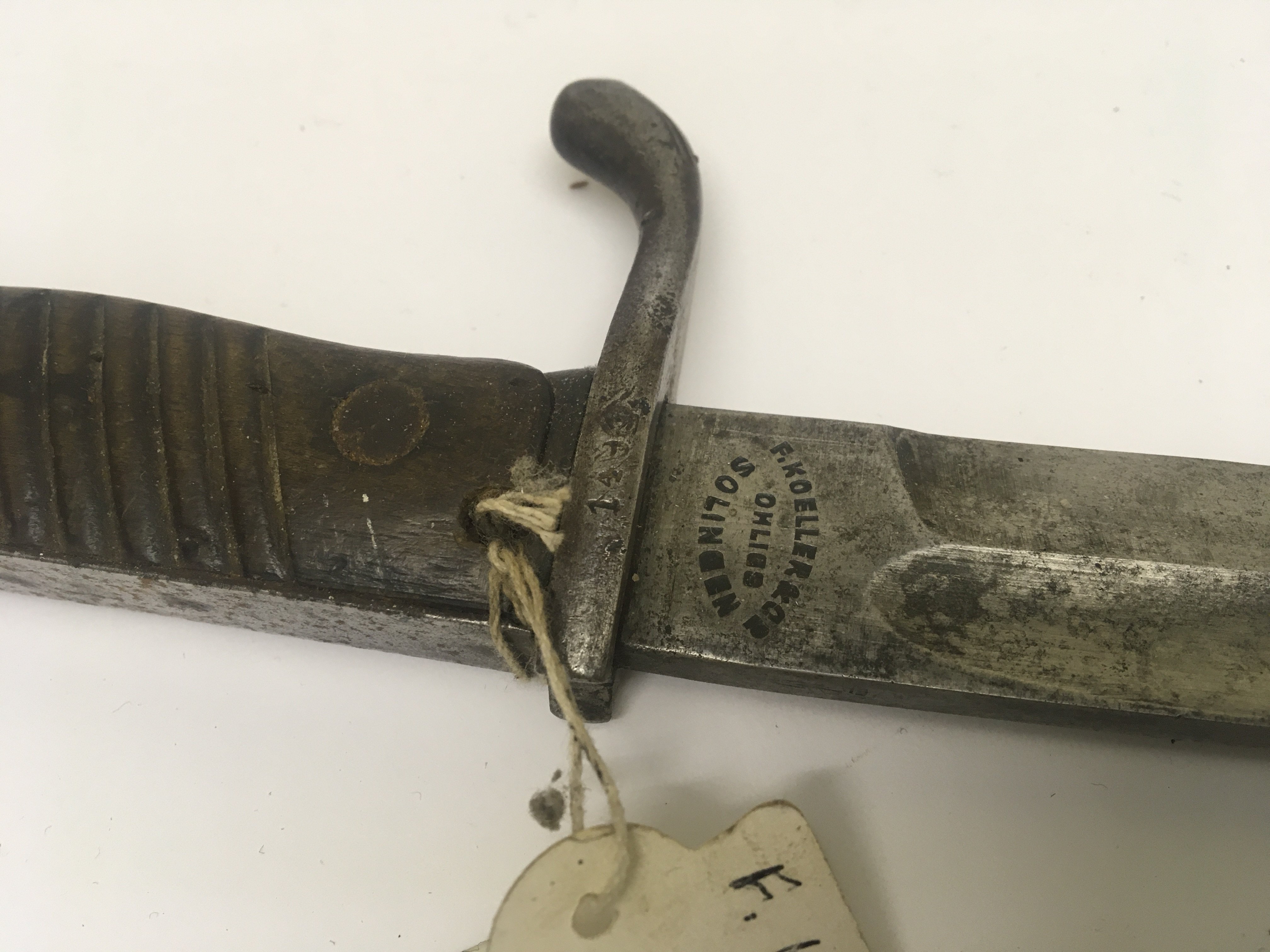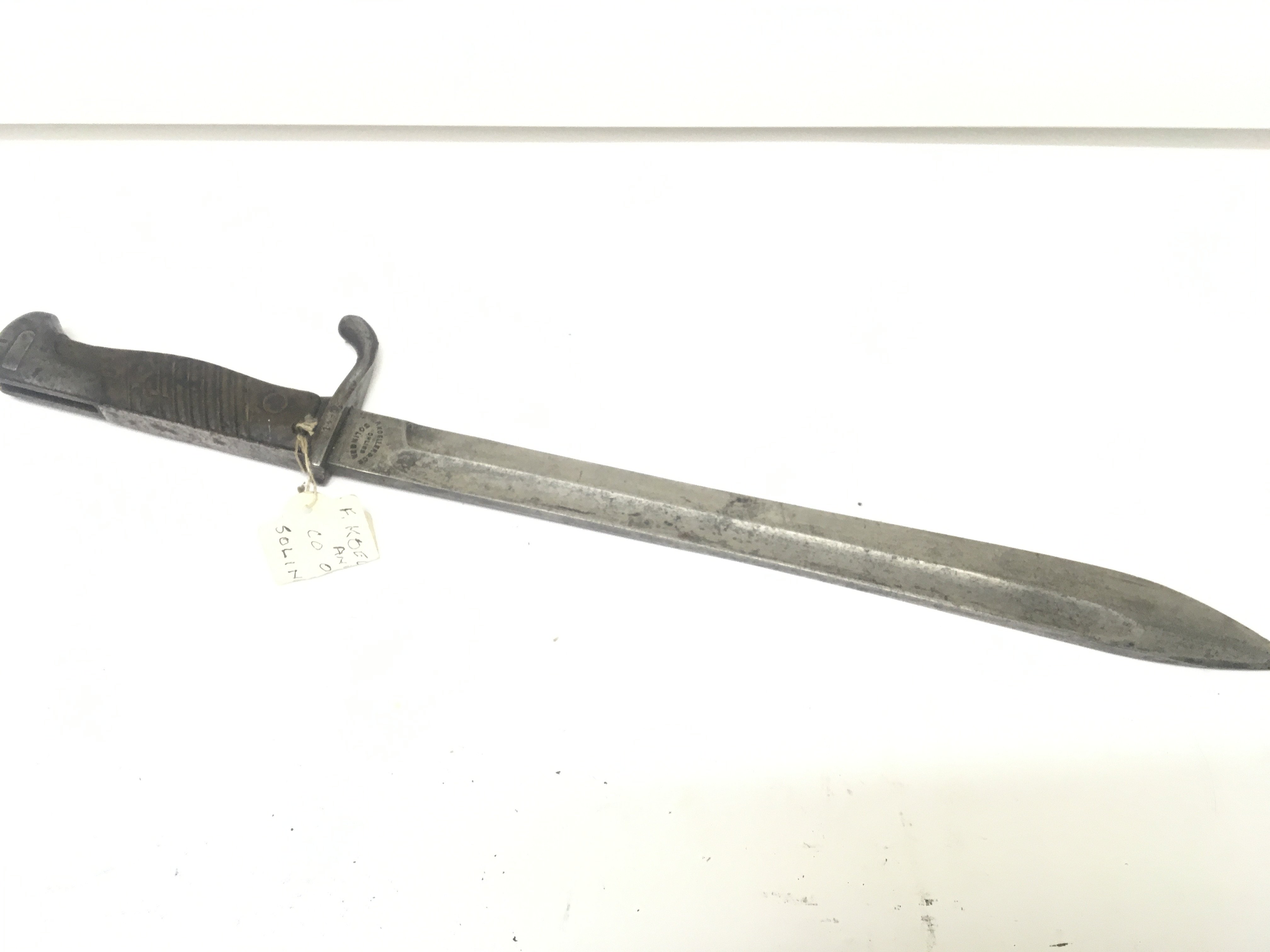 A German imperial I world war bayonet the Stitengewehr 98 with butchers blade with makers stamp. Length 49cm