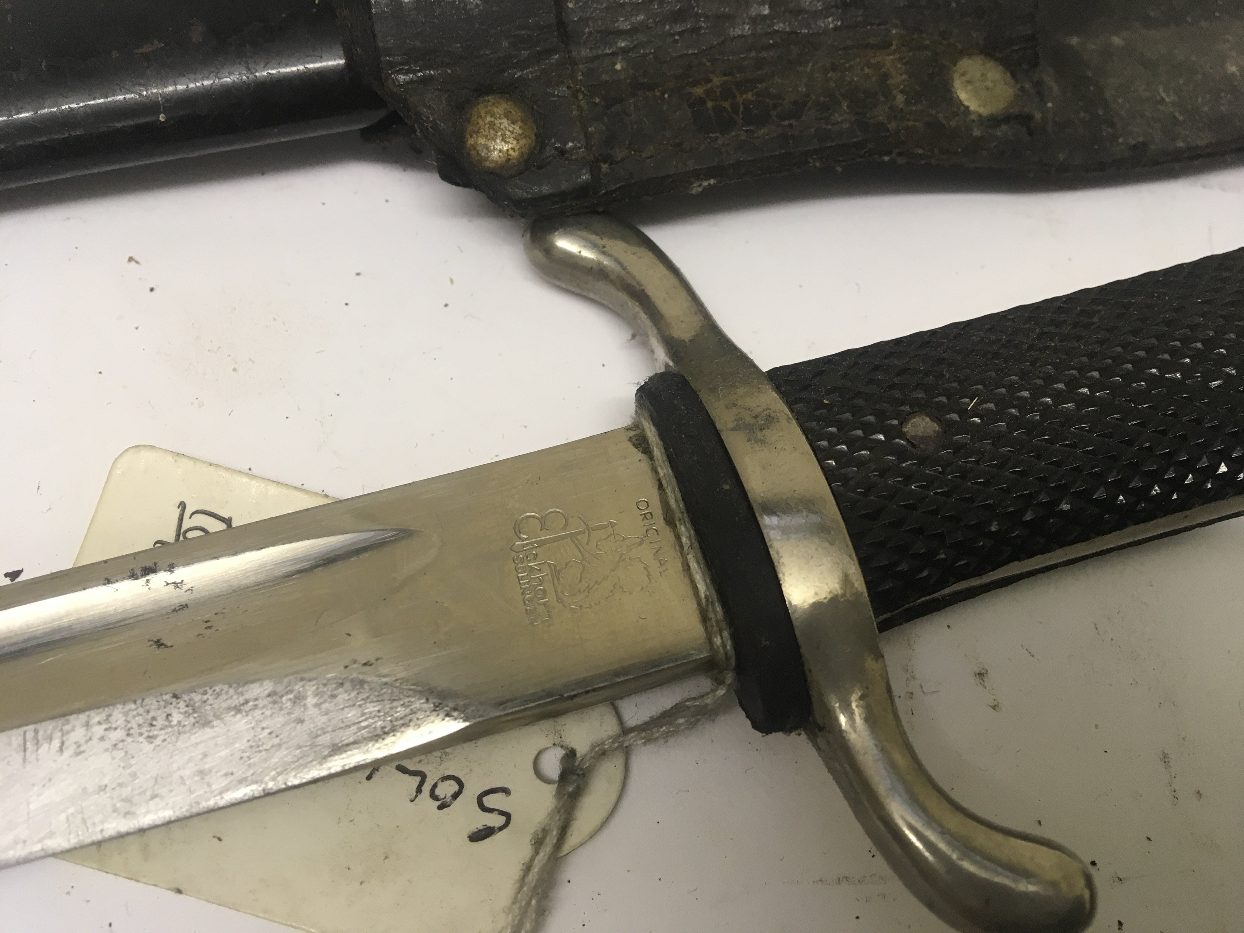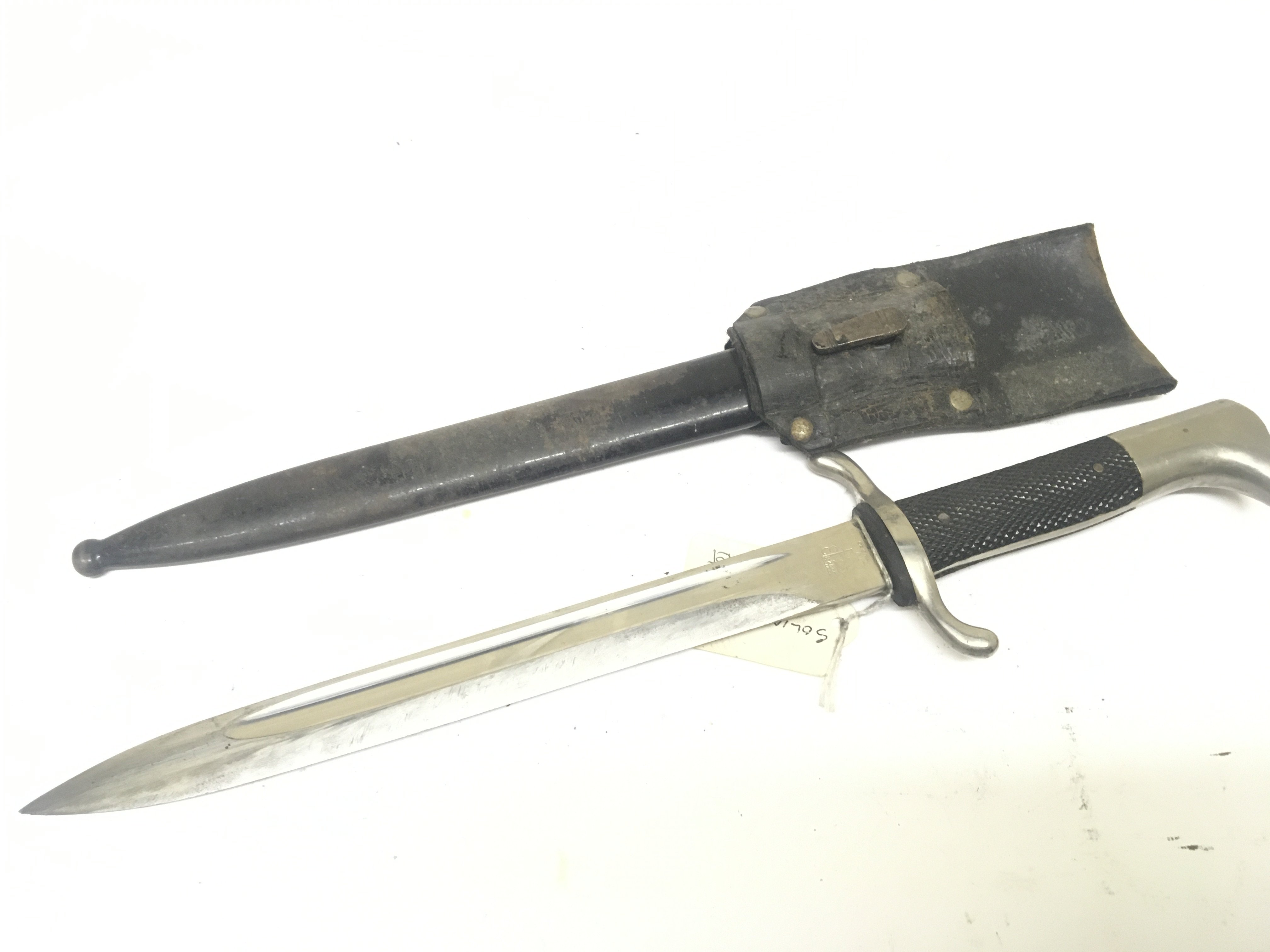 A K98 German Third Reich Police dress bayonet maker Erickhorn Solingen with leather scabbard.