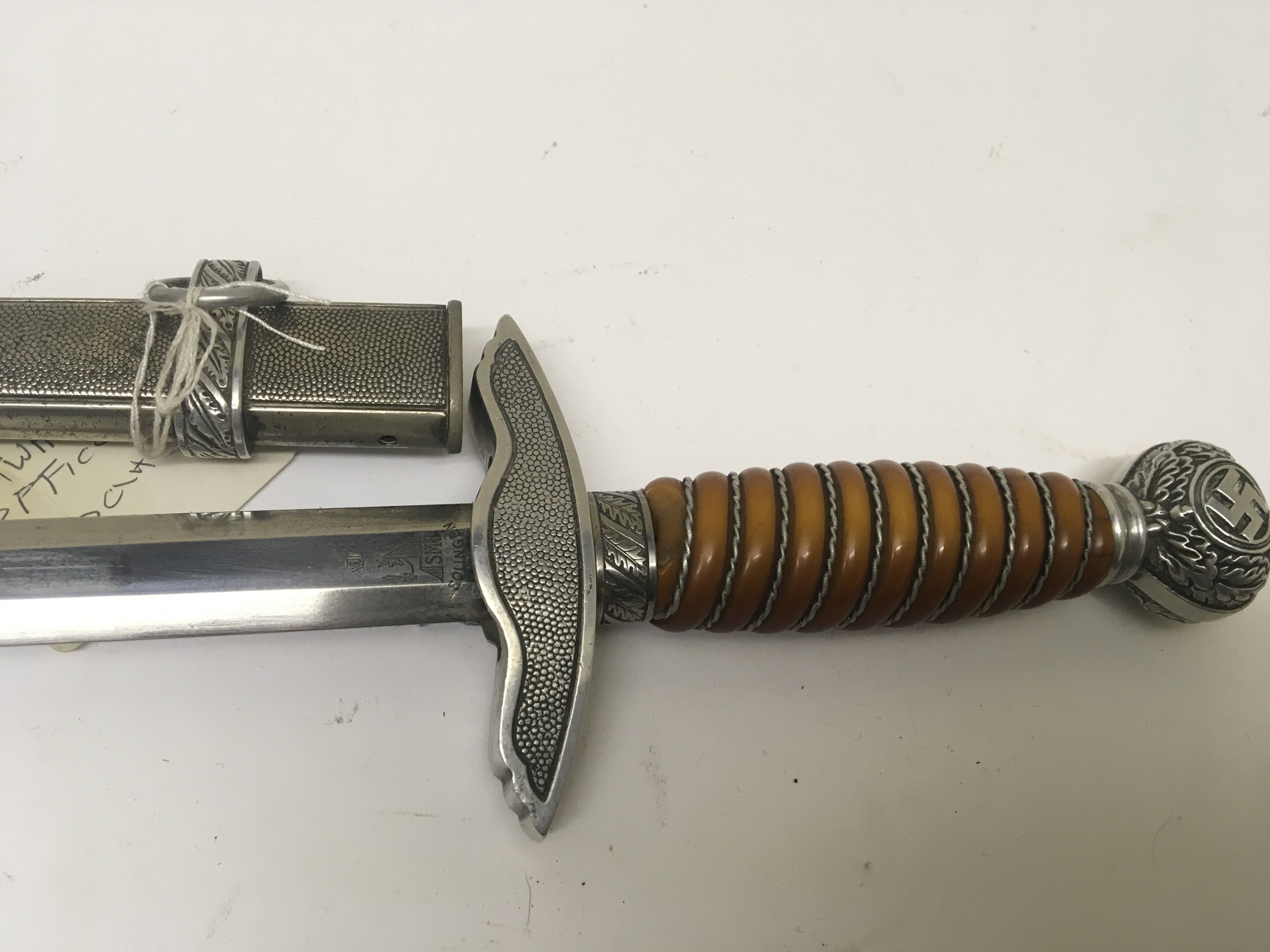 A German Third Reich Luftwaffe Officers Dress dagger with makers stamp SMF Solingen.