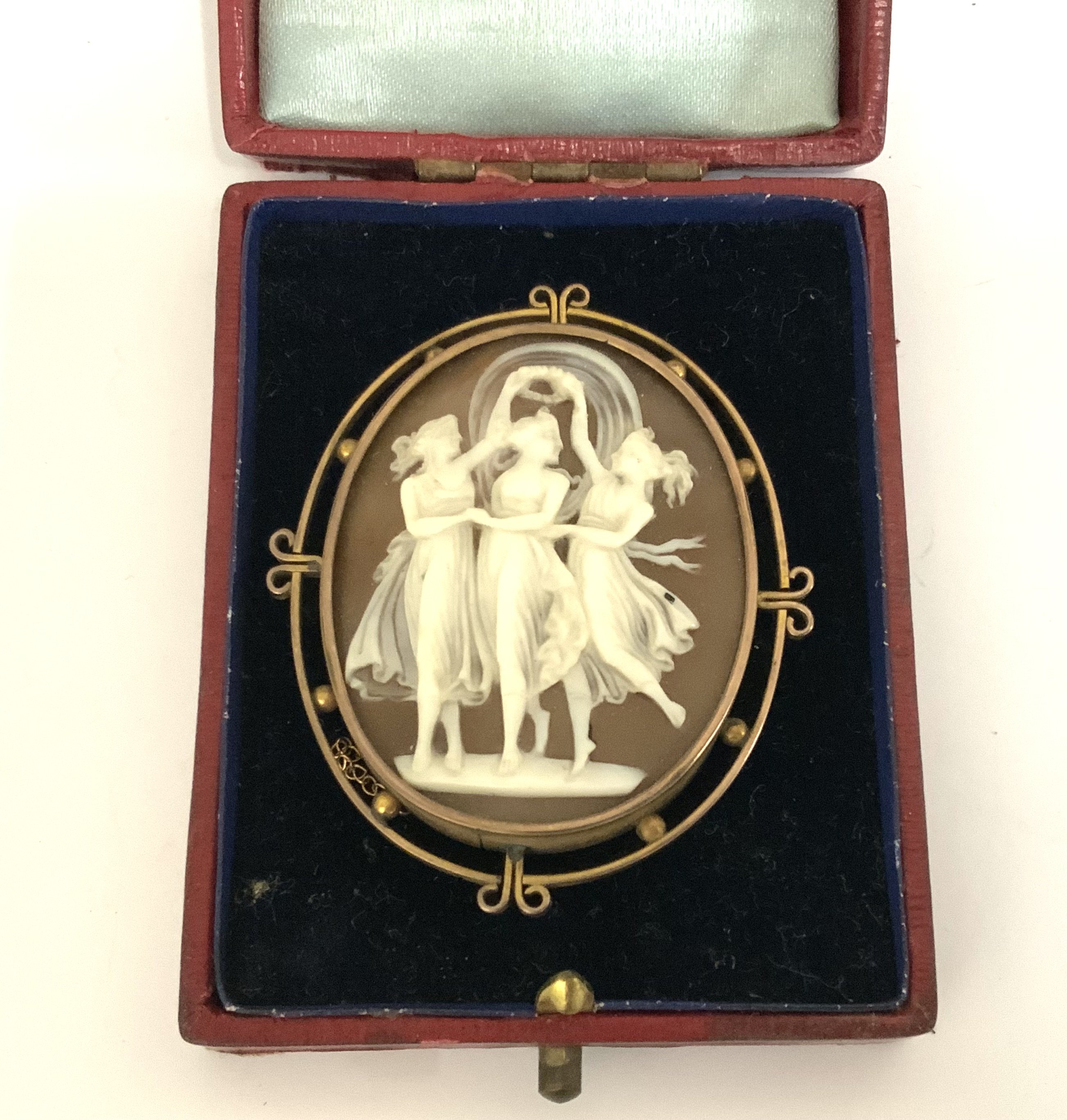 A yellow metal mounted Edwardian cameo brooch. (A)