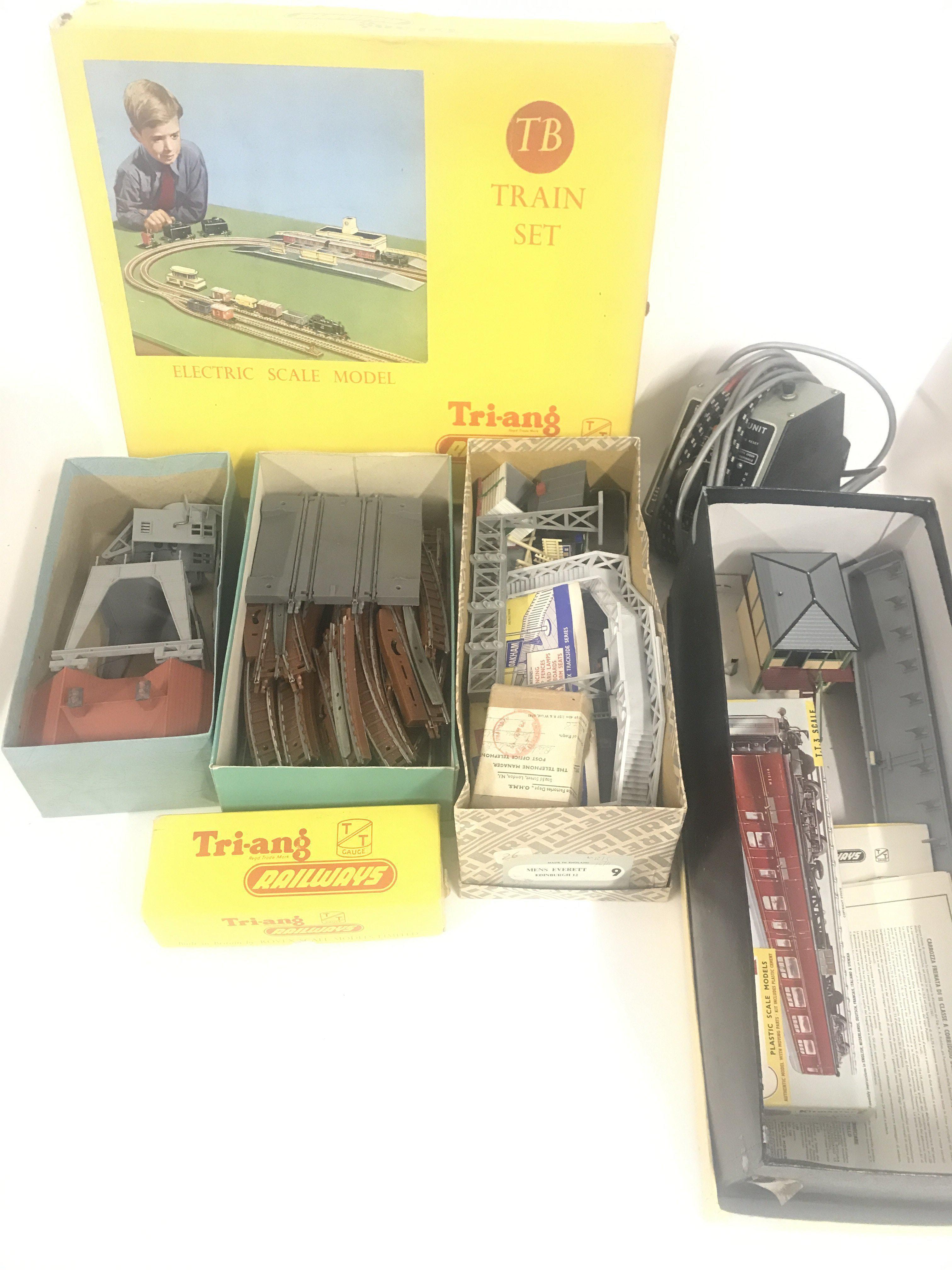 A Collection of Tri-Ang TT Scale Accessories Including a Boxed Castle Class Loco. And A TB Train Set.