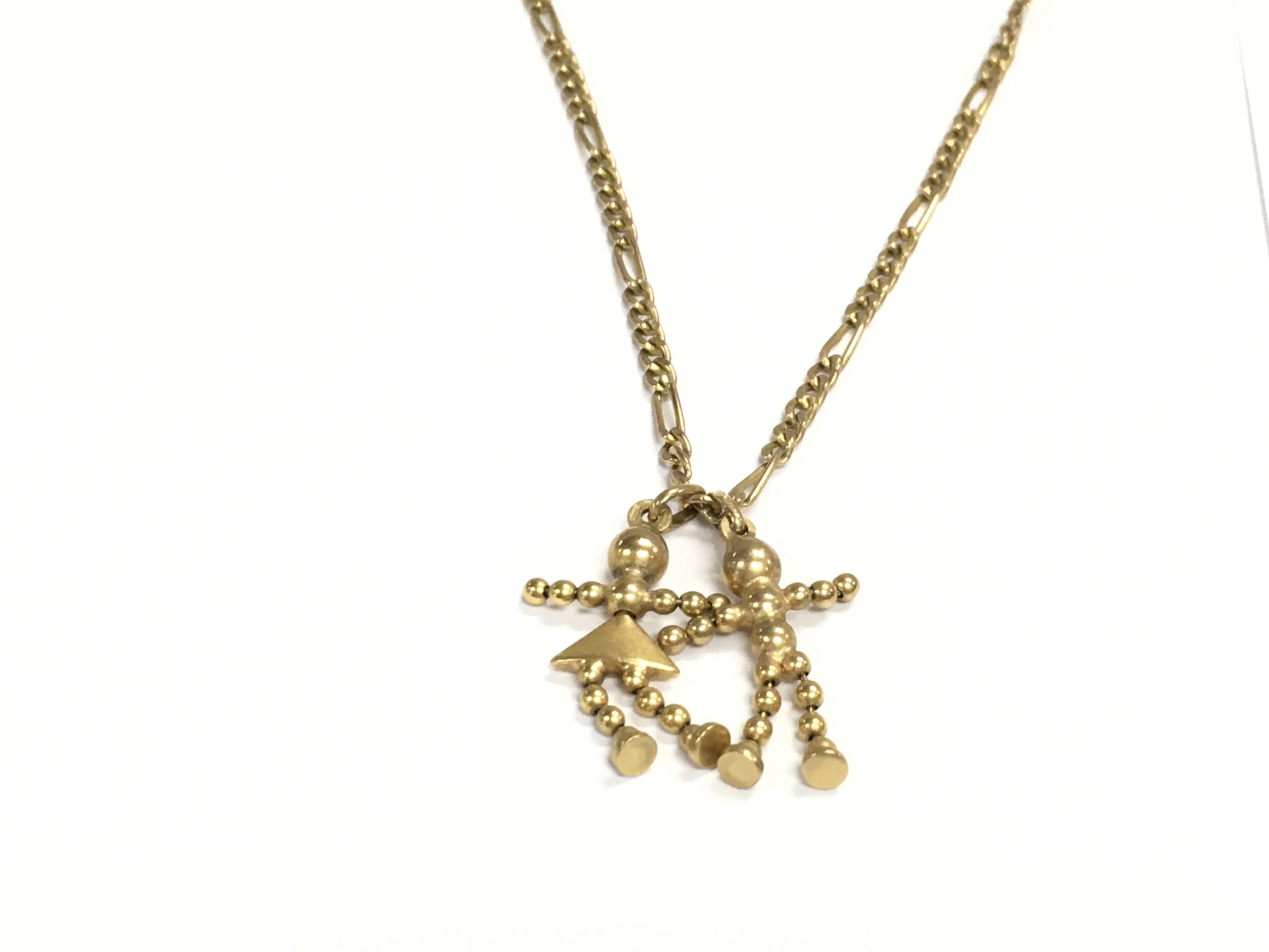 A 9ct gold chain with 9ct gold figures attached. 7.87g total. Postage A
